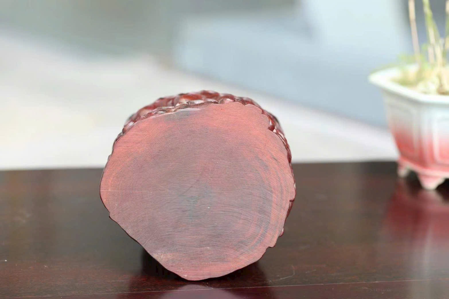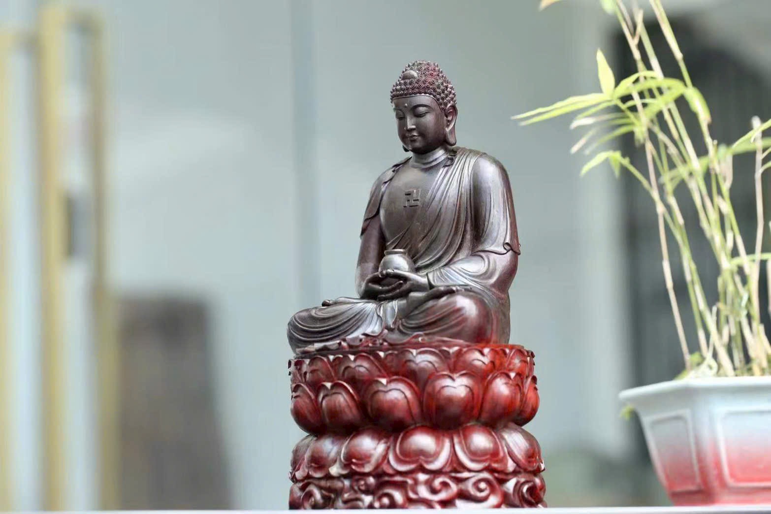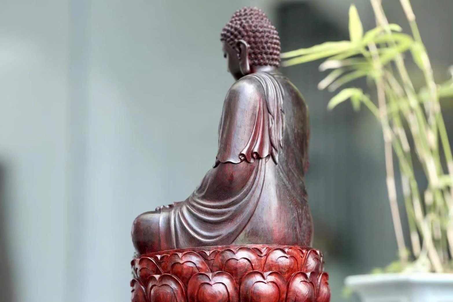 Chế tác từ gỗ lão liệu dầu cao, thớ gỗ dày mịn, nguyên khối. Đục đường dao sạch, tinh gọn, thần thái tôn nghiêm trang nhã, khí chất trầm ổn, thích hợp tôn trí và sưu tầm.