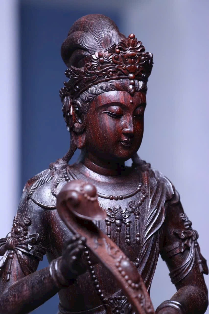 Tượng Phổ Hiền Bồ Tát thủ công, chế tác từ gỗ tiểu diệp tử đàn Ấn Độ.