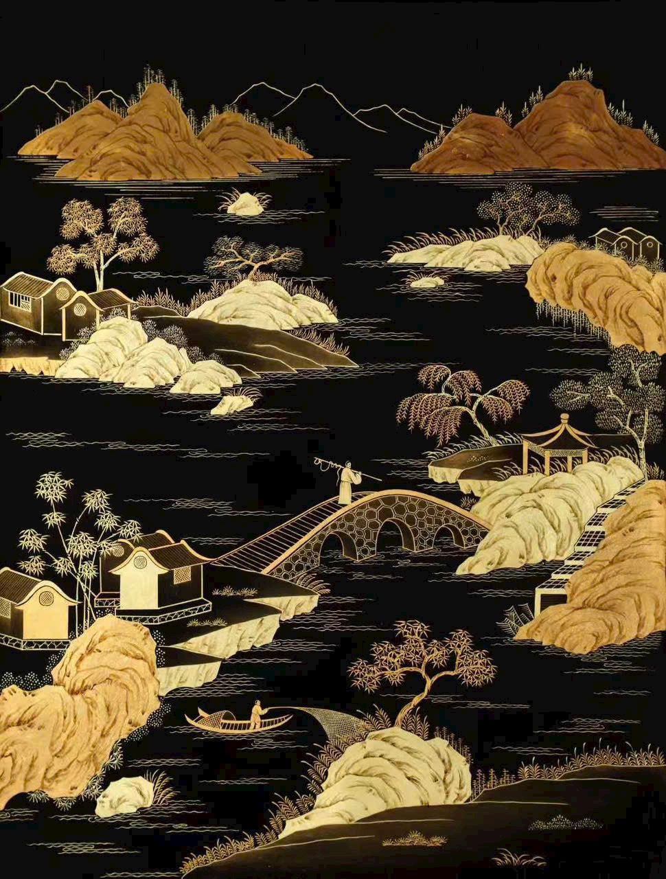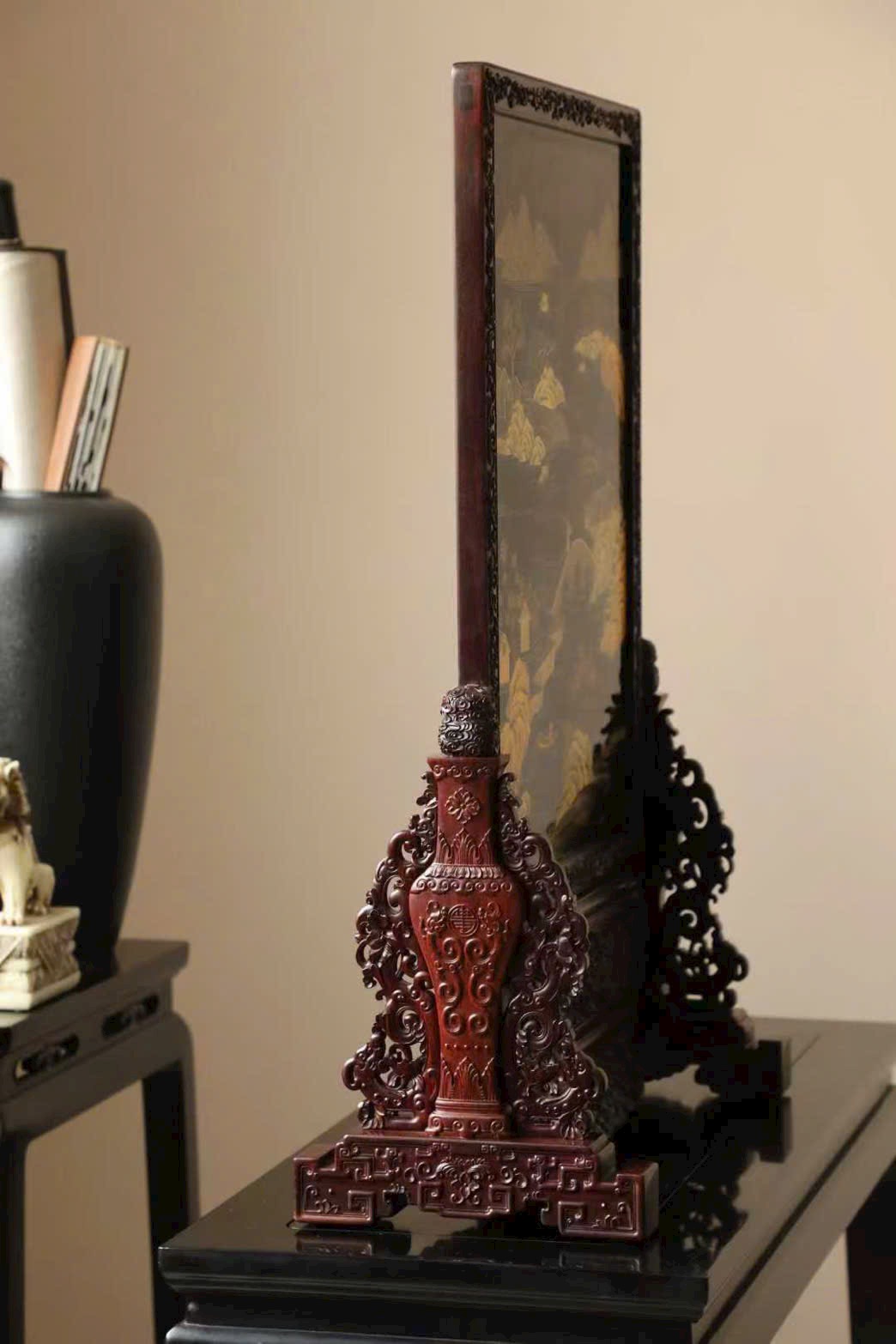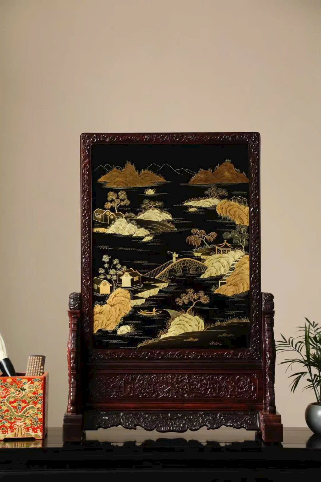Phú Quý Cát Tường | Bình phong khảm ốc vẽ vàng | Tử đàn tiểu diệp