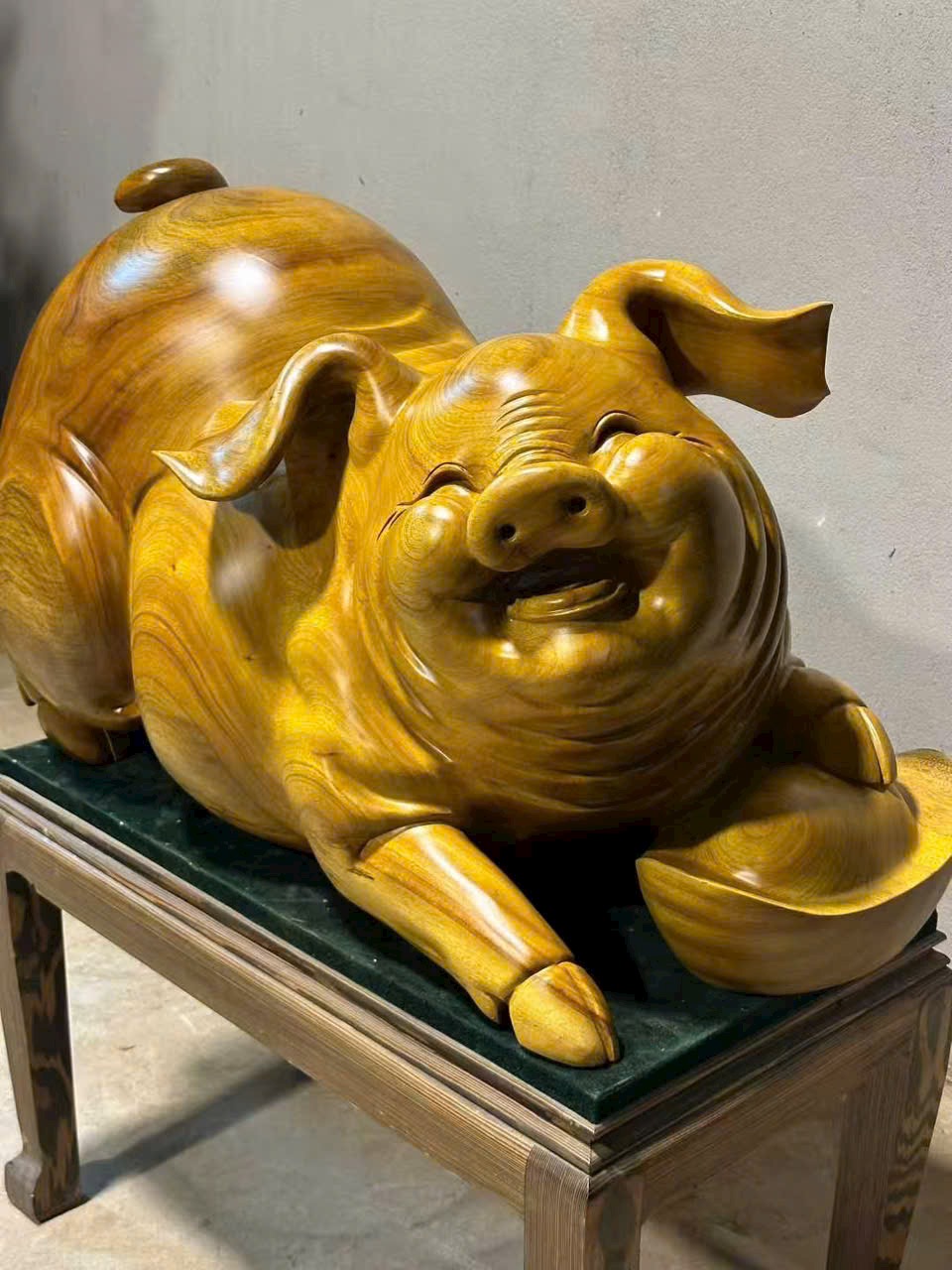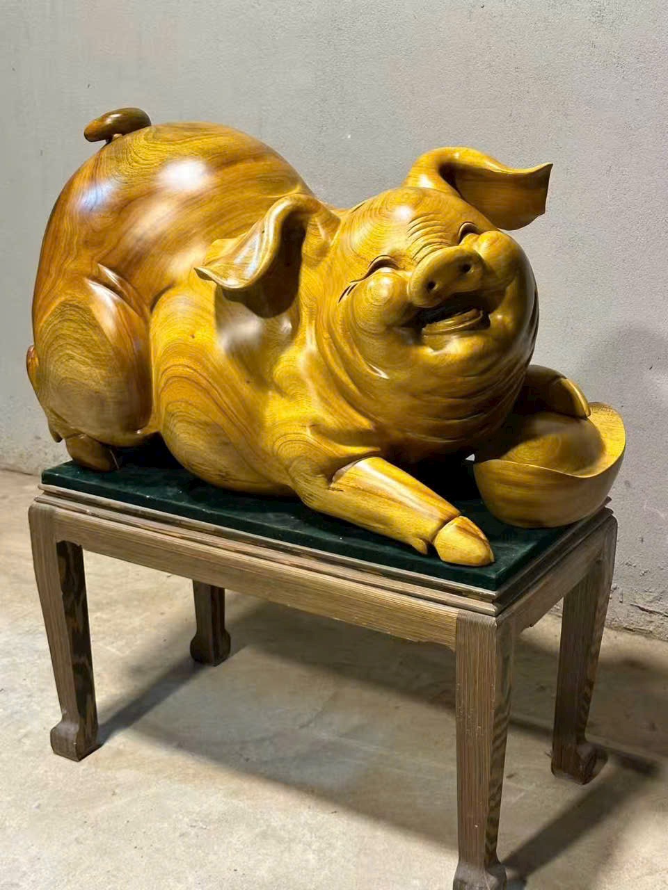 Hình tượng kim trư ôm thỏi nguyên bảo,