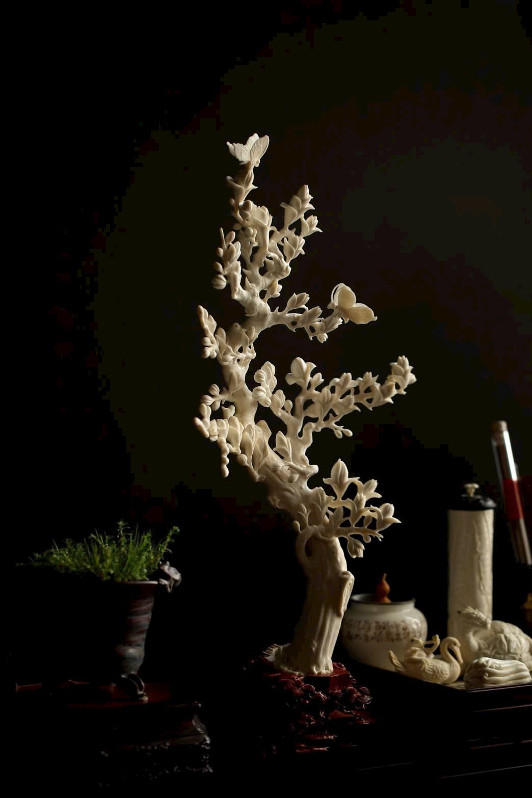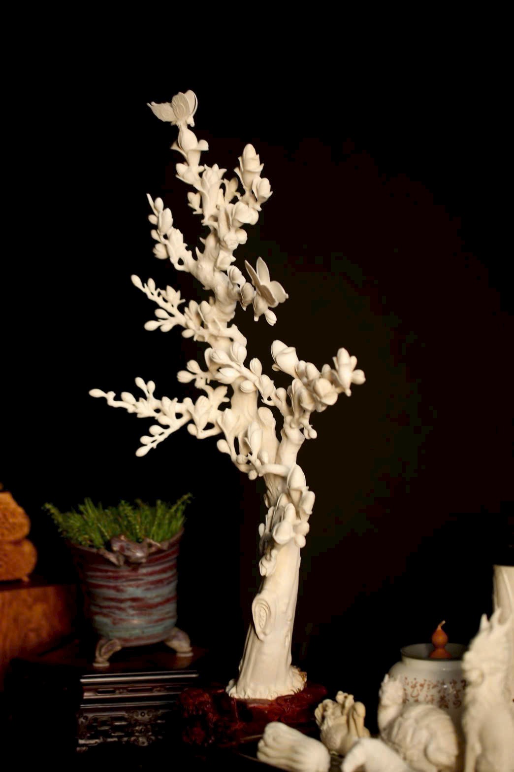 Đường dao thuần thục, kết hợp chạm nhiều lớp, chạm rỗng – thấu, cổ hoa thanh mảnh uốn lượn, thể hiện tay nghề tinh xảo.