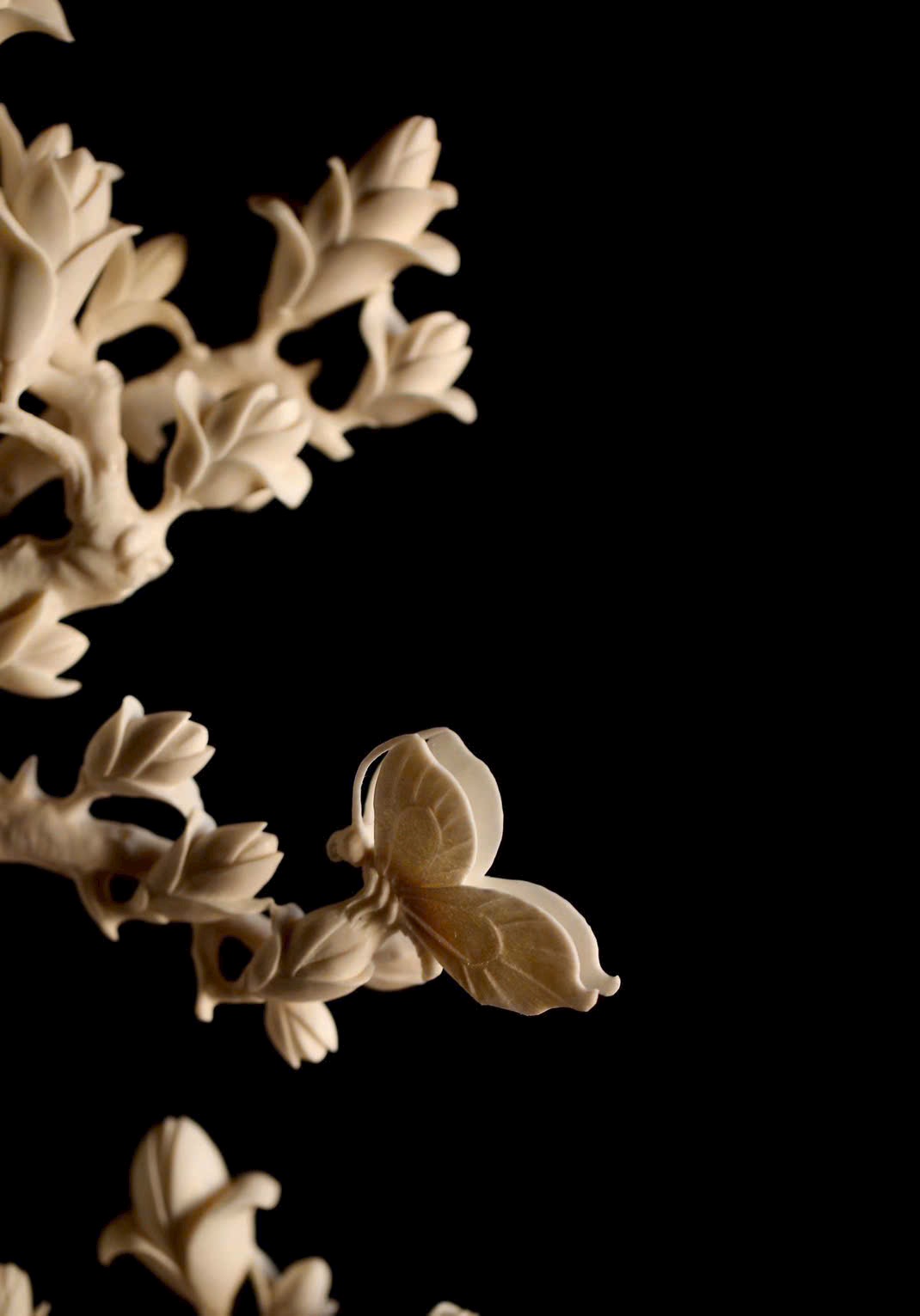 Chạm khắc thủ công hoàn toàn, lấy đề tài hoa ngọc lan; tạo hình lập thể, phân tầng rõ ràng.