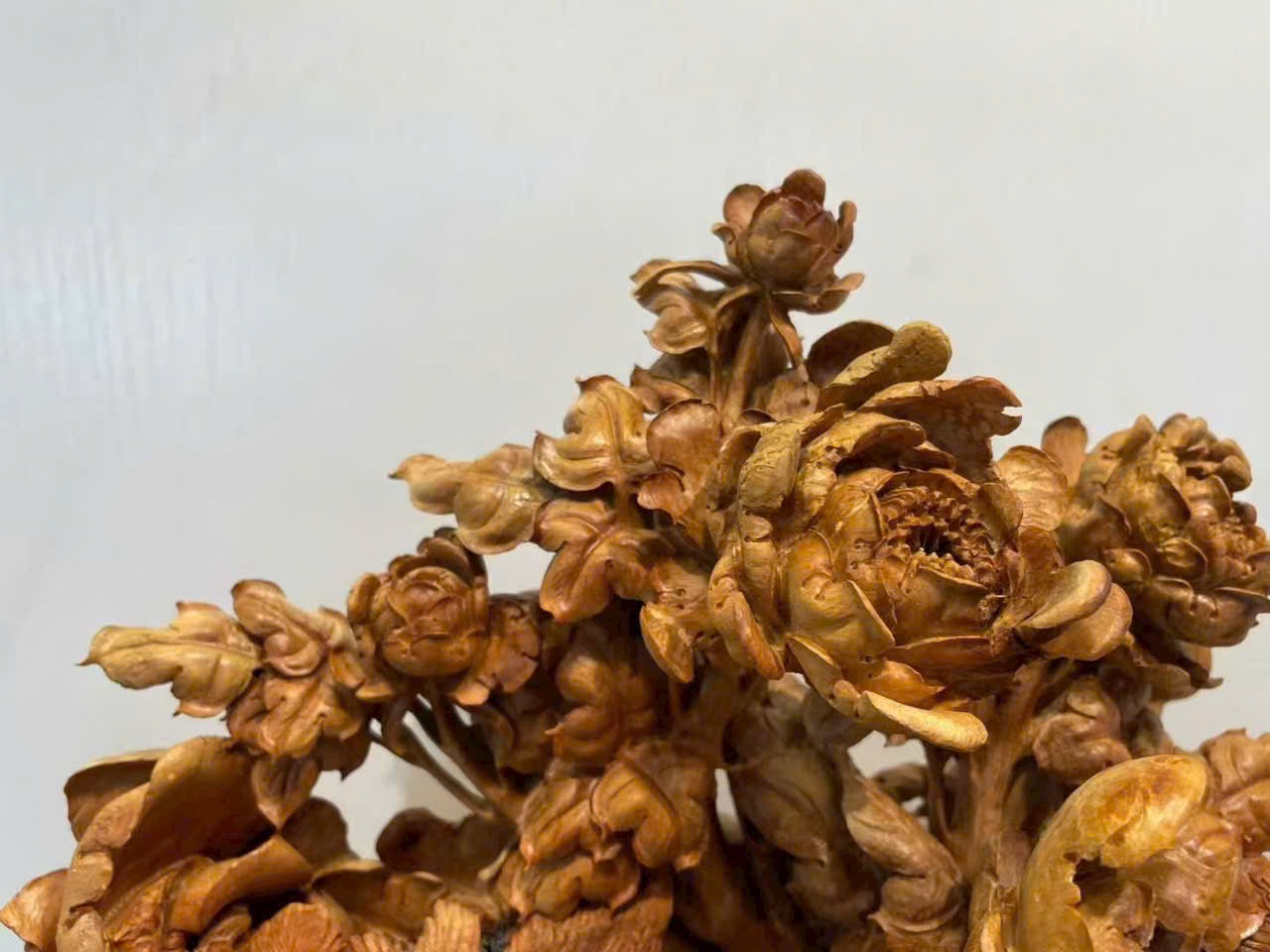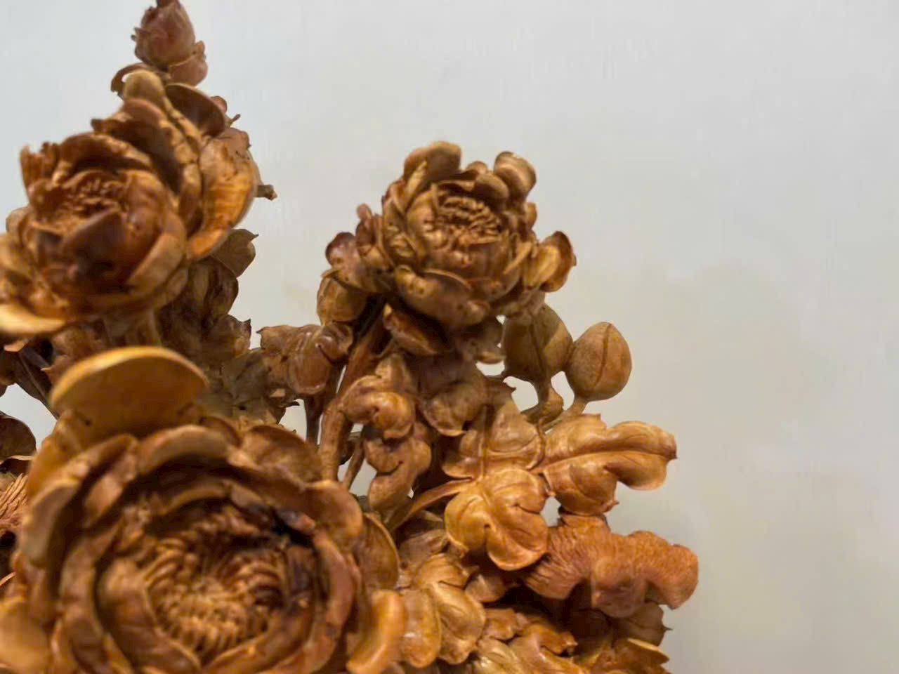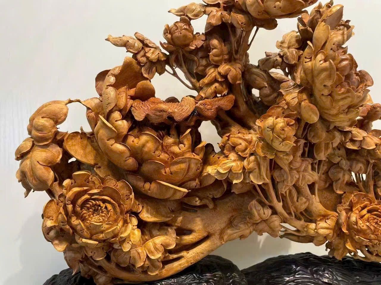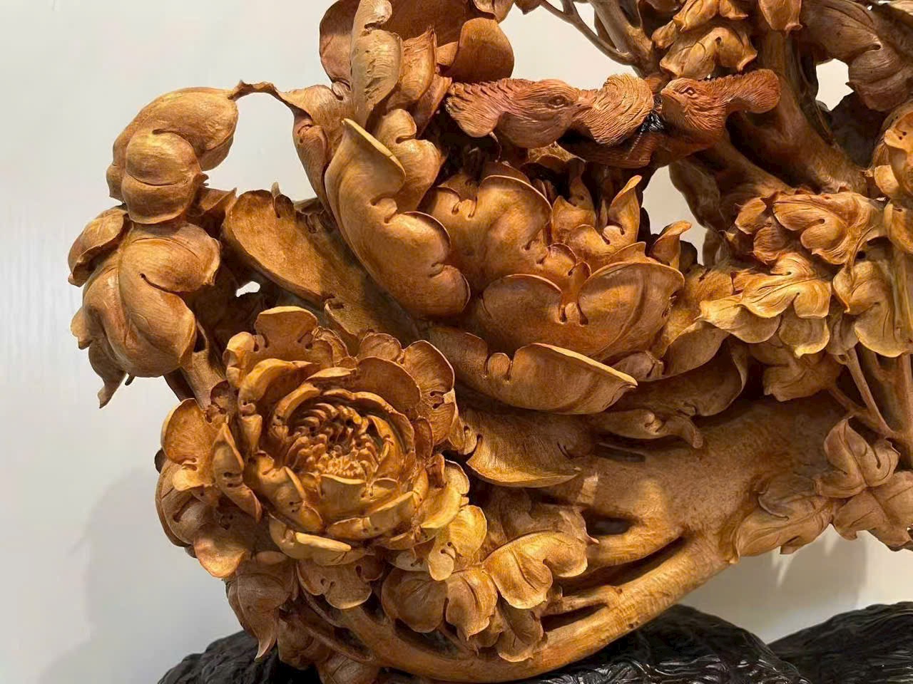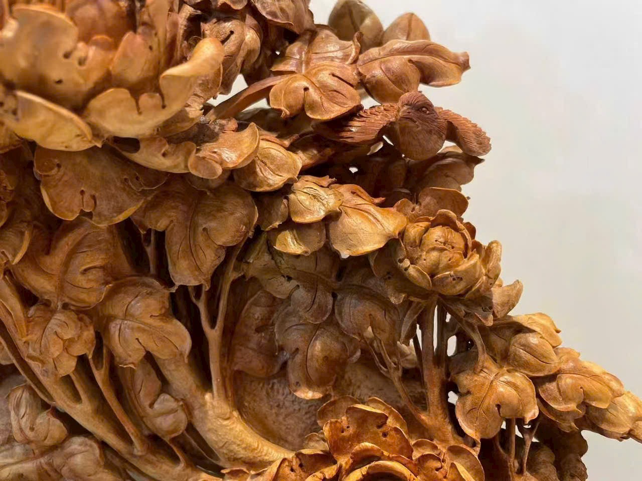 Tác phẩm chế tác từ gỗ đàn hương lão sơn quý hiếm, hương thơm trầm tĩnh, sắc gỗ ấm áp.