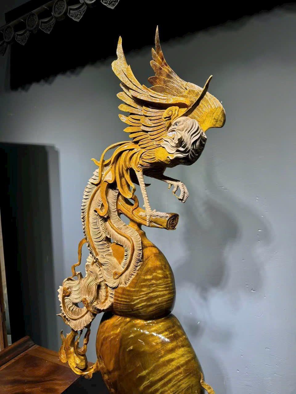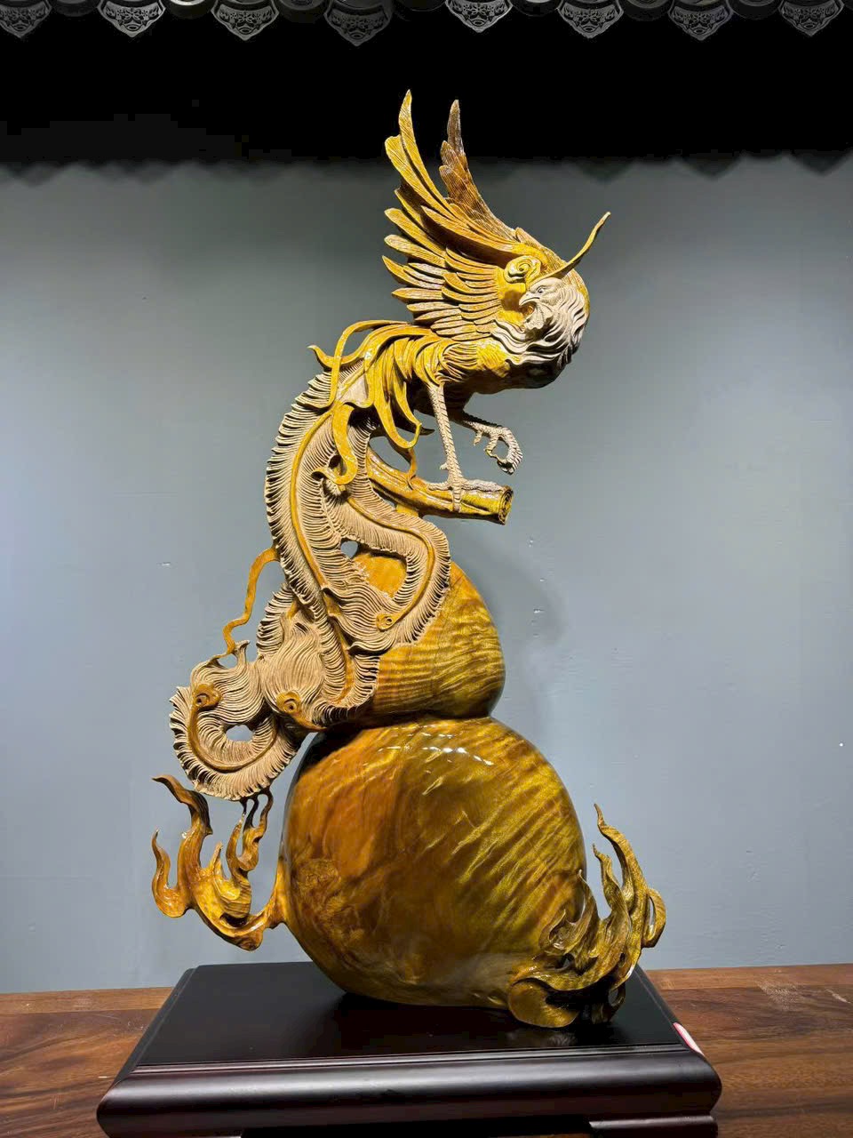 Phượng hoàng tung cánh vút lên chín tầng mây – biểu tượng cao quý, cát tường, thăng hoa & phú quý. Gỗ quý thơm nhẹ, chế tác tinh xảo – xứng tầm không gian đẳng cấp.