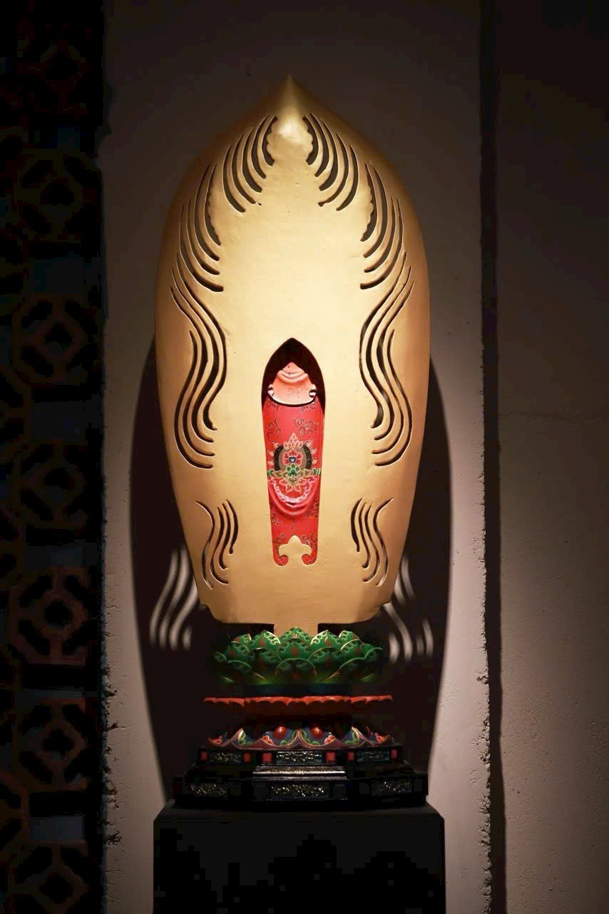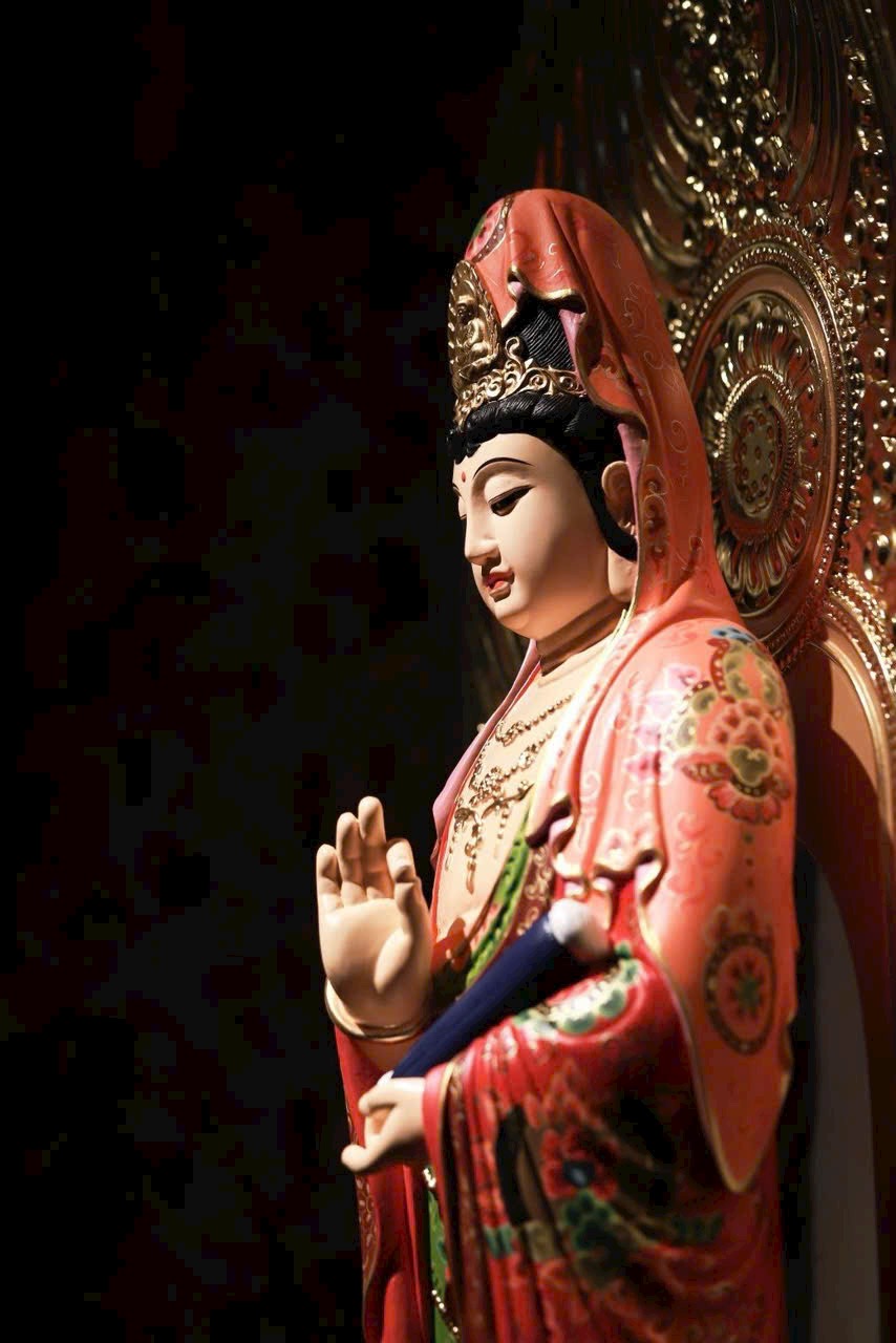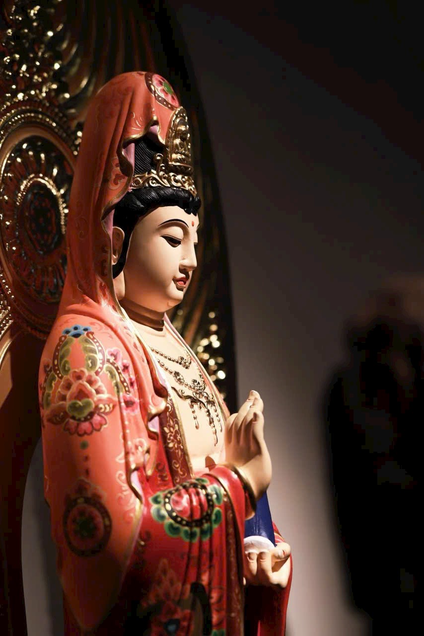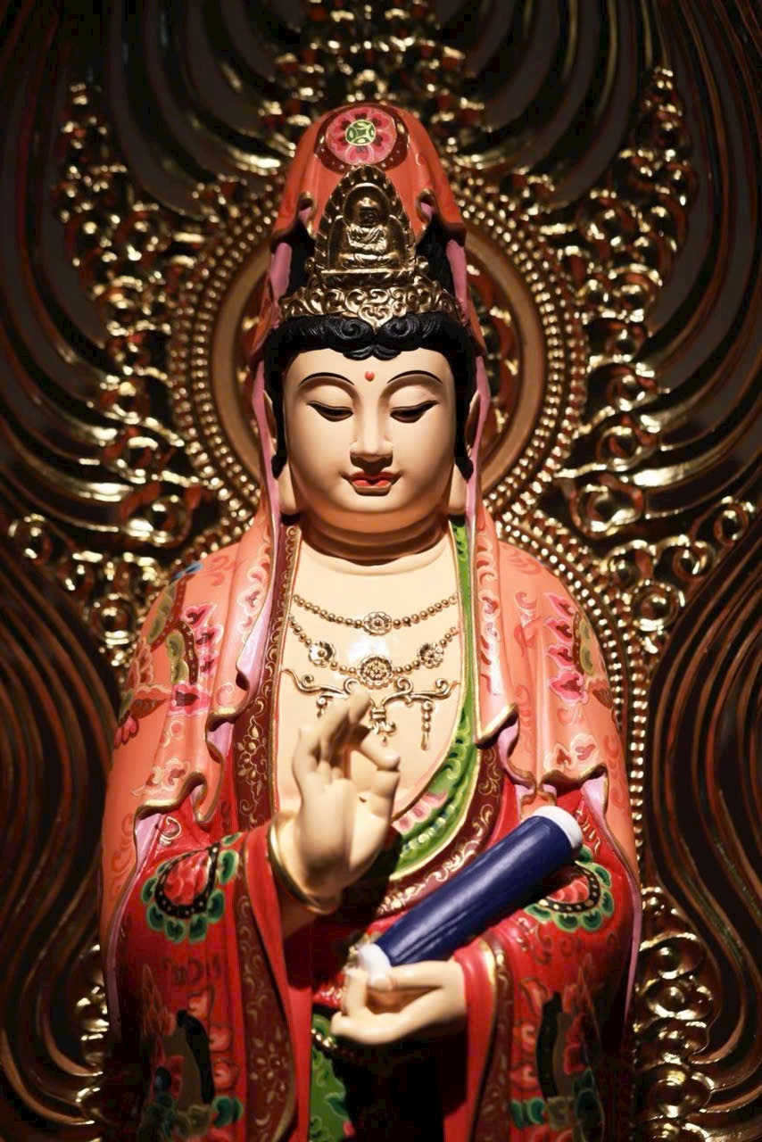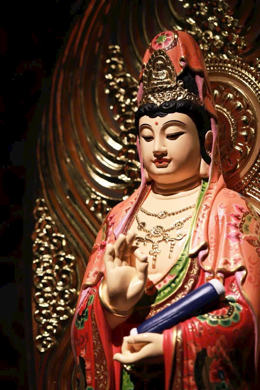 Thớ gỗ ẩn hiện ánh báu, pháp tướng từ bi mà trang nghiêm. Thiên y vẽ màu như mây trôi, đài sen nâng bước tỏa hương. Phụng thờ trong tịnh thất, như được tắm gội mưa pháp cam lồ, lặng ngắm mà sinh tự tại – Bồ-đề.