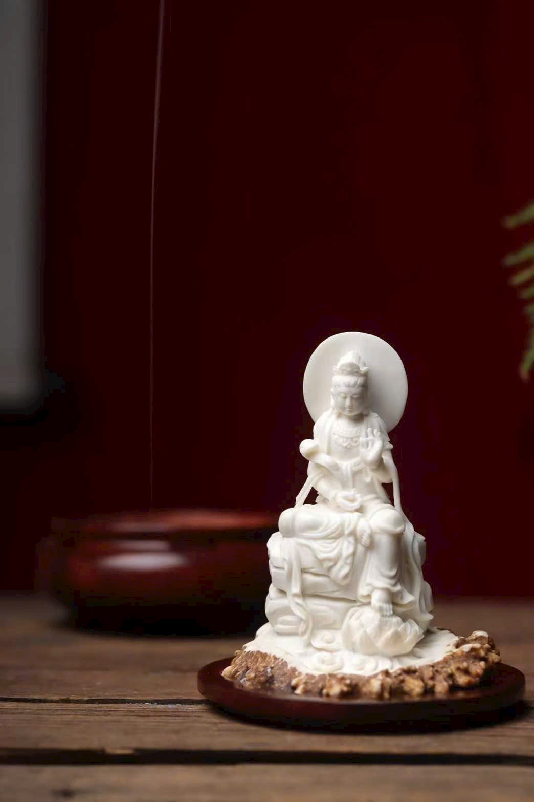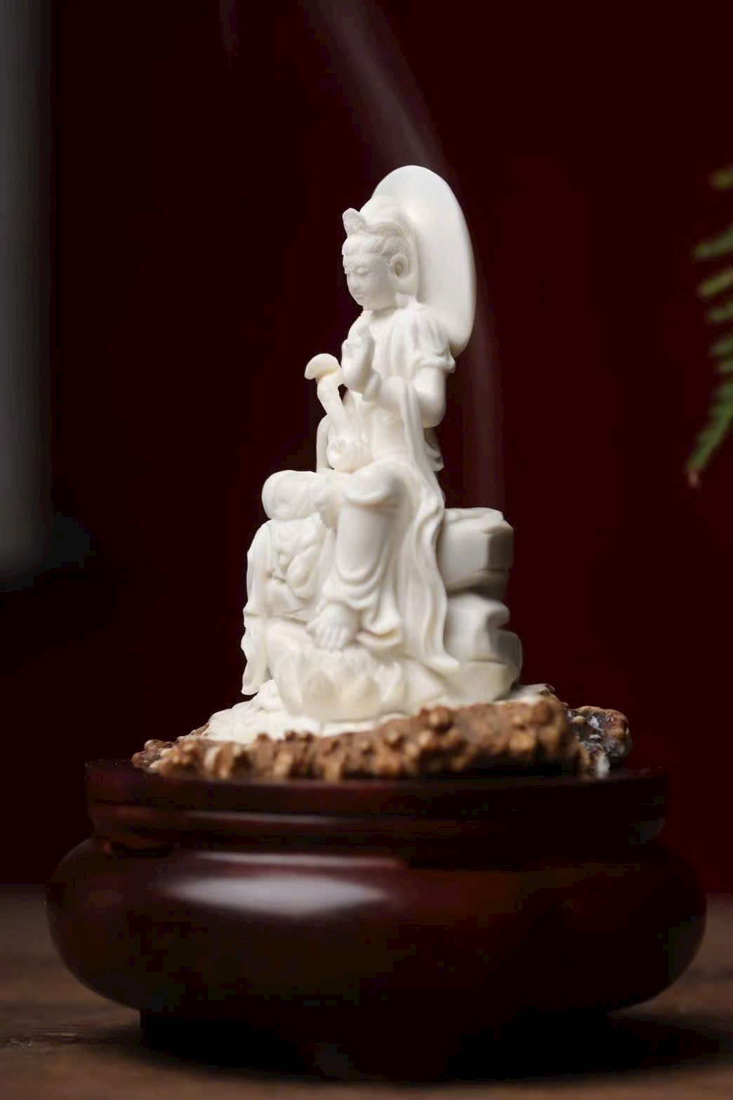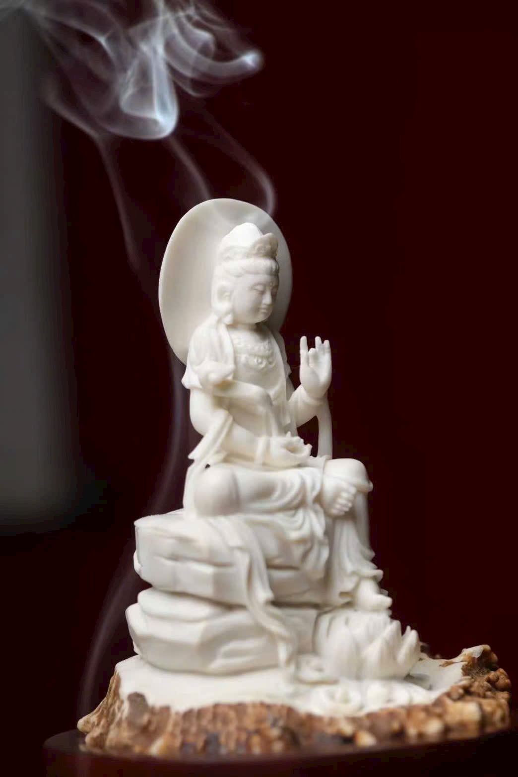 Tác phẩm chế tác hoàn toàn thủ công từ sừng hươu, đường nét tinh tế, thần thái trang nghiêm mà từ hòa. Hình tượng Quan Âm tĩnh tọa giữa làn khói trầm, lan tỏa hương thanh khiết, mang đến cảm giác an nhiên, tịnh tâm và phúc lành viên mãn. Là phẩm hương trưng bày vừa nghệ thuật vừa mang ý nghĩa cát tường.