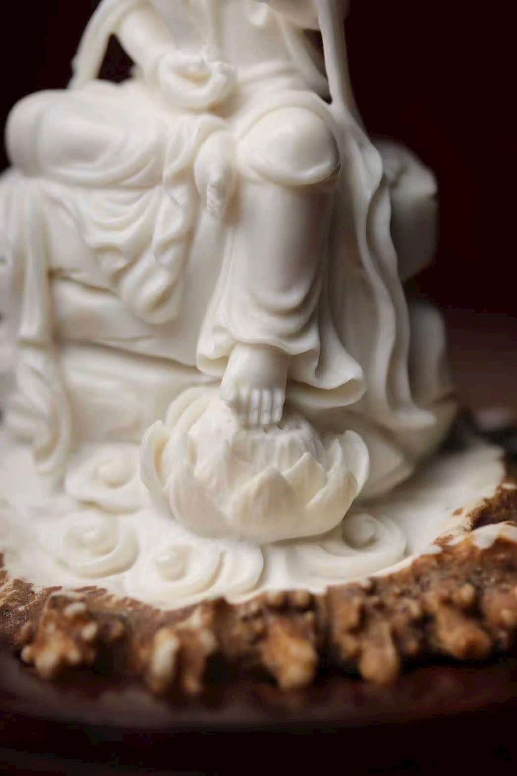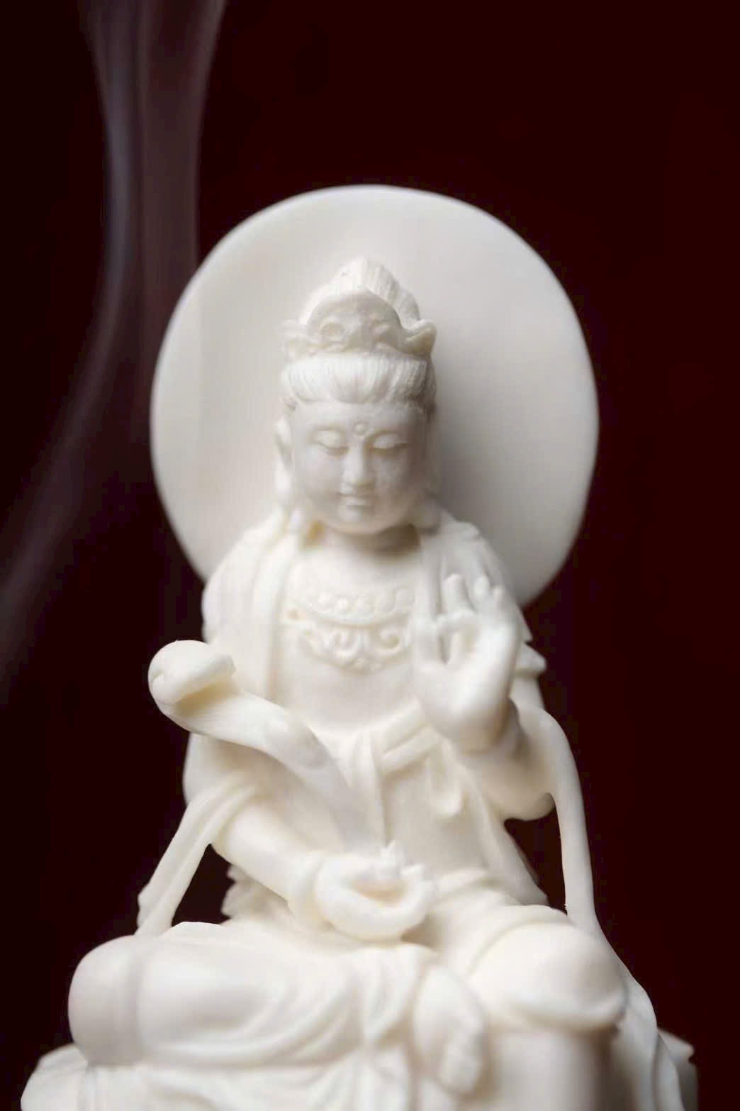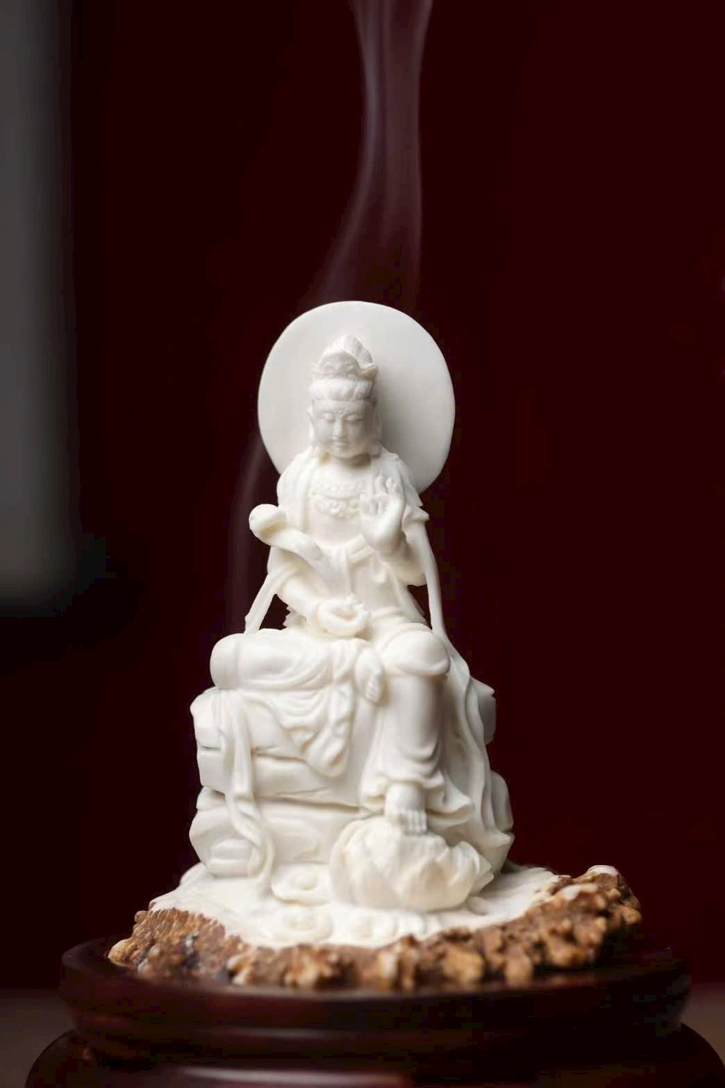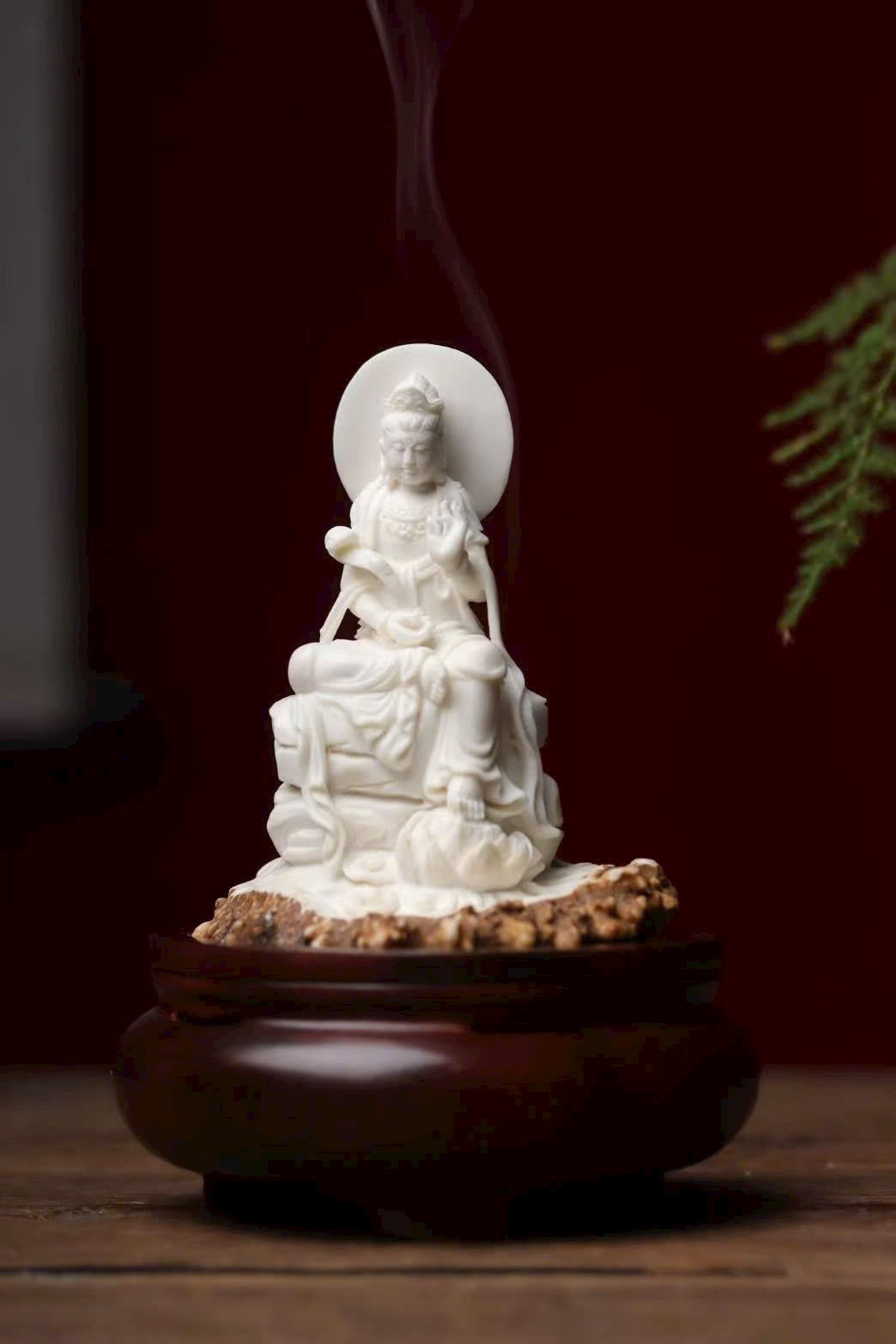 Tác phẩm chế tác hoàn toàn thủ công từ sừng hươu, đường nét tinh tế, thần thái trang nghiêm mà từ hòa. Hình tượng Quan Âm tĩnh tọa giữa làn khói trầm, lan tỏa hương thanh khiết, mang đến cảm giác an nhiên, tịnh tâm và phúc lành viên mãn. Là phẩm hương trưng bày vừa nghệ thuật vừa mang ý nghĩa cát tường.