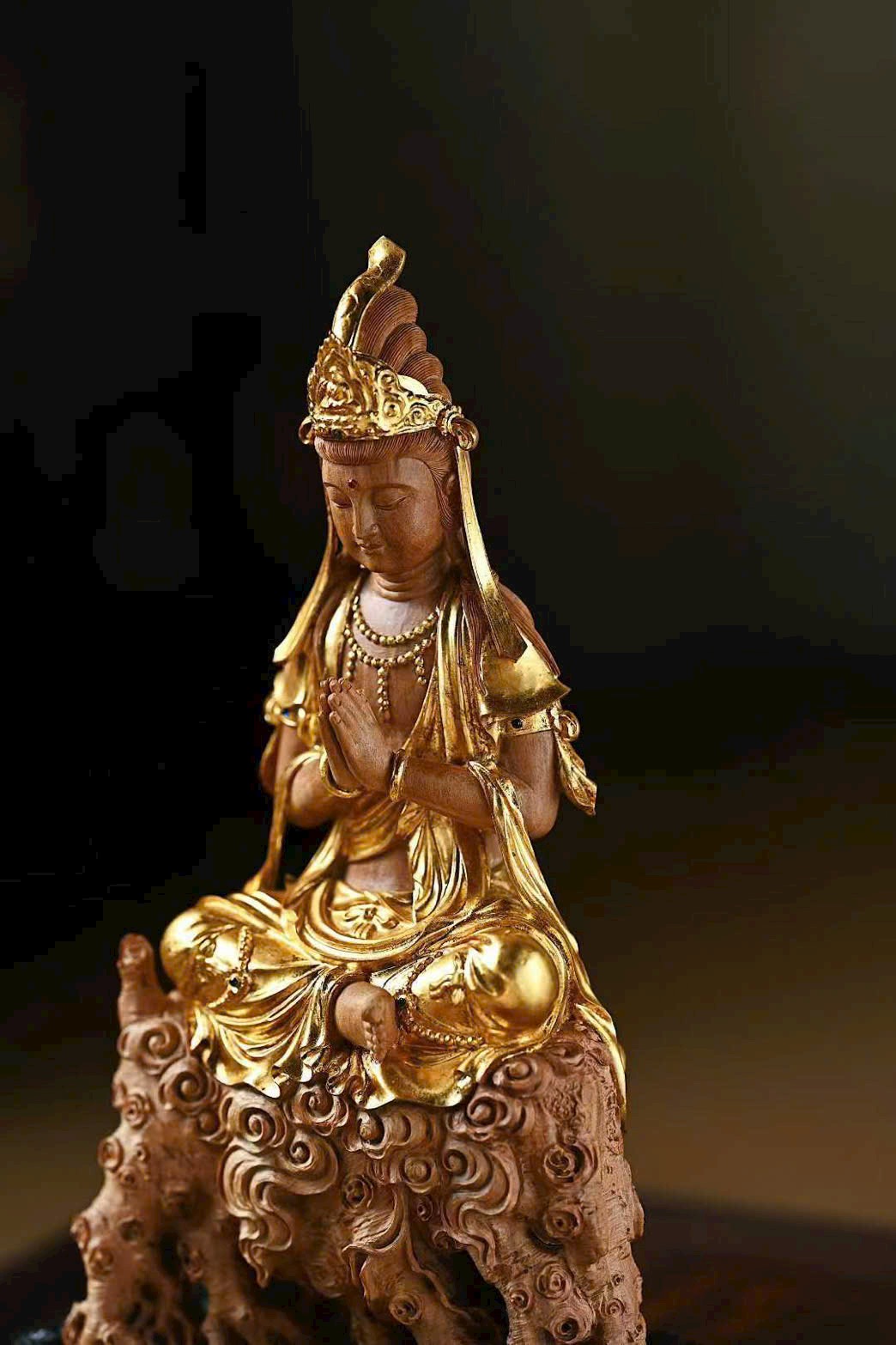 Đàn hương lão sơn x dát vàng “Quan Âm Bồ Tát”