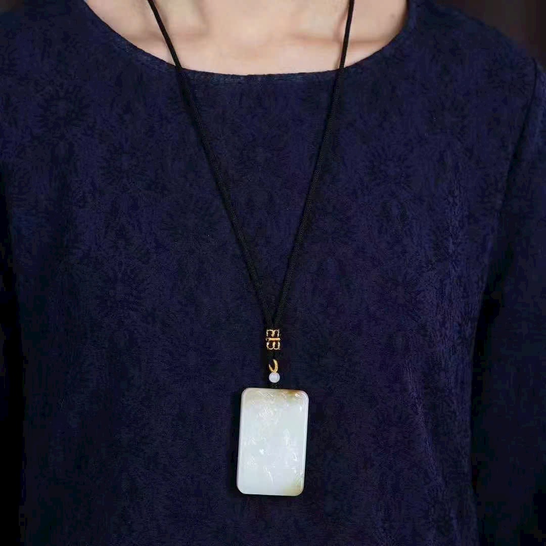 Mặt dây Quan Âm được chế tác từ ngọc mỡ cừu Hòa Điền tự nhiên Tân Cương, sắc đường mật – mỡ cừu.