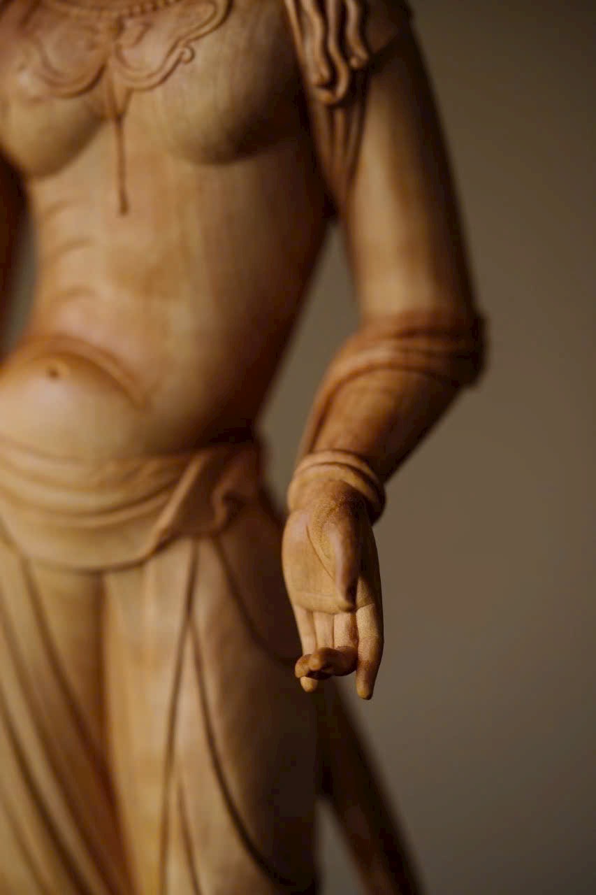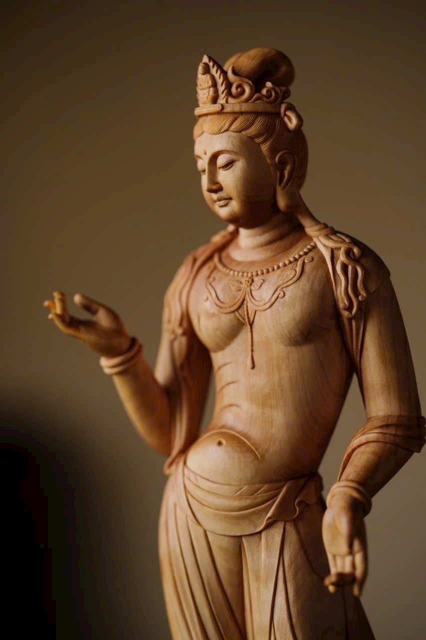 Mùi gỗ nhẹ nhàng hòa cùng thiền ý, chiêm ngưỡng là cảm nhận được lòng từ bi.