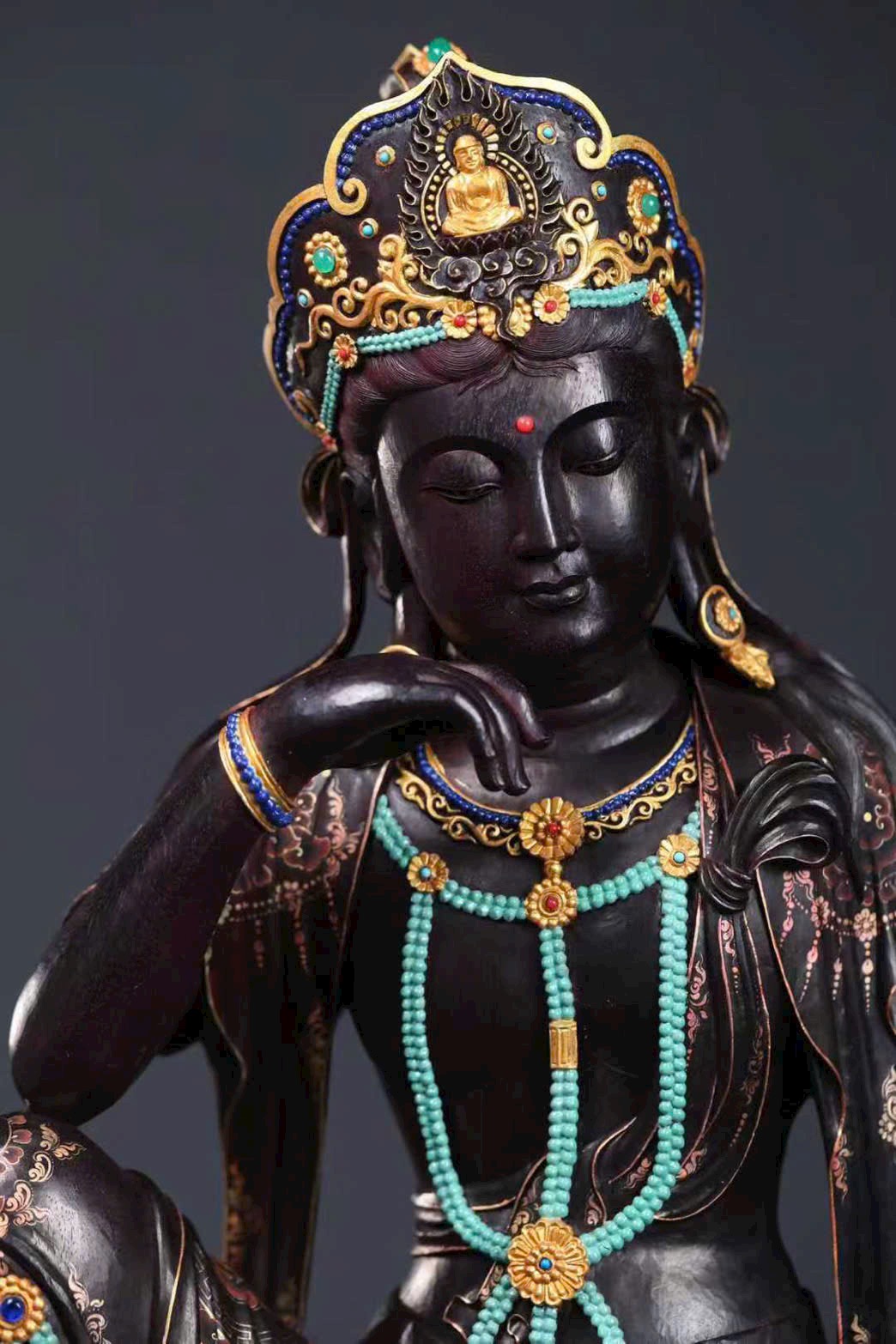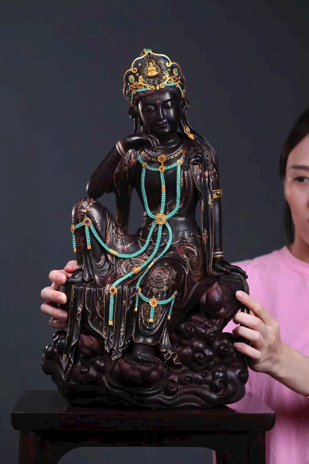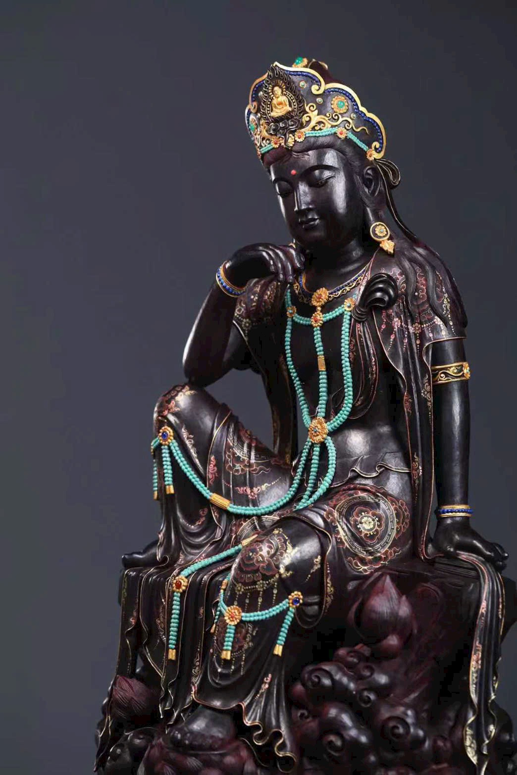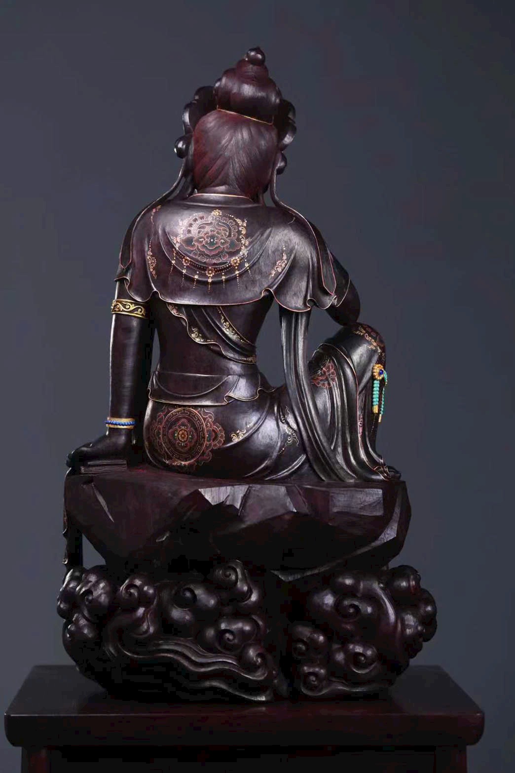 Trên thân và y phục được trang trí họa kim và tô màu thủ công, đường nét trang sức và y văn tỉ mỉ, sắc thái trang nhã rực rỡ. Toàn bộ tư thế thanh thoát, thần thái an hòa, toát lên vẻ uyển chuyển và cao khiết, thể hiện trình độ nghệ thuật xuất sắc của người sáng tác.