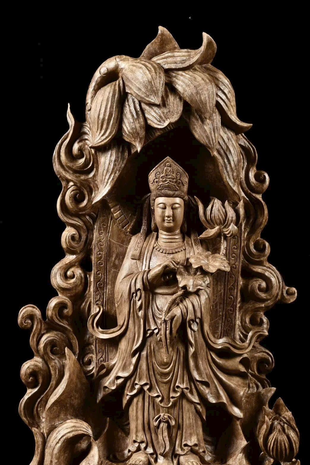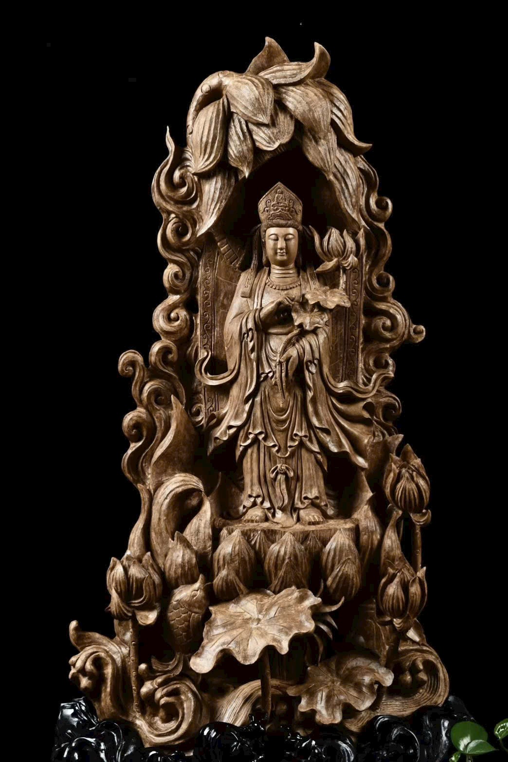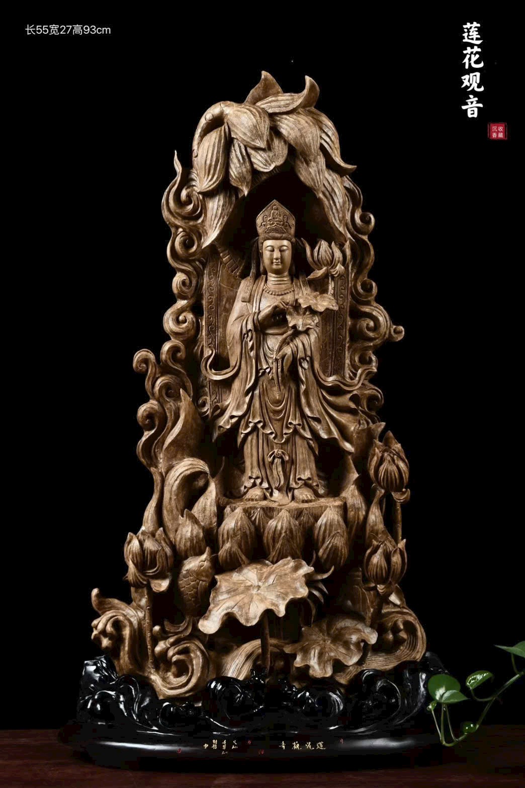 Quan Âm Liên Hoa tượng trưng cho tâm từ bi thanh tịnh, cứu khổ cứu nạn, mang ý nghĩa bình an, cát tường và phúc lộc viên mãn, đồng thời là tác phẩm nghệ thuật trầm hương có giá trị sưu tầm cao.