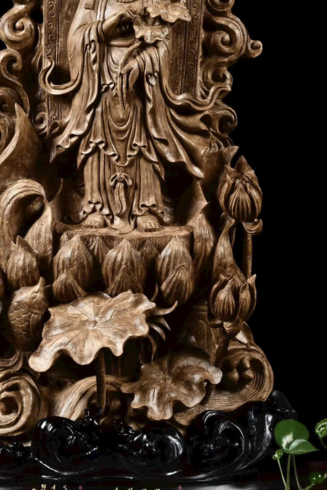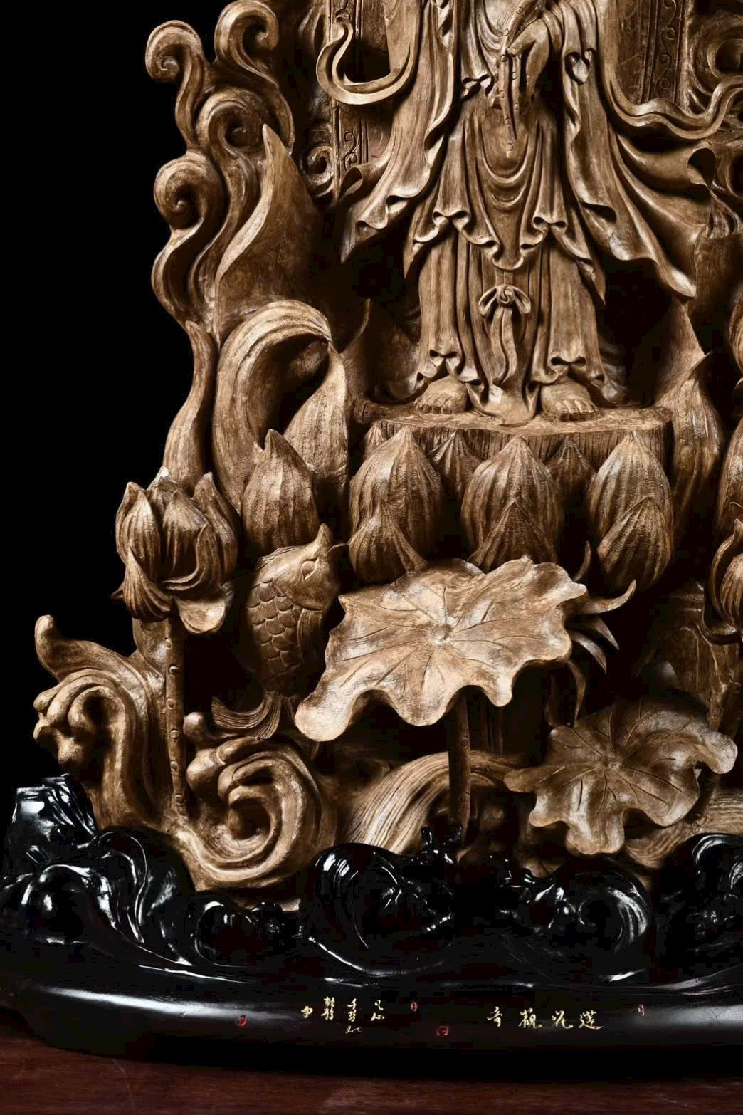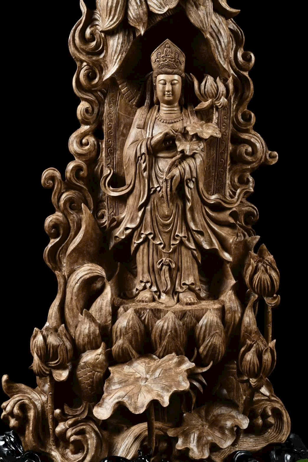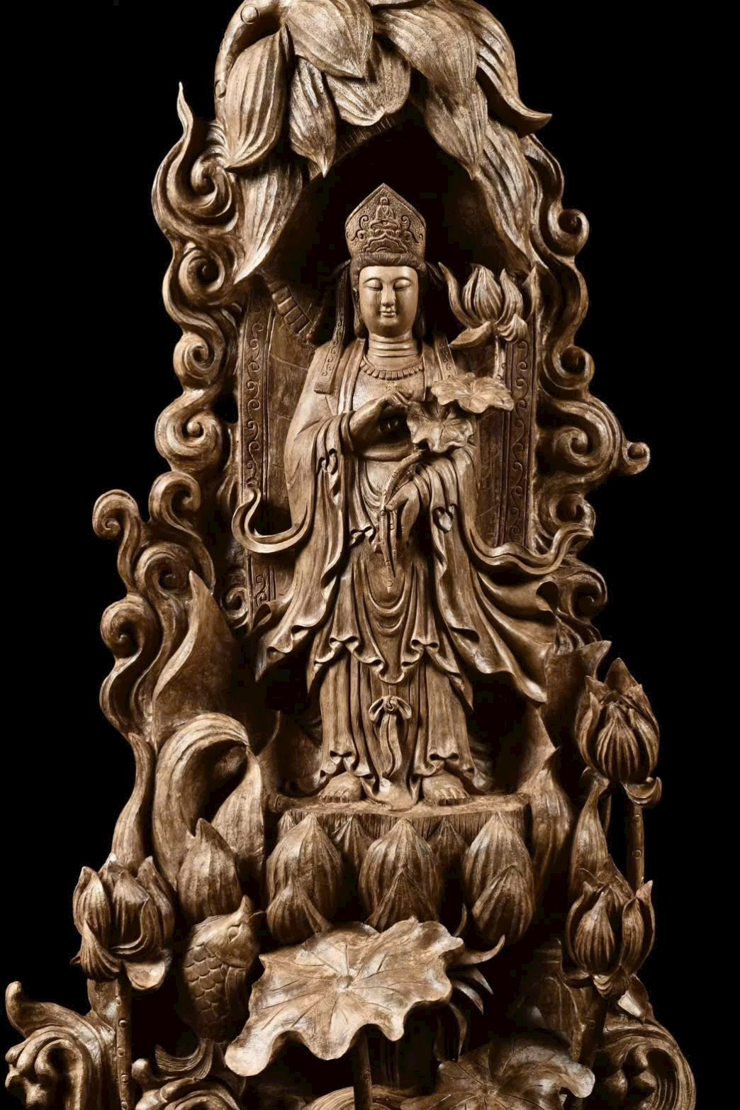 Quan Âm Liên Hoa tượng trưng cho tâm từ bi thanh tịnh, cứu khổ cứu nạn, mang ý nghĩa bình an, cát tường và phúc lộc viên mãn, đồng thời là tác phẩm nghệ thuật trầm hương có giá trị sưu tầm cao.