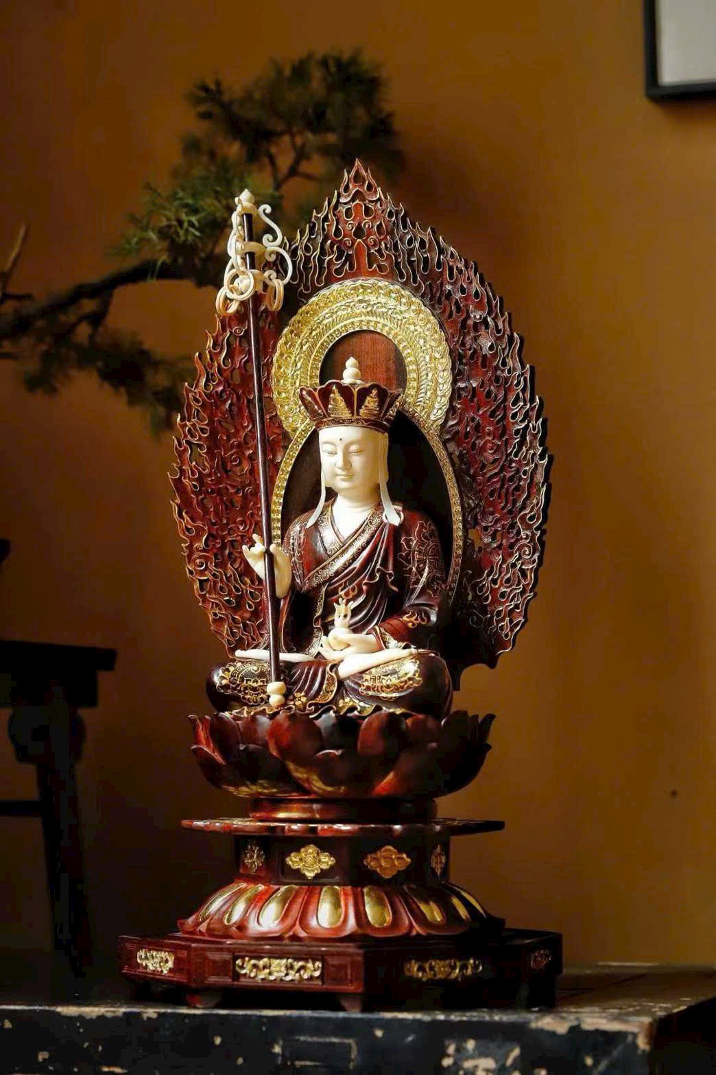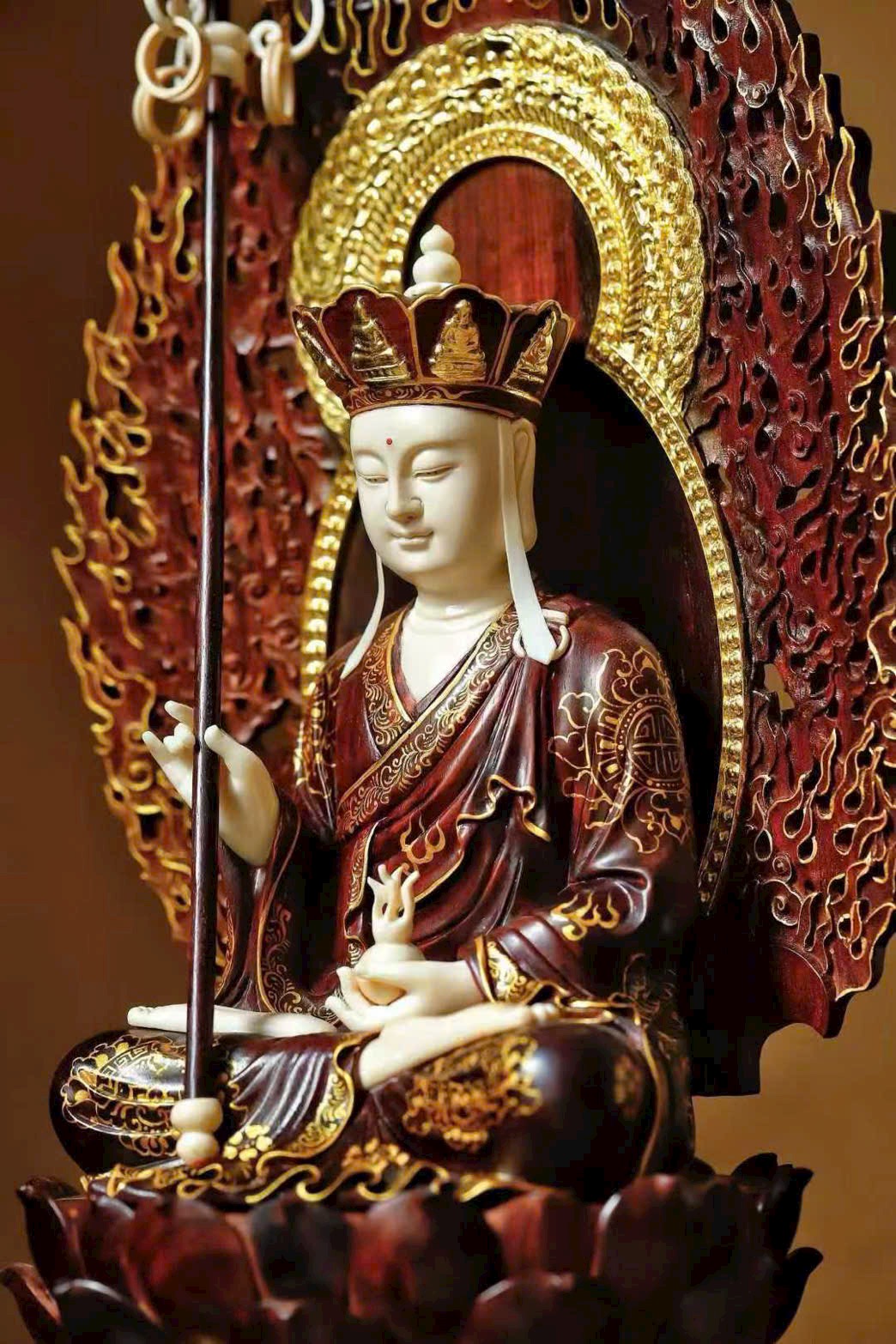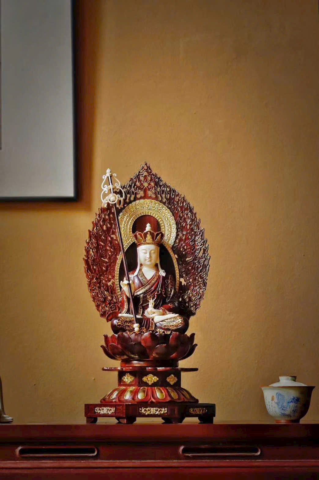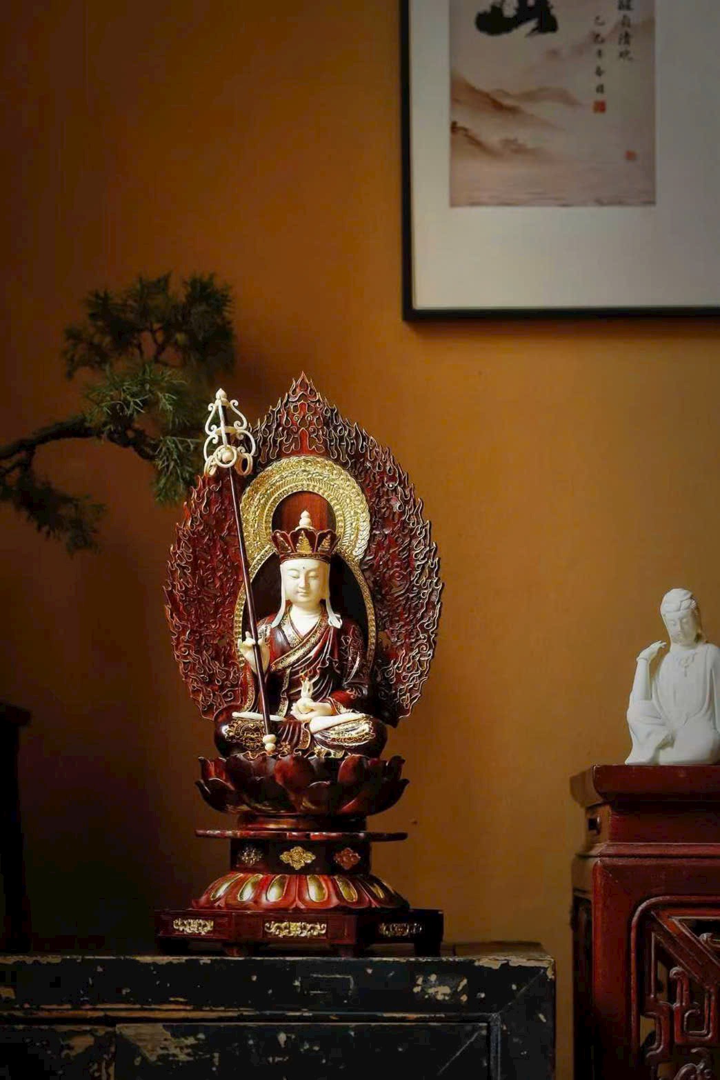 Toàn bộ tượng được chạm khắc thủ công tinh xảo, từng chi tiết tay và thần thái đều sống động, uy nghiêm và trang nghiêm.