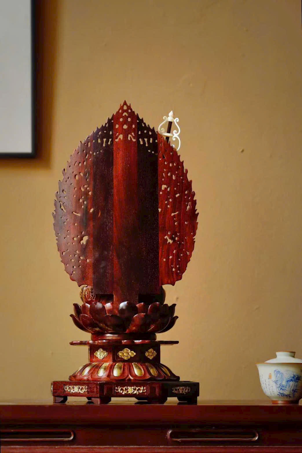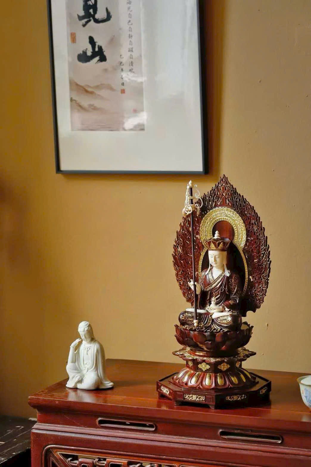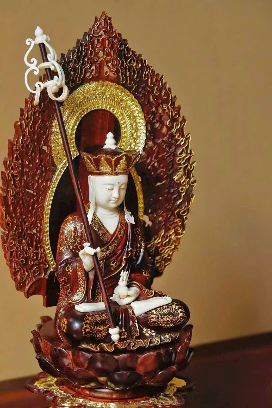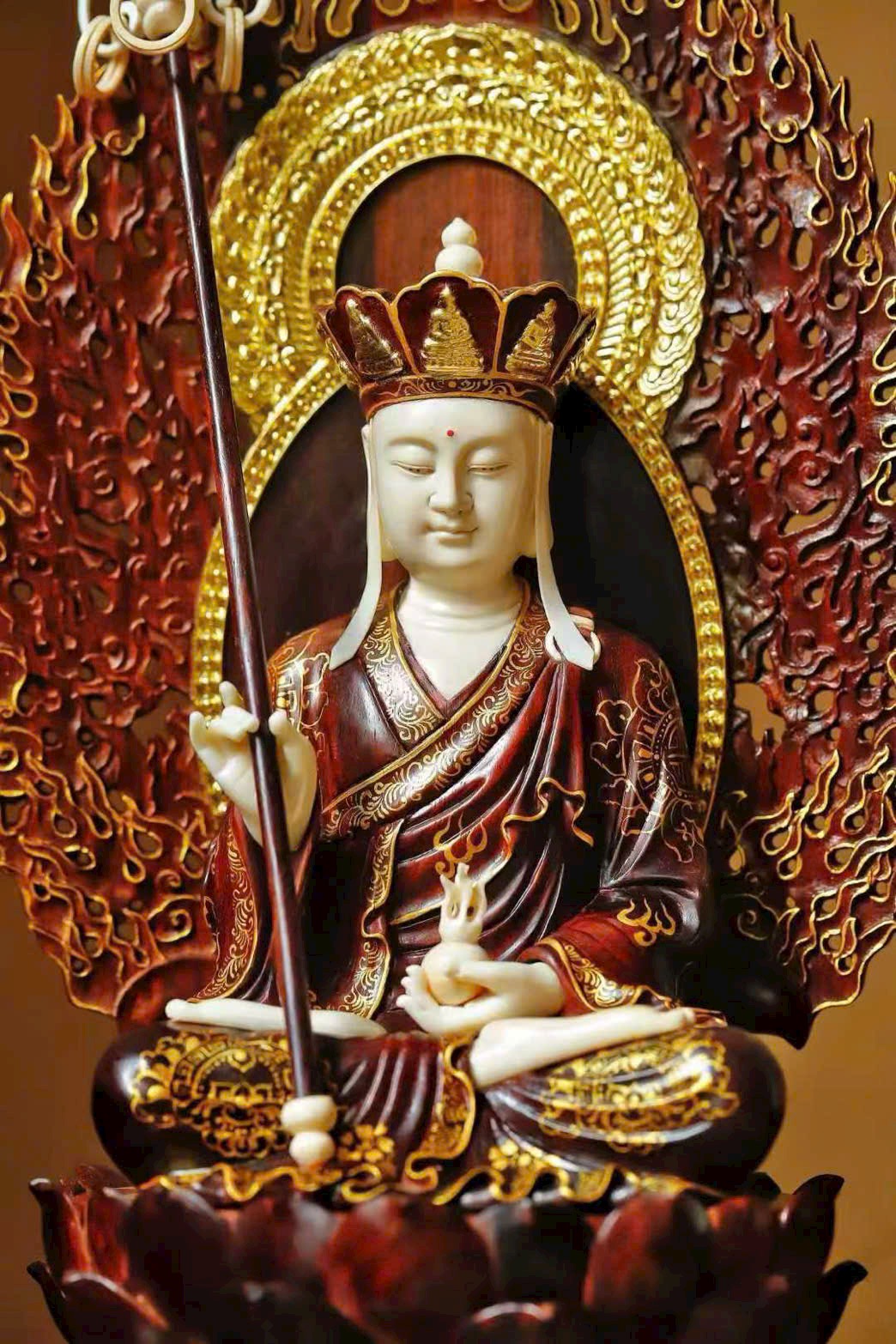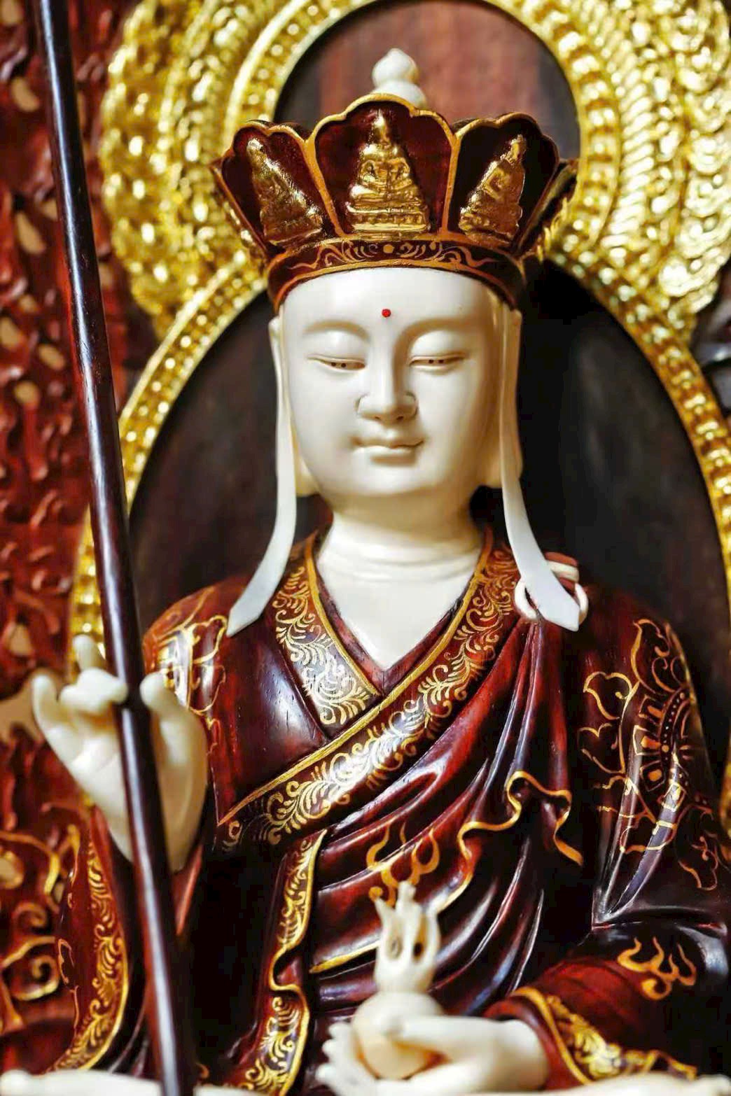 Toàn bộ tượng được chạm khắc thủ công tinh xảo, từng chi tiết tay và thần thái đều sống động, uy nghiêm và trang nghiêm.