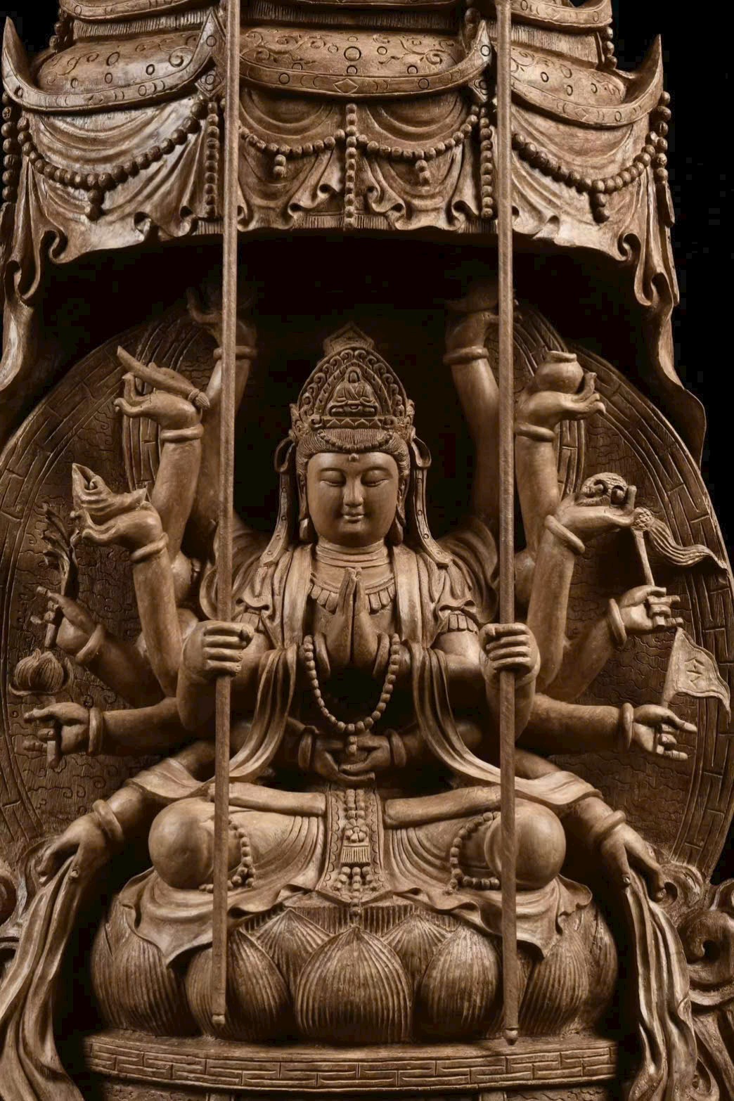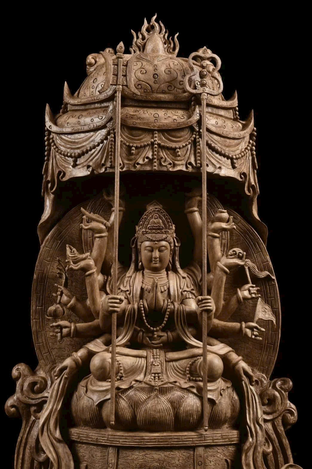 Quan Âm Thiên Thủ tượng trưng cho từ bi vô lượng, cứu khổ cứu nạn, mang ý nghĩa bình an, phúc lộc viên mãn, đồng thời là tác phẩm nghệ thuật trầm hương có giá trị sưu tầm cao.