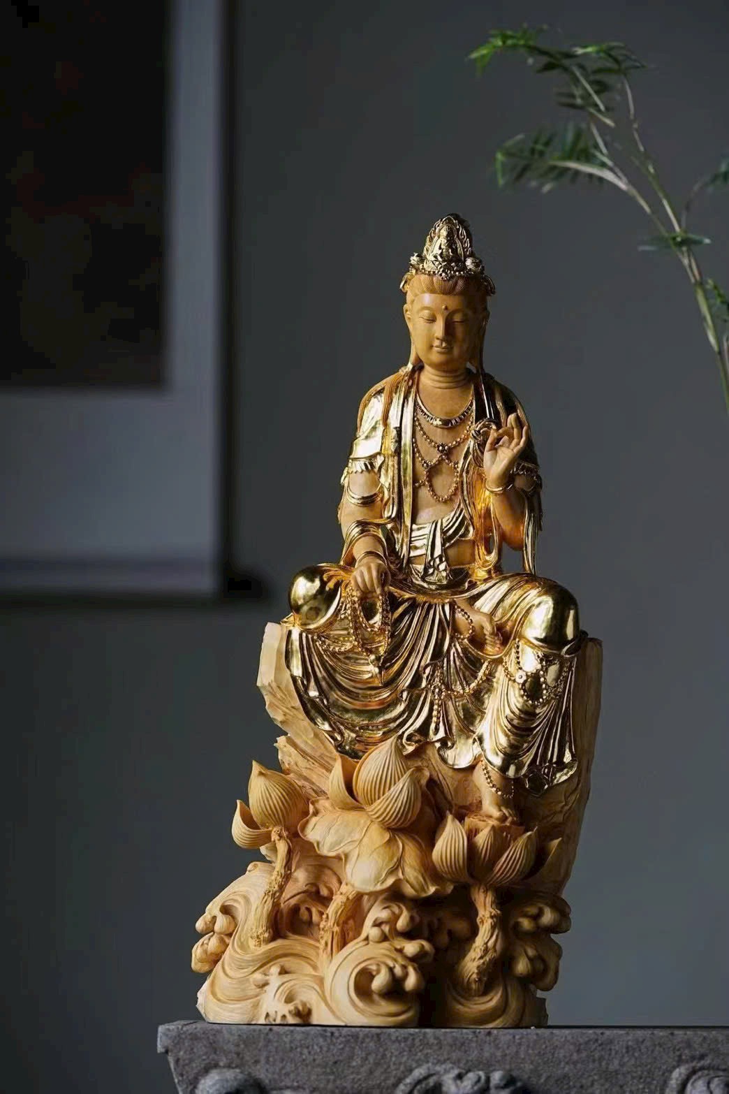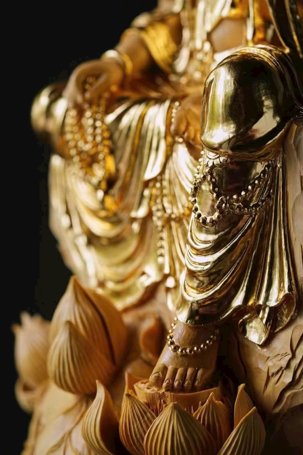 Gỗ hoàng dương dát vàng | Quan Âm Tự Tại