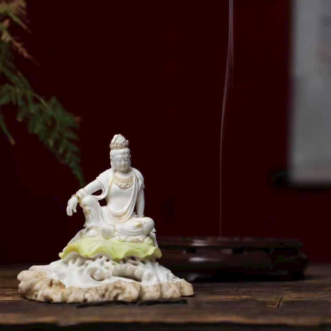 Chế tác hoàn toàn thủ công từ sừng hươu, kết hợp kỹ nghệ vẽ tay phủ vàng tinh xảo. Hình tượng Quan Âm Tự Tại an nhiên tĩnh tọa, tỏa hương thanh khiết, mang đến cảm giác tĩnh tâm và an hòa. Là món phẩm hương vừa trang nhã thưởng thức, vừa mang ý nghĩa cát tường.