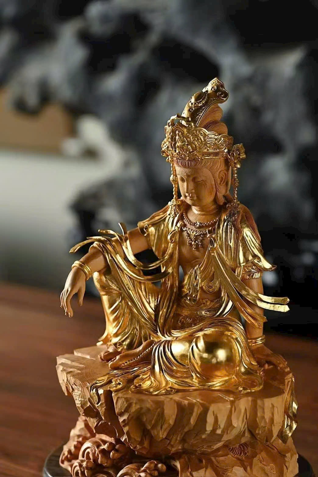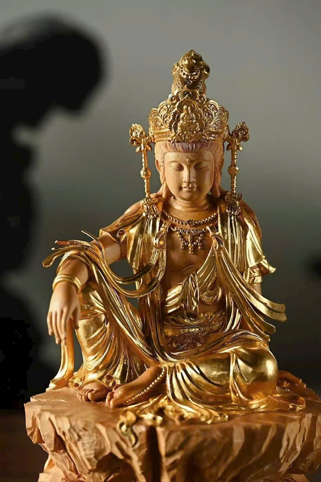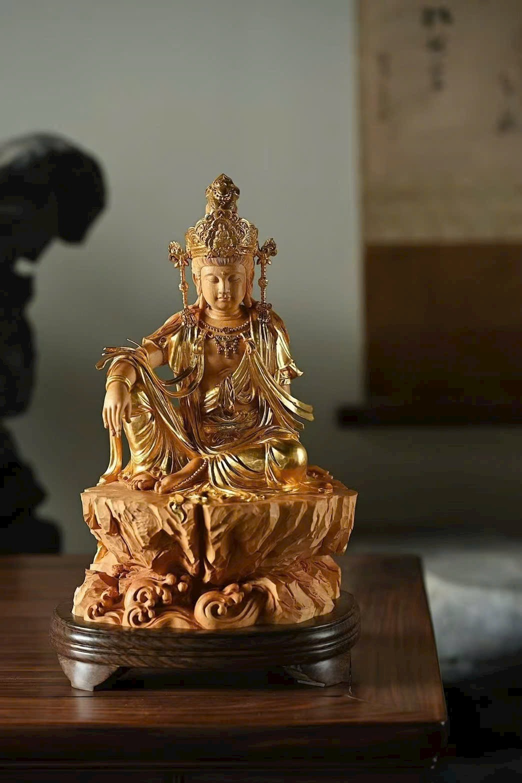 Gỗ hoàng dương × Mạ vàng | “Quan Âm Tự Tại”