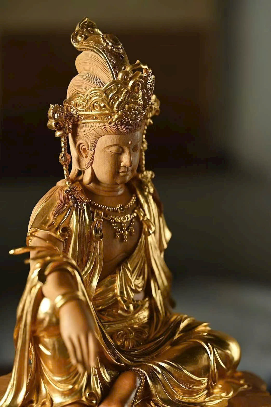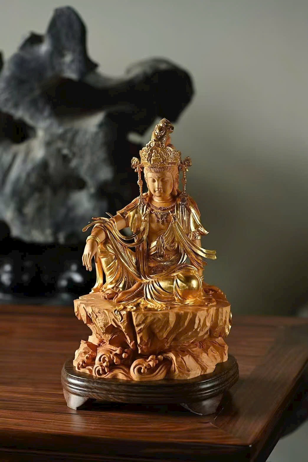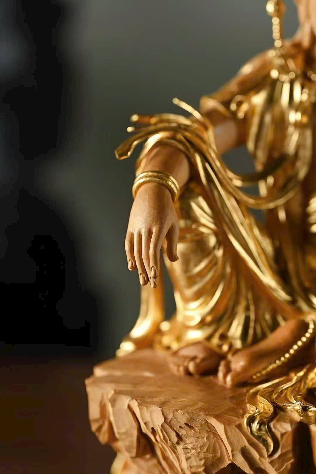 Gỗ hoàng dương × Mạ vàng | “Quan Âm Tự Tại”