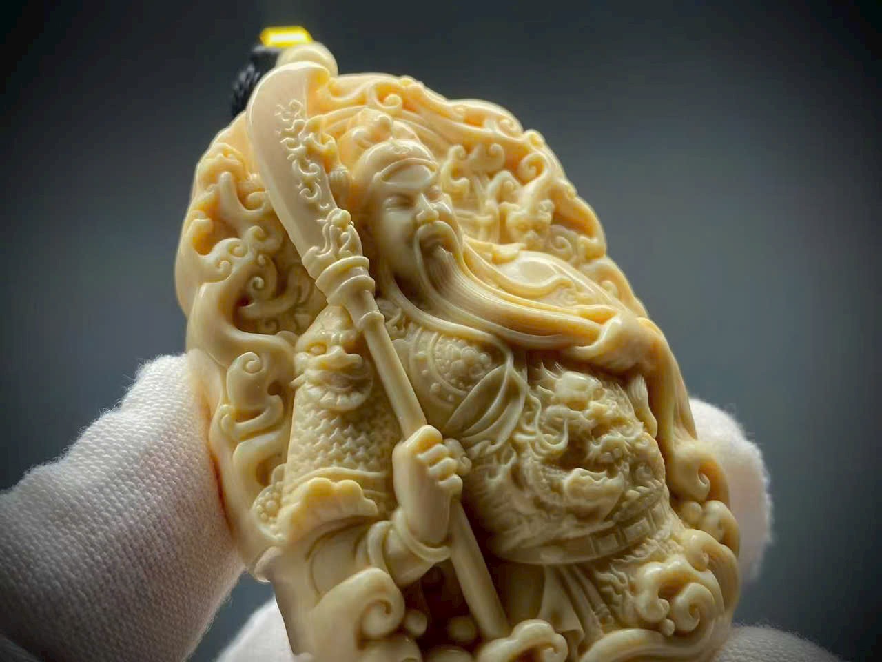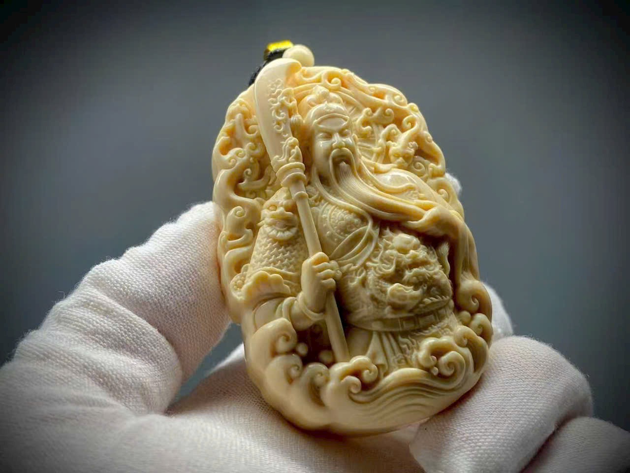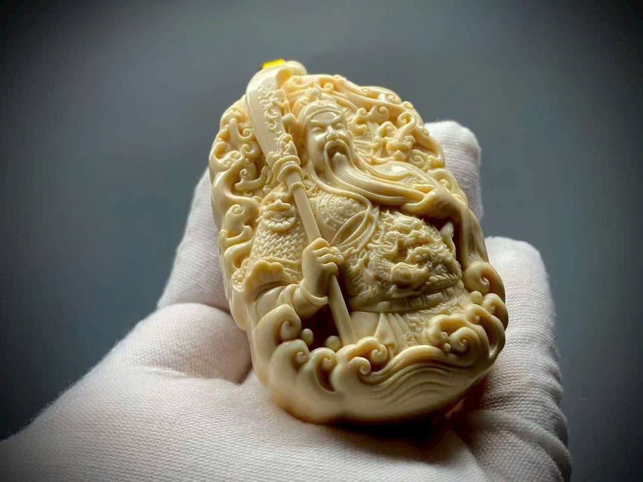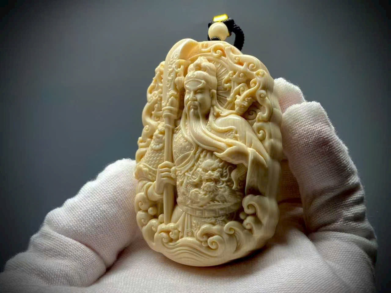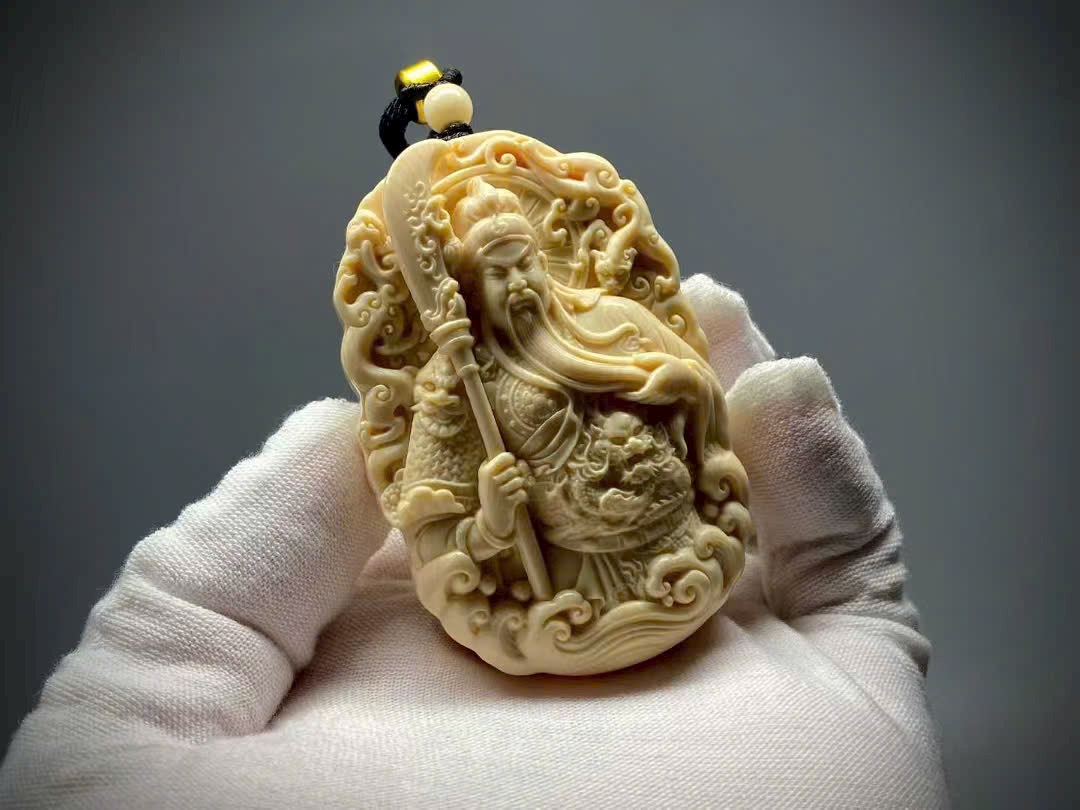 Quan Công khoác chiến bào, tay phải nâng Thanh Long Yển Nguyệt Đao, thần thái nghiêm trang uy vũ, toát lên khí độ hiên ngang, oai phong lẫm liệt. Quan Công tượng trưng cho chính khí cương trực, có tác dụng trấn trạch – trừ tà, đồng thời được tôn xưng là “Võ Tài Thần”, biểu trưng cho tài lộc và phồn vinh.
