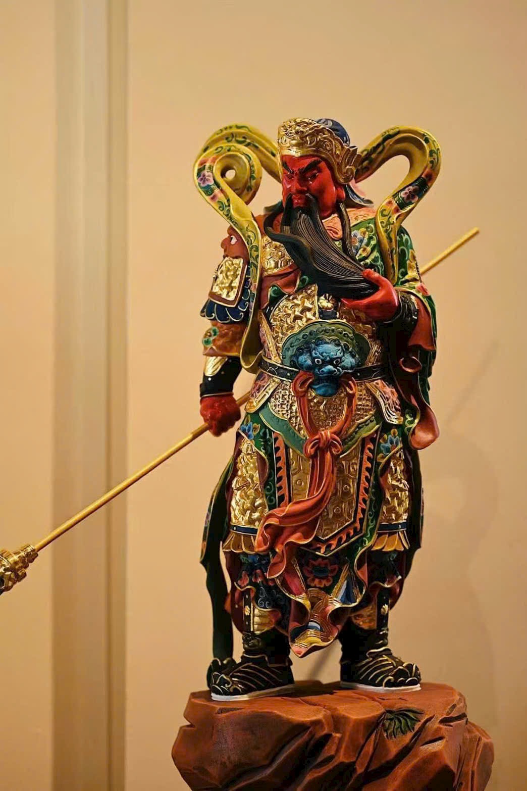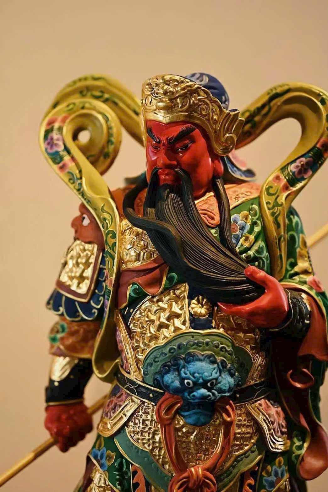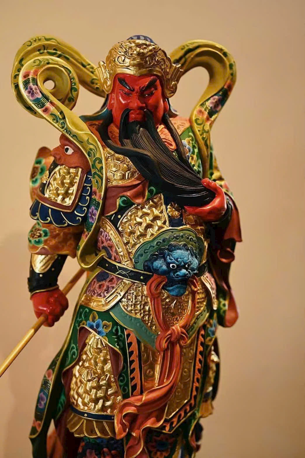 Bố cục chạm khắc tiết chế hợp lý, không giận mà tự uy, lớp vẽ màu sống động tinh tế, toát trọn phong thái “Võ Thánh”.