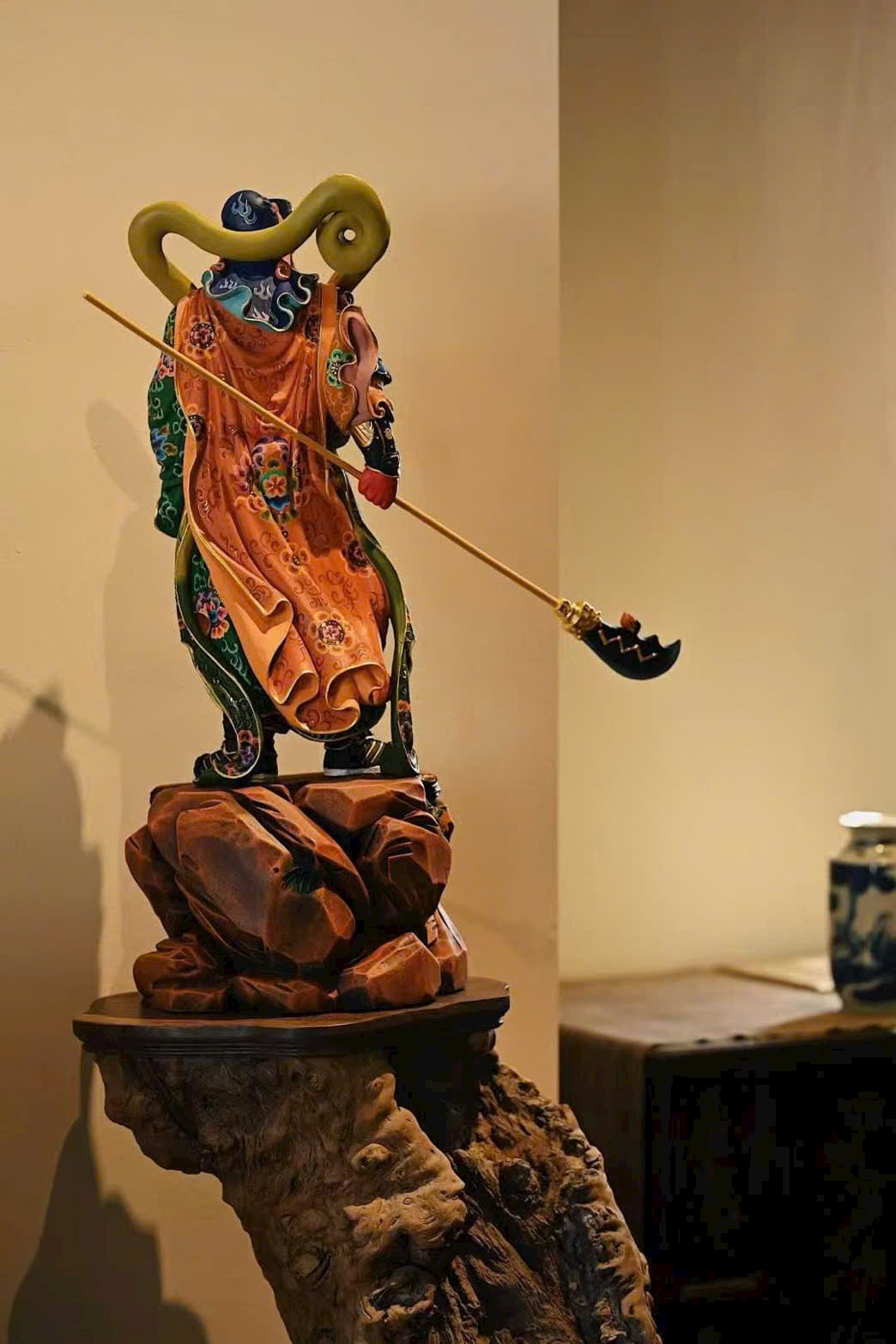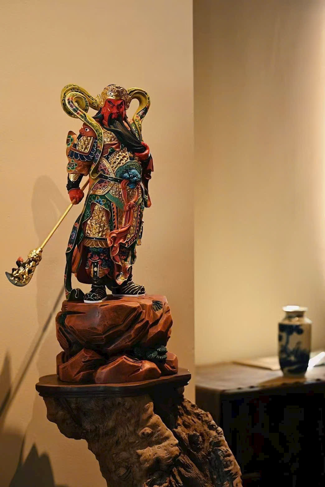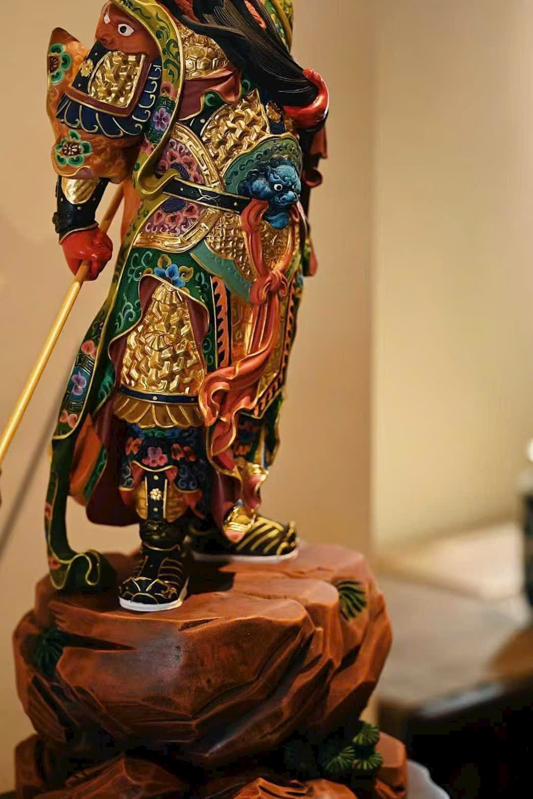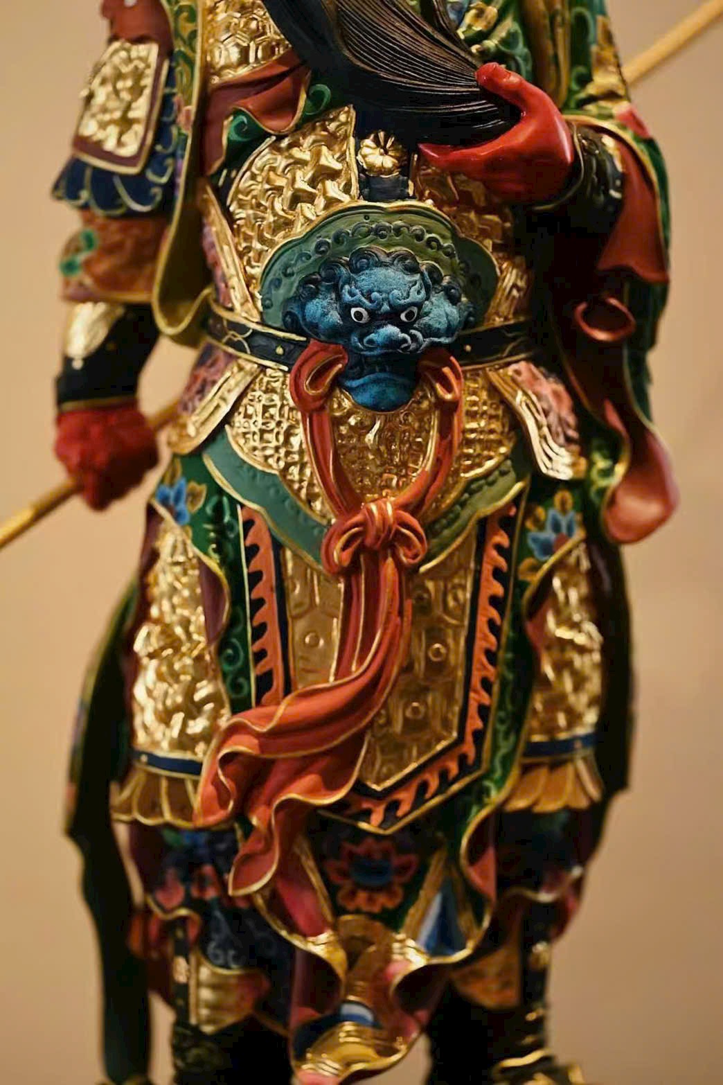 Bố cục chạm khắc tiết chế hợp lý, không giận mà tự uy, lớp vẽ màu sống động tinh tế, toát trọn phong thái “Võ Thánh”.