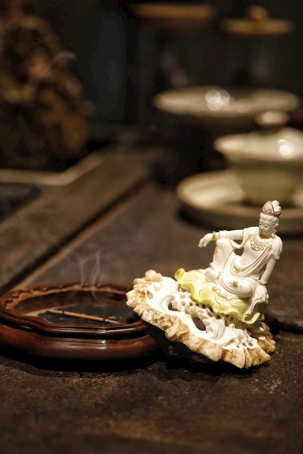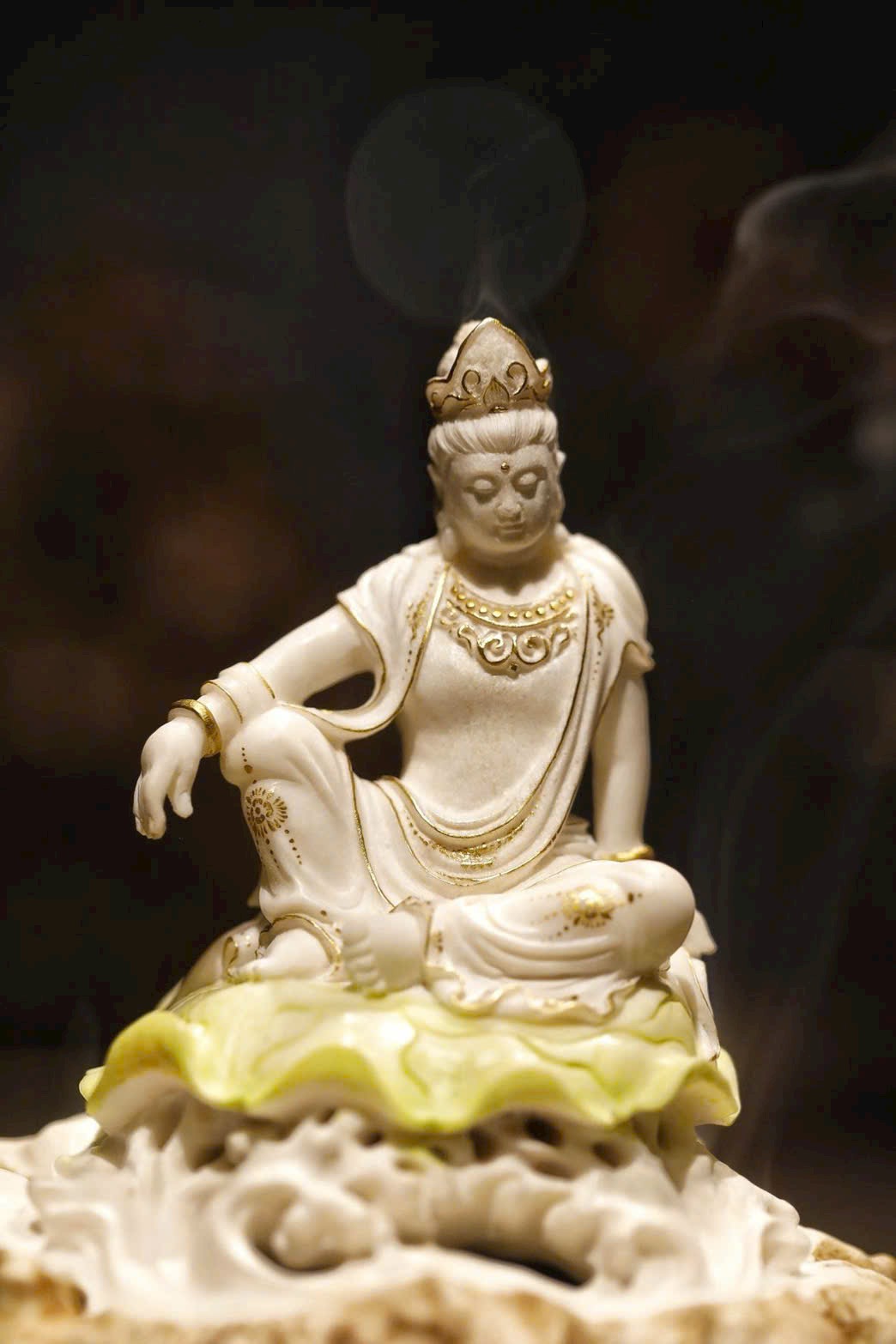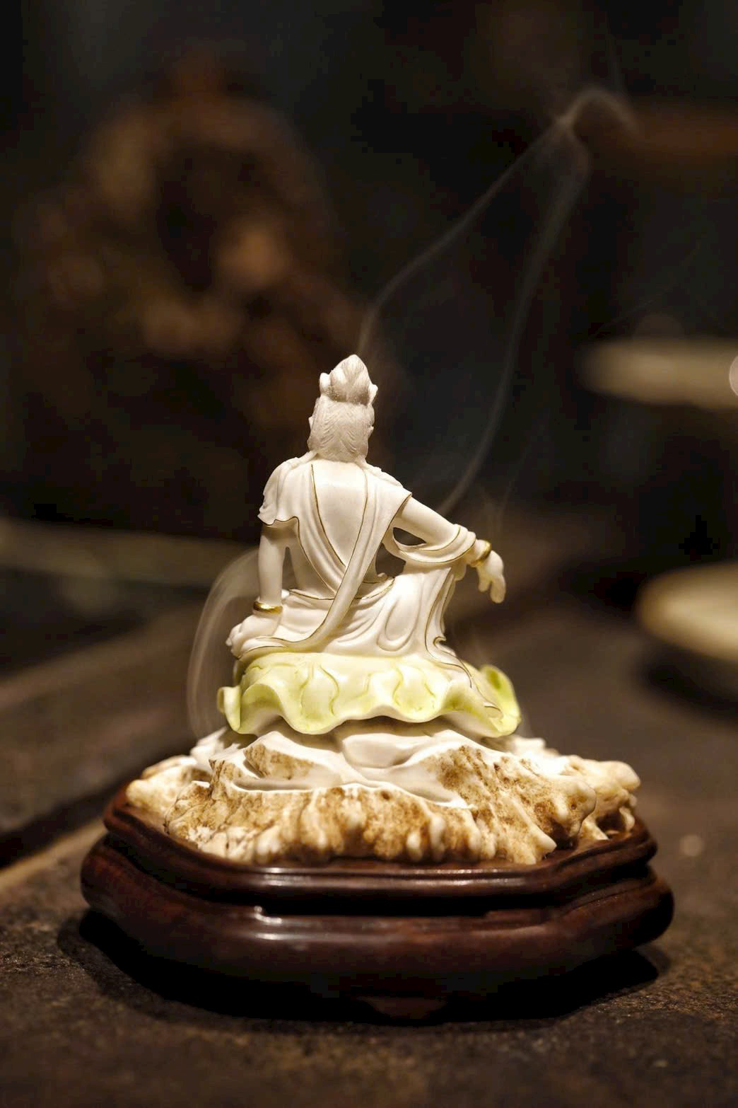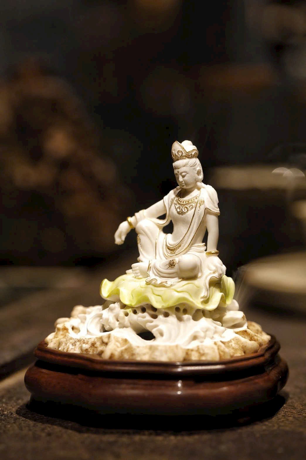 Chọn sừng hươu tự nhiên ấm nhuận, thủ công điêu khắc tôn tượng Quán Âm Tự Tại. Tà áo nhẹ bay, điểm xuyết vàng kim càng tôn vẻ từ bi trang nghiêm. Một tác phẩm dung hòa giữa mỹ nghệ và thiền tâm; khi hương khói bay lên, cả không gian ngập tràn thanh tịnh an hòa.
