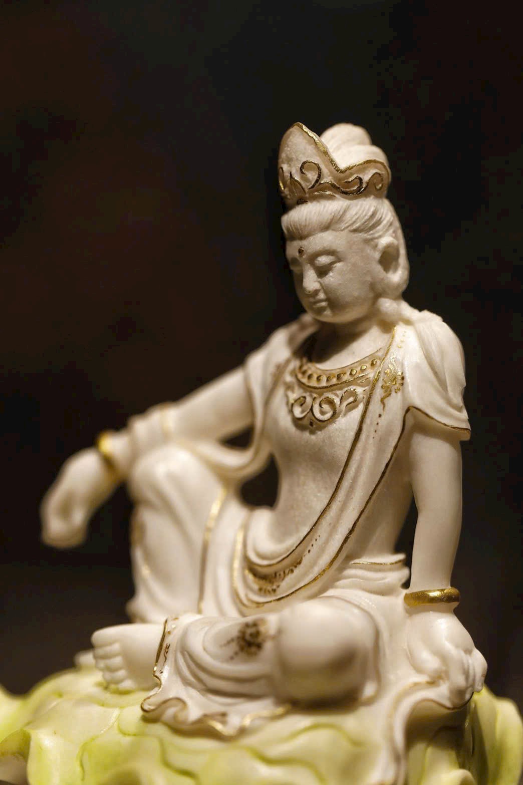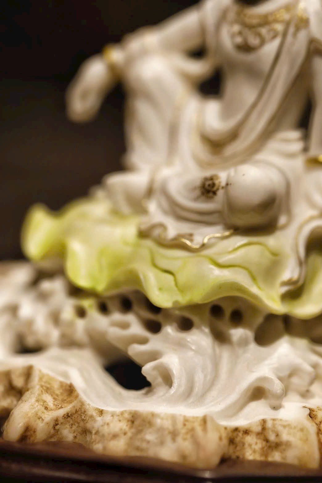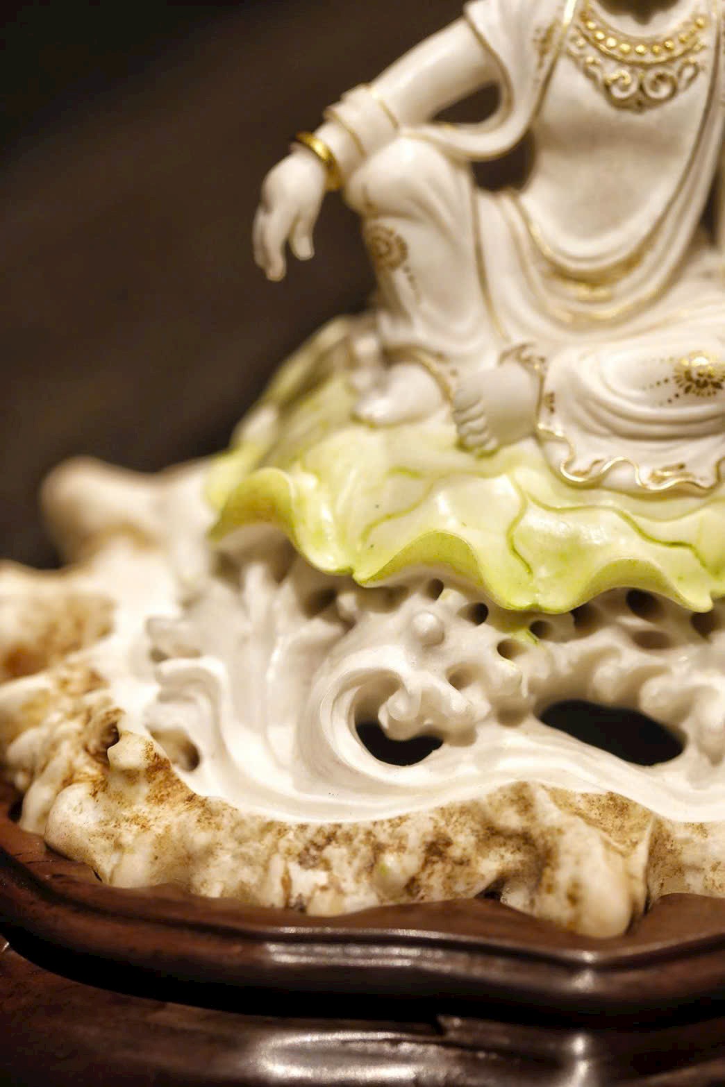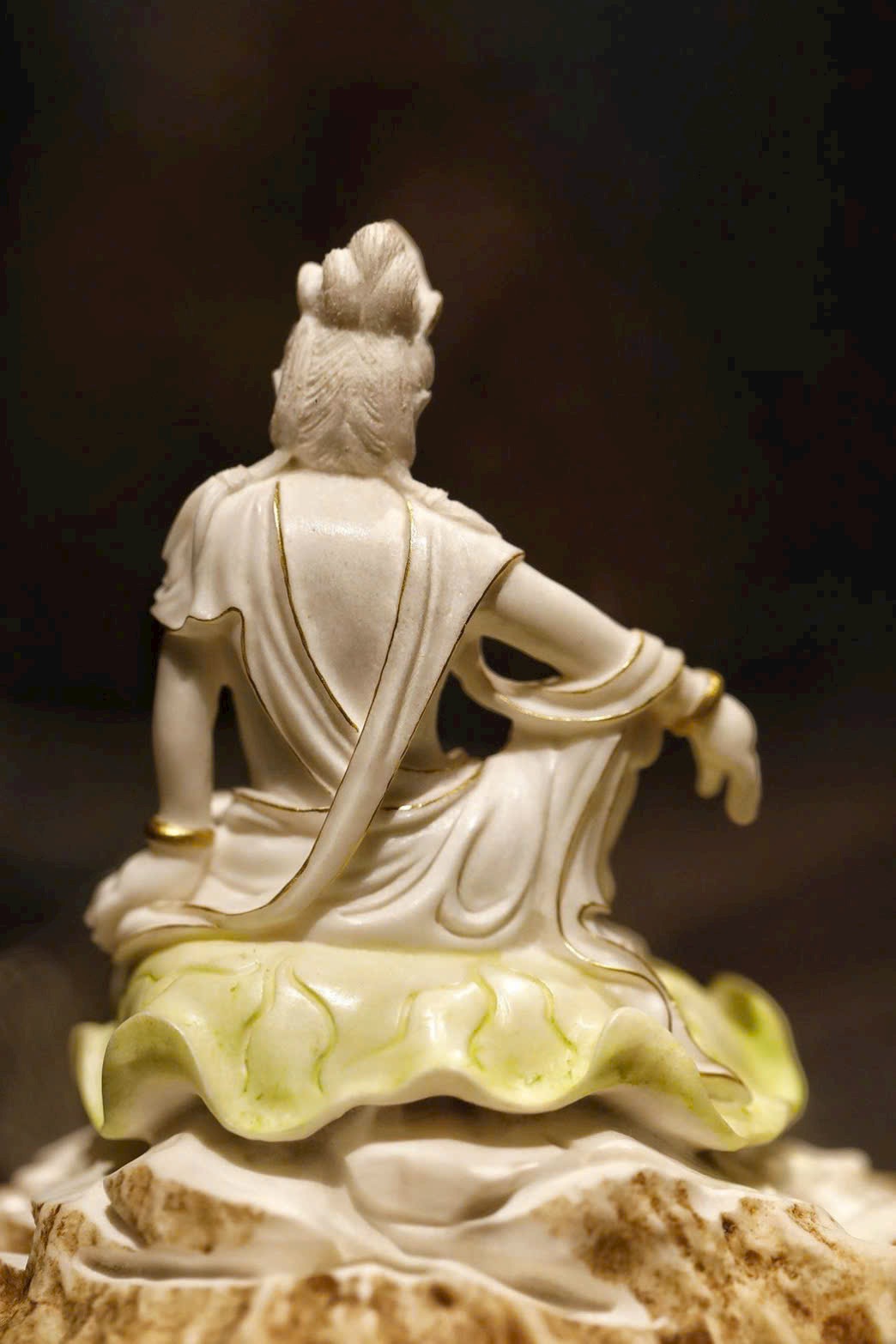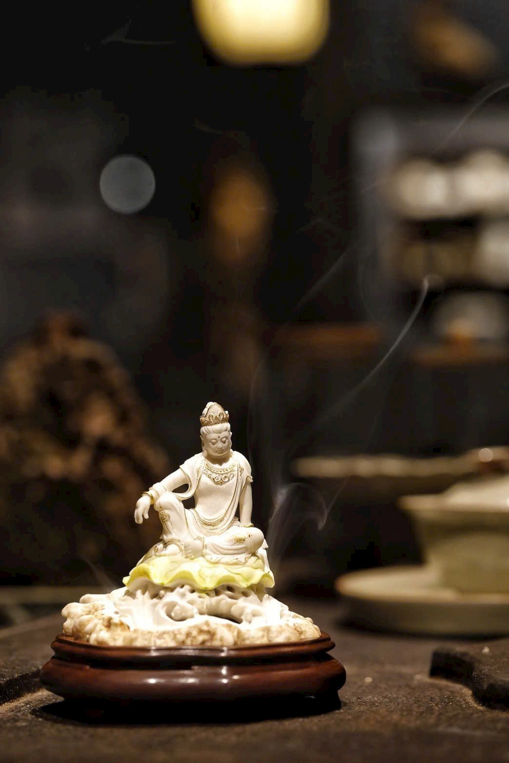 Chọn sừng hươu tự nhiên ấm nhuận, thủ công điêu khắc tôn tượng Quán Âm Tự Tại. Tà áo nhẹ bay, điểm xuyết vàng kim càng tôn vẻ từ bi trang nghiêm. Một tác phẩm dung hòa giữa mỹ nghệ và thiền tâm; khi hương khói bay lên, cả không gian ngập tràn thanh tịnh an hòa.
