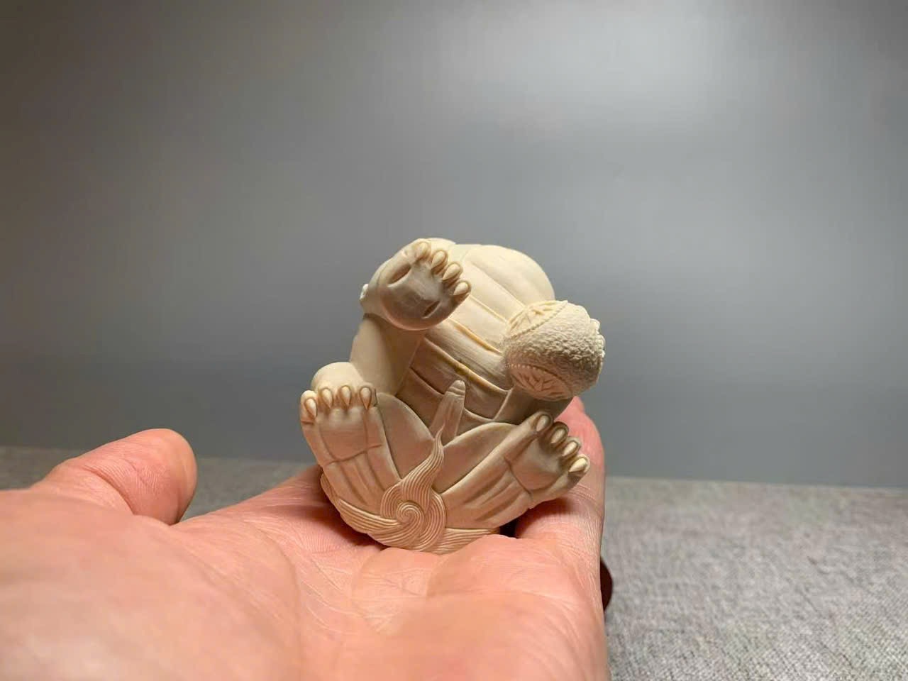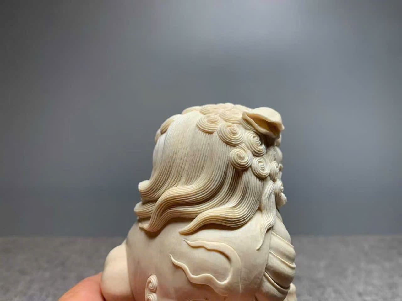 Thủ công tạc bằng dao tinh xảo, từng đường nét uyển chuyển tự nhiên, hình thái hài hòa, khí vận viên mãn.