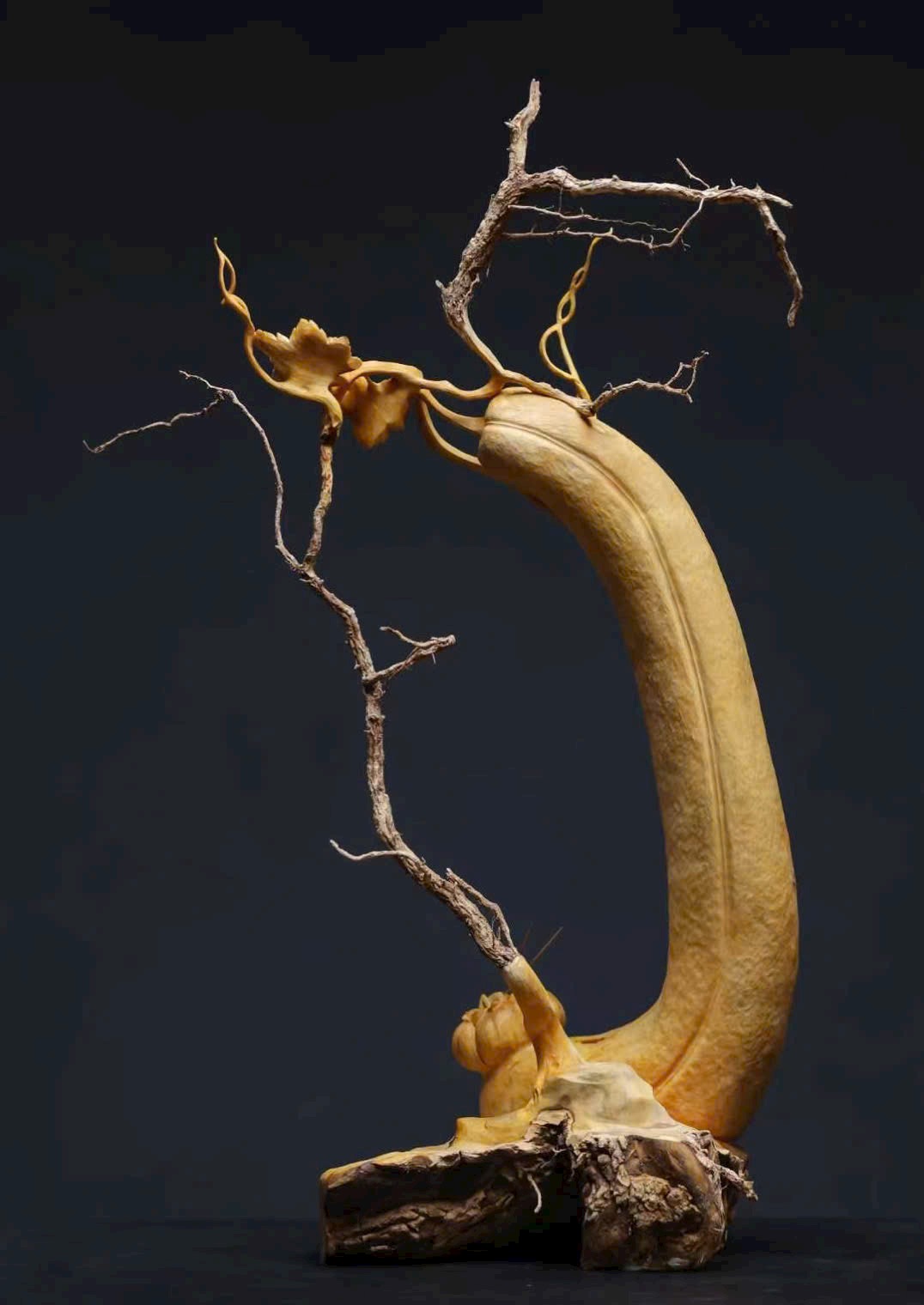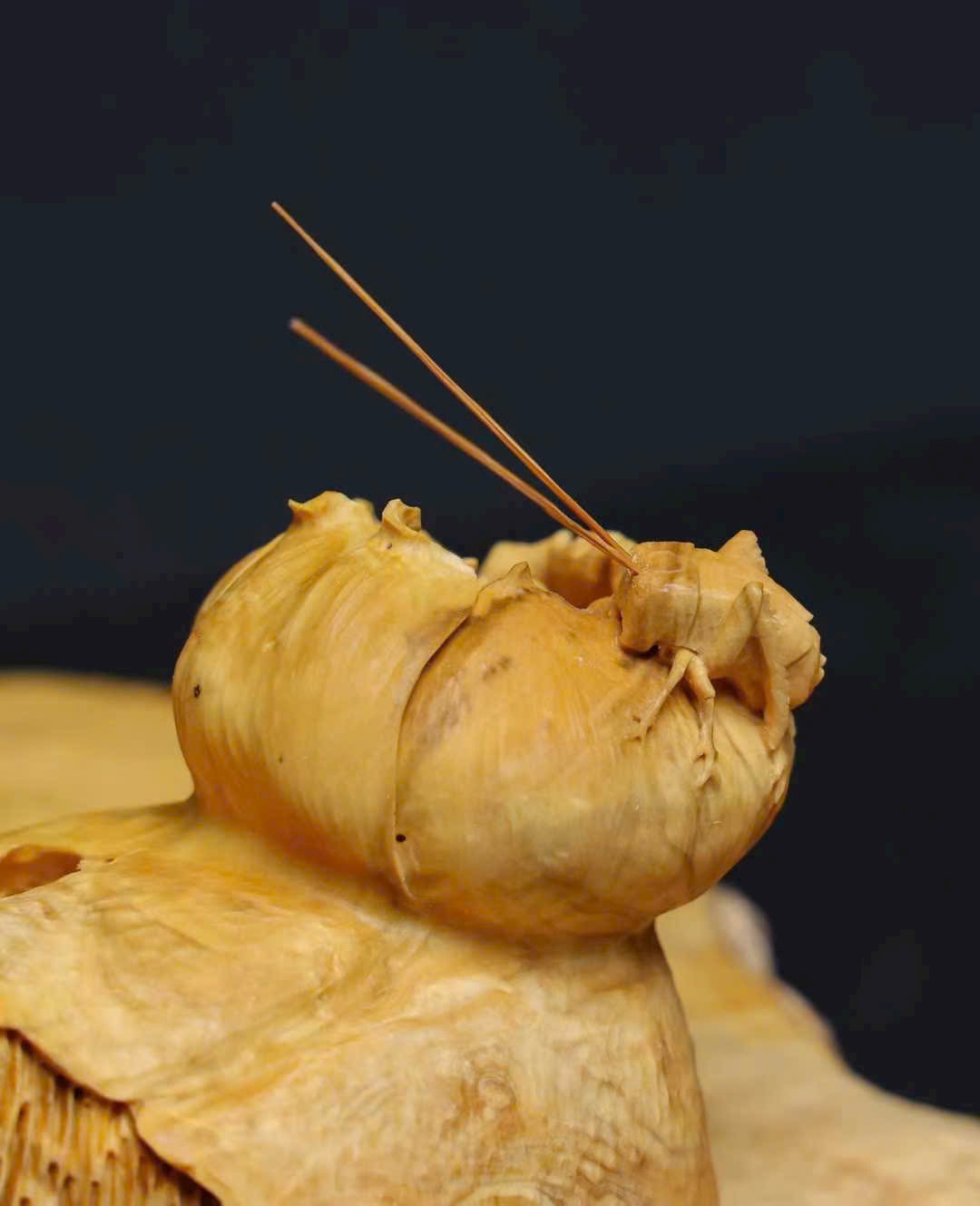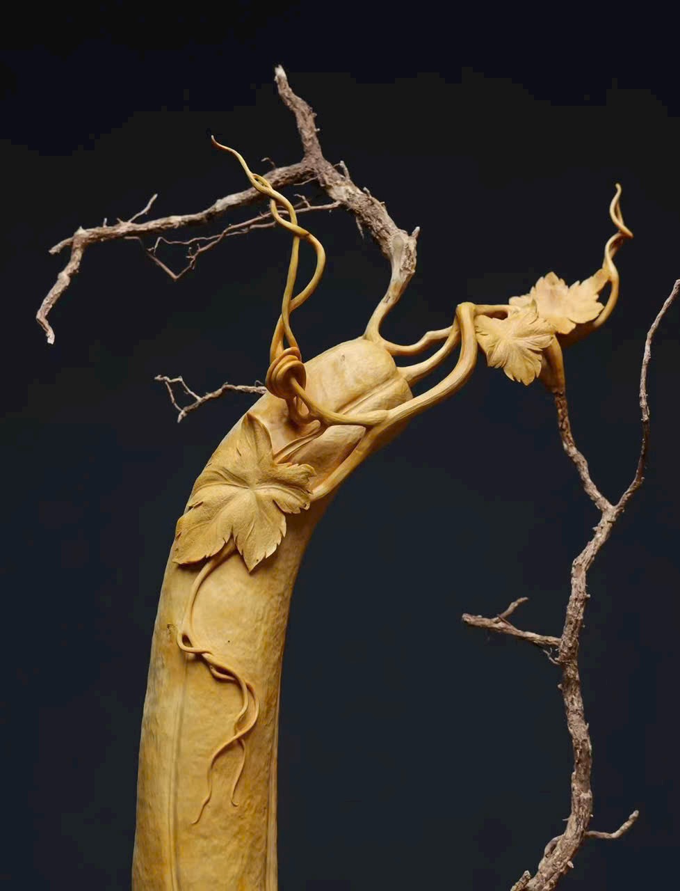Tác phẩm chạm khắc thủ công từ một khối gỗ nguyên liệu, áp dụng kỹ thuật tròn khối (round carving), một gỗ tạo hình – không ghép nối, kết cấu liền mạch tự nhiên, phẩm tướng hoàn hảo, không tì vết. Ý nghĩa cát tường như ý – chiêu tài nạp bảo, rất thích hợp trưng bày nhà ở, văn phòng hoặc sưu tầm.