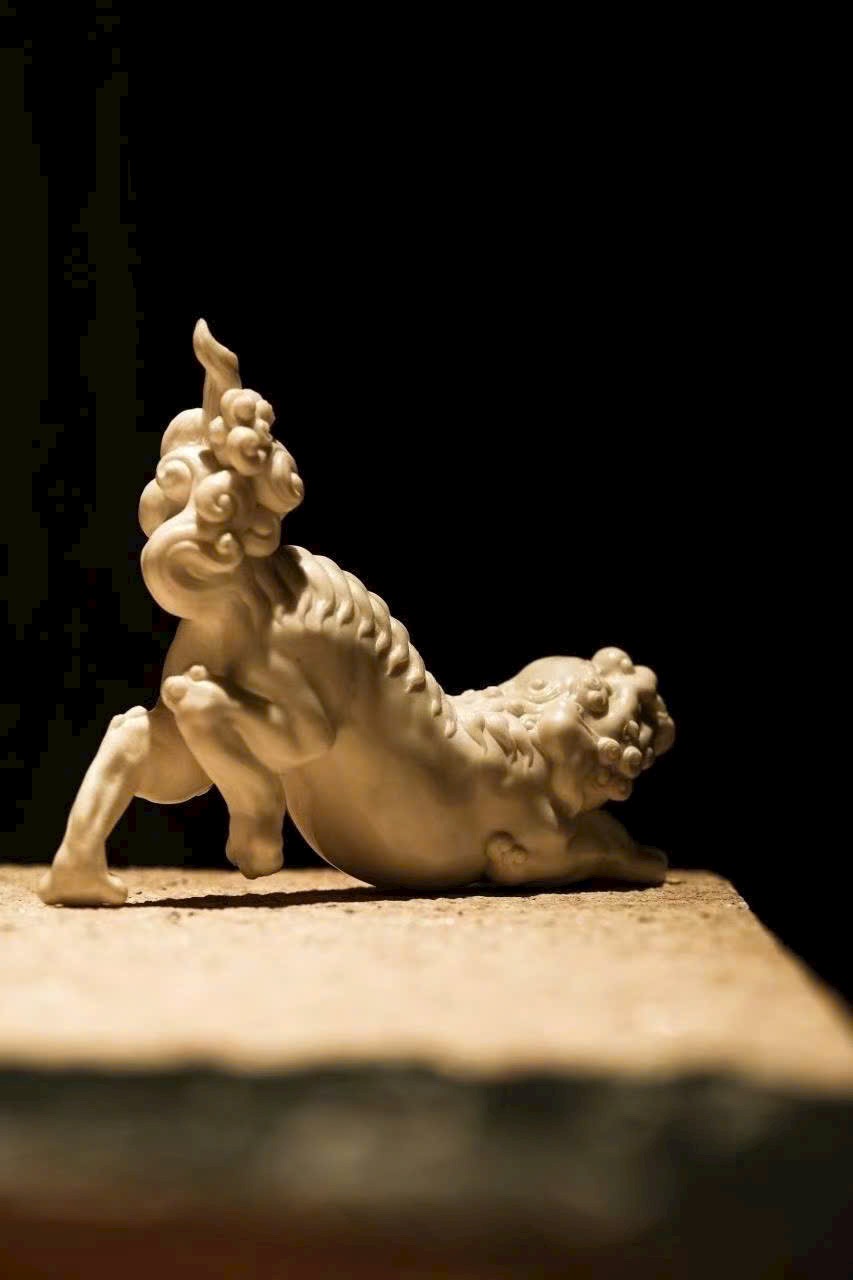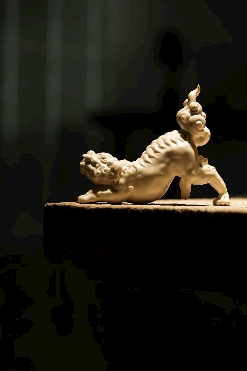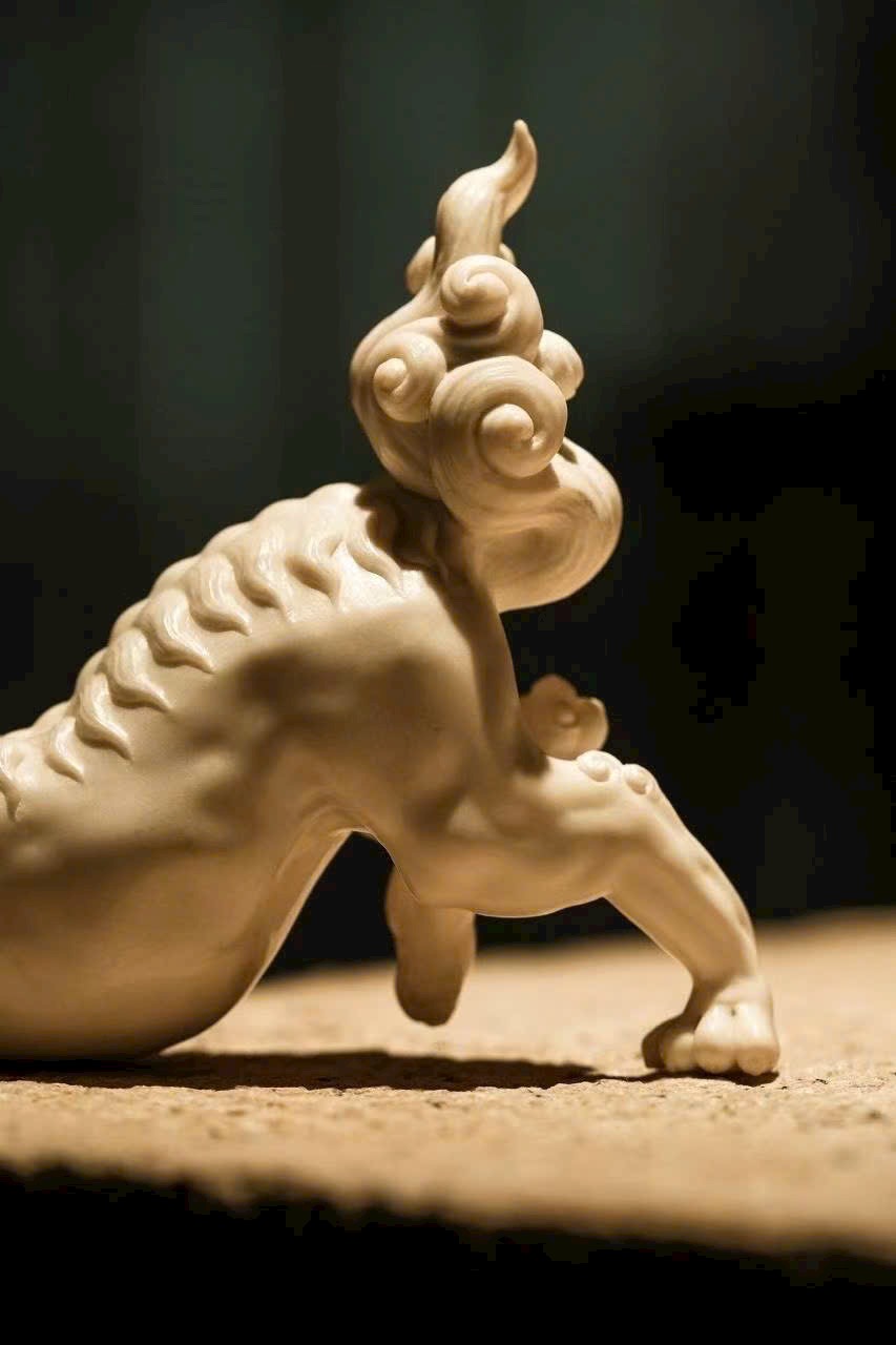 Tác phẩm chất liệu lớn, điêu khắc theo phong cách Tương công tinh tế. Tư thế sư tử nằm chơi bóng uyển chuyển sống động, thần thái hiền hòa đáng yêu. Lửa linh vờn quanh chân gối, đường dao sắc sảo, hình – thần – chất đều đạt. Gạc hươu đặc ruột, độ mịn cao – thích hợp trưng bày lẫn sưu tầm.