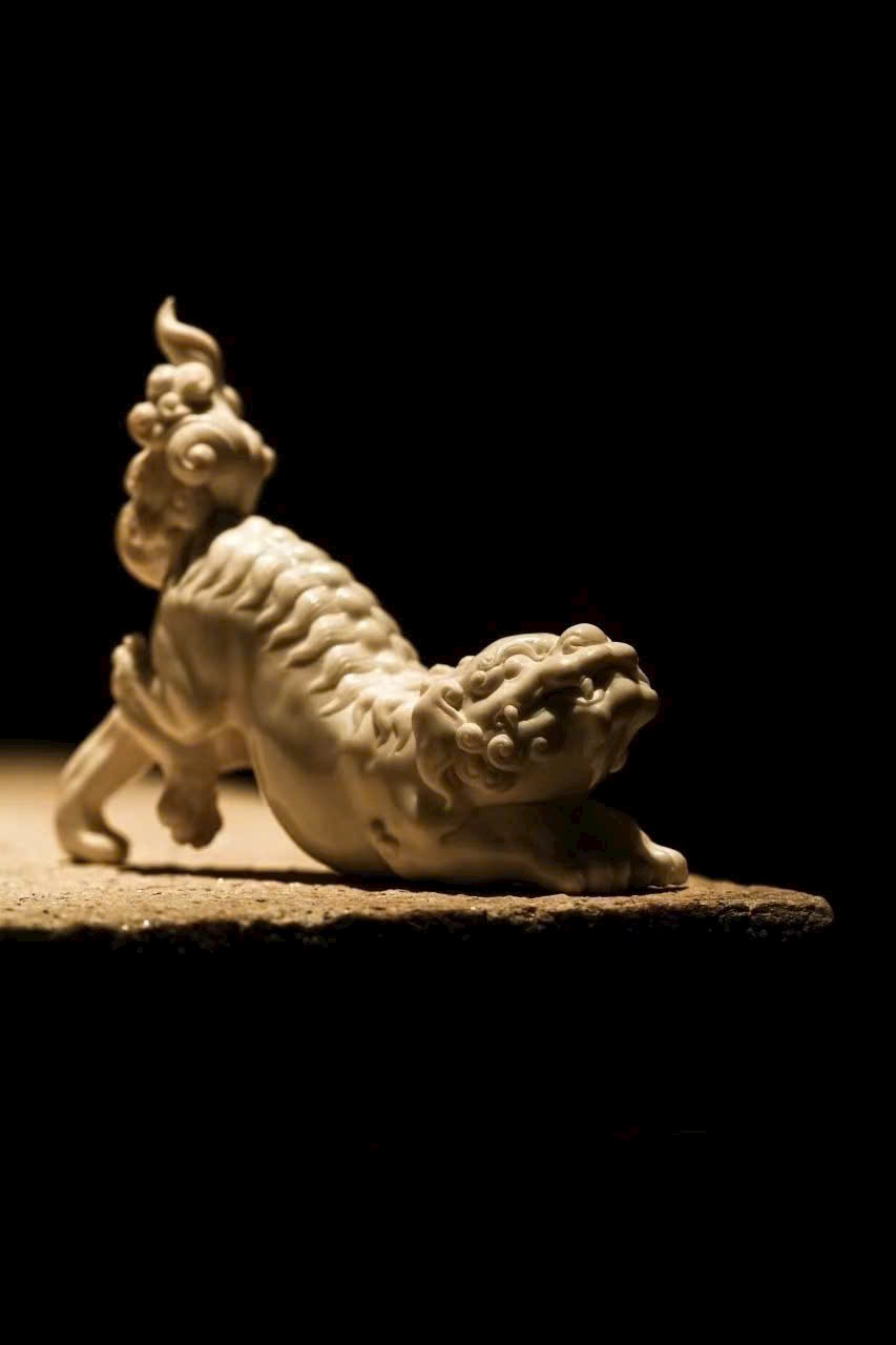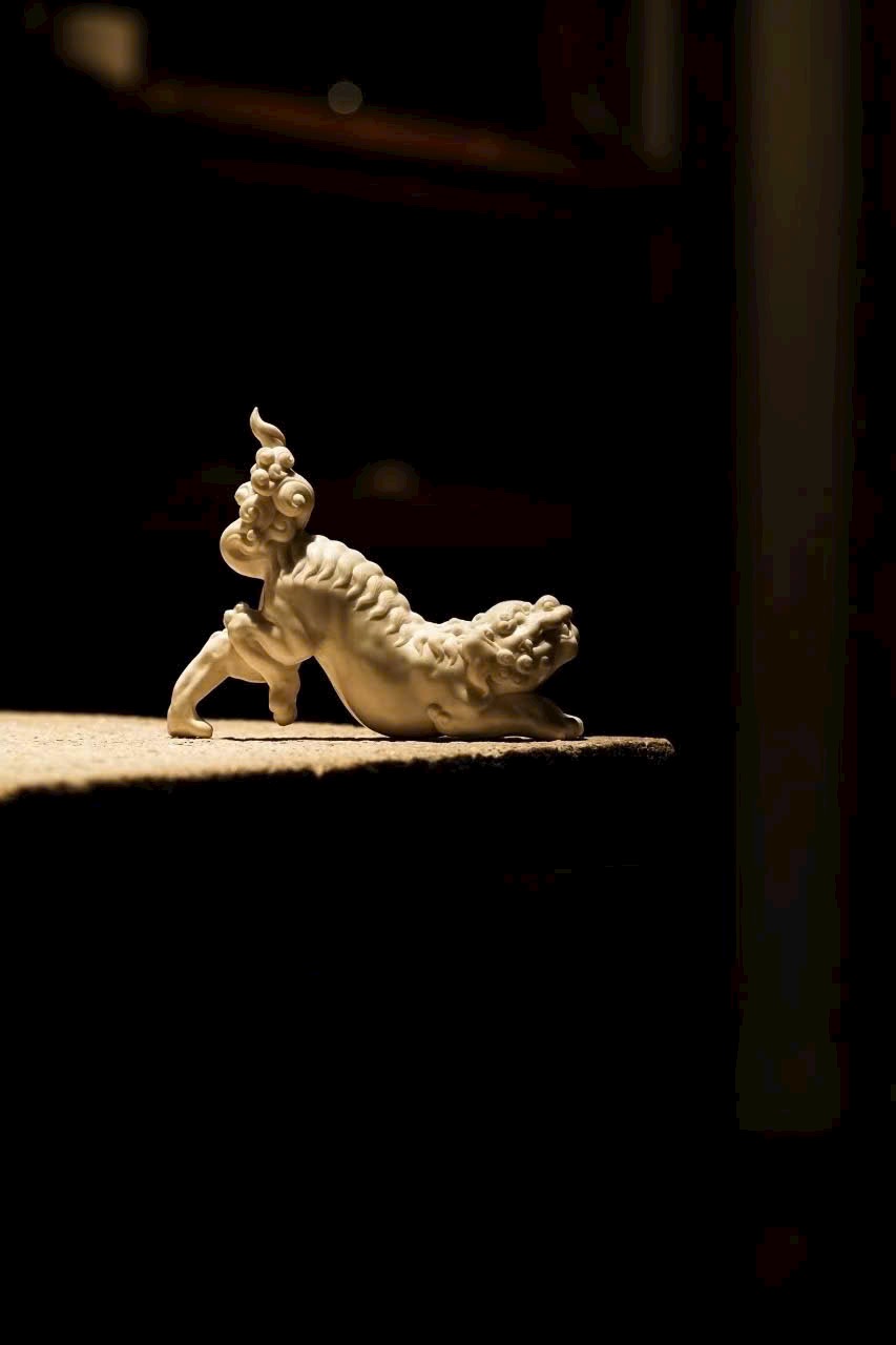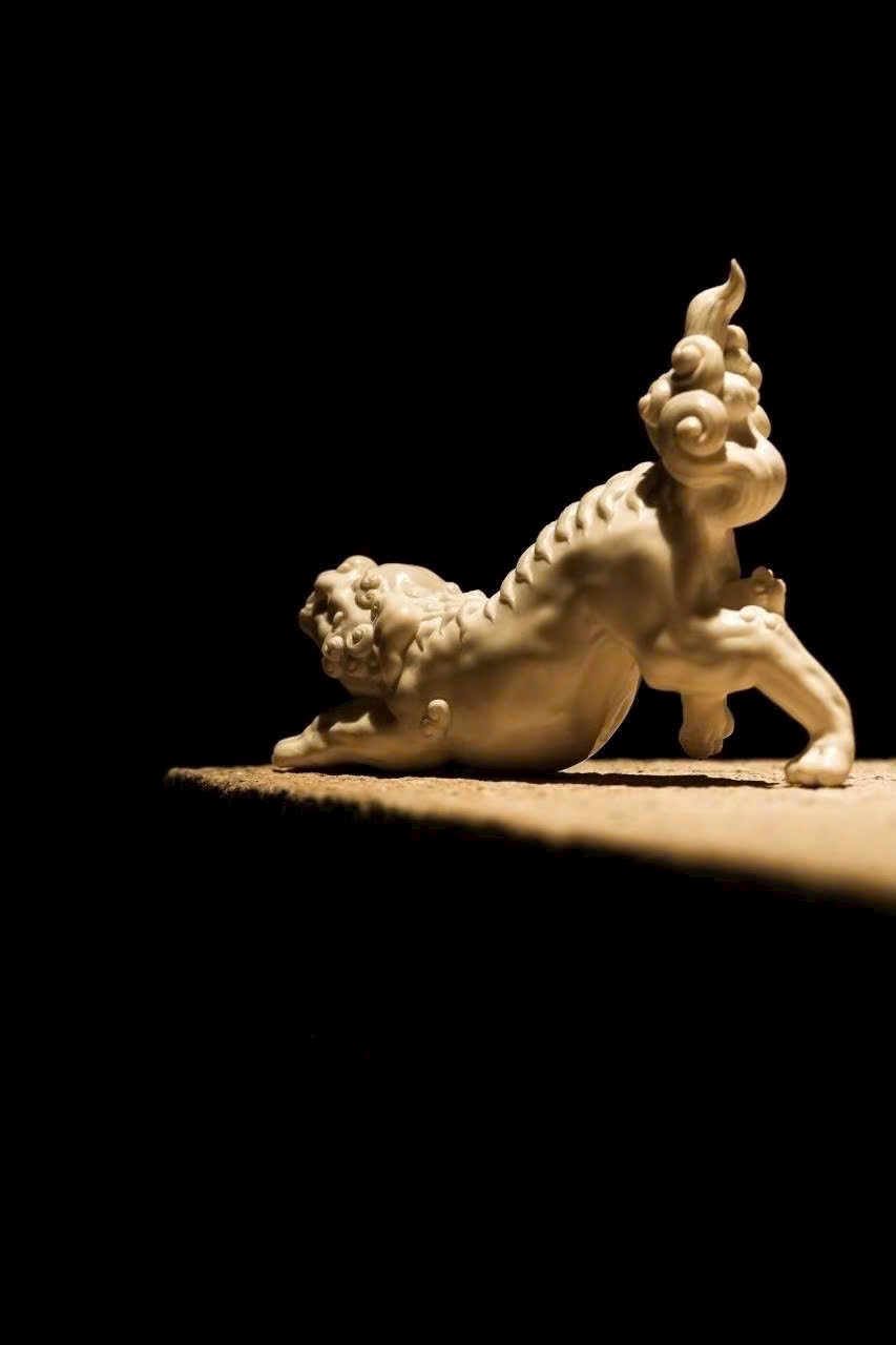 Tác phẩm chất liệu lớn, điêu khắc theo phong cách Tương công tinh tế. Tư thế sư tử nằm chơi bóng uyển chuyển sống động, thần thái hiền hòa đáng yêu. Lửa linh vờn quanh chân gối, đường dao sắc sảo, hình – thần – chất đều đạt. Gạc hươu đặc ruột, độ mịn cao – thích hợp trưng bày lẫn sưu tầm.