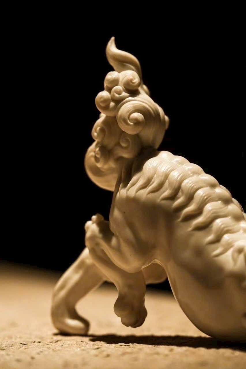 Tác phẩm từ phôi lớn, chế tác thủ công tinh xảo, đường nét uyển chuyển, vừa có thần vừa có hình. Tư thế nằm phủ phục đùa cầu, dáng vẻ hiền hòa ngộ nghĩnh. Lửa quanh chân gối, sáng bóng như ngọc bích, dao pháp lão luyện. Tác phẩm hội đủ cả công lẫn phẩm, chất liệu dày đặc cao cấp, thích hợp cho cả sưu tầm lẫn thưởng ngoạn.