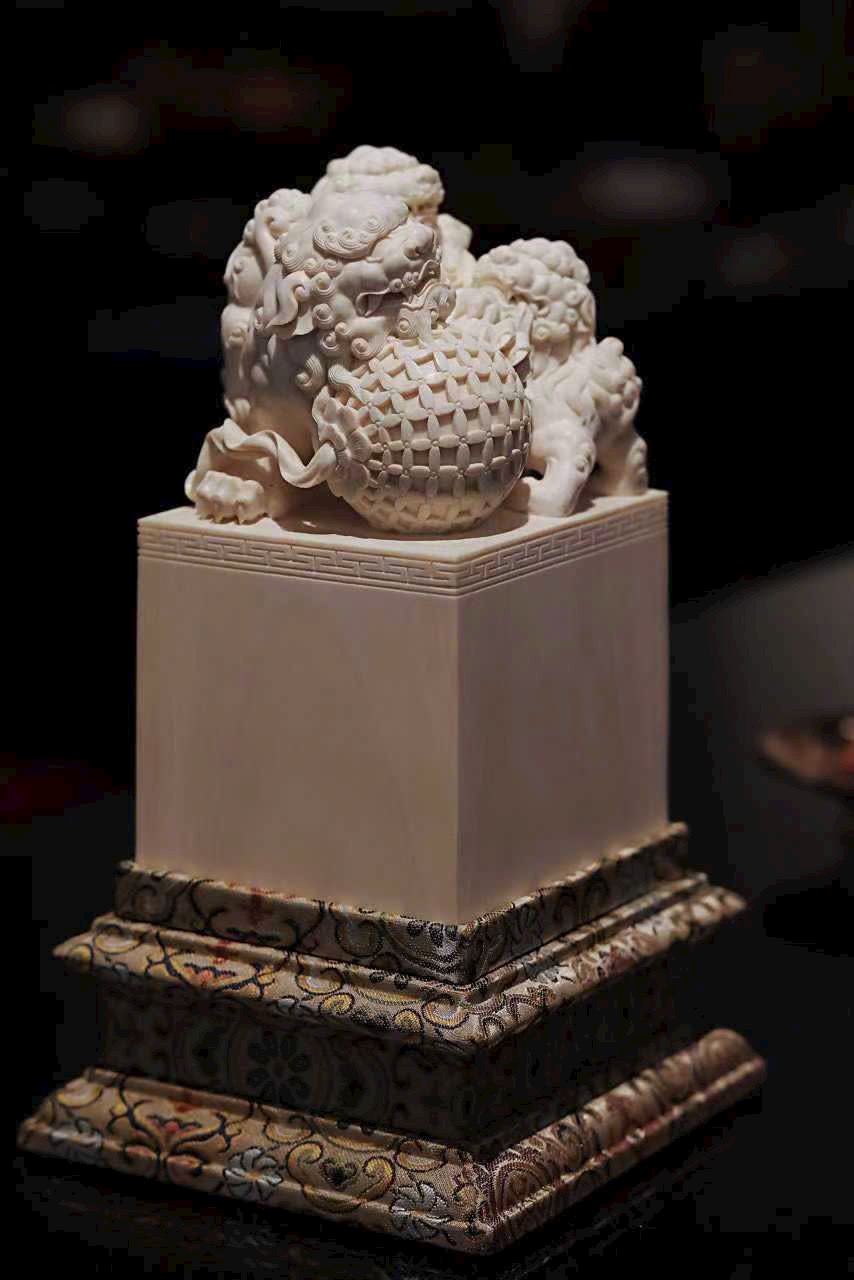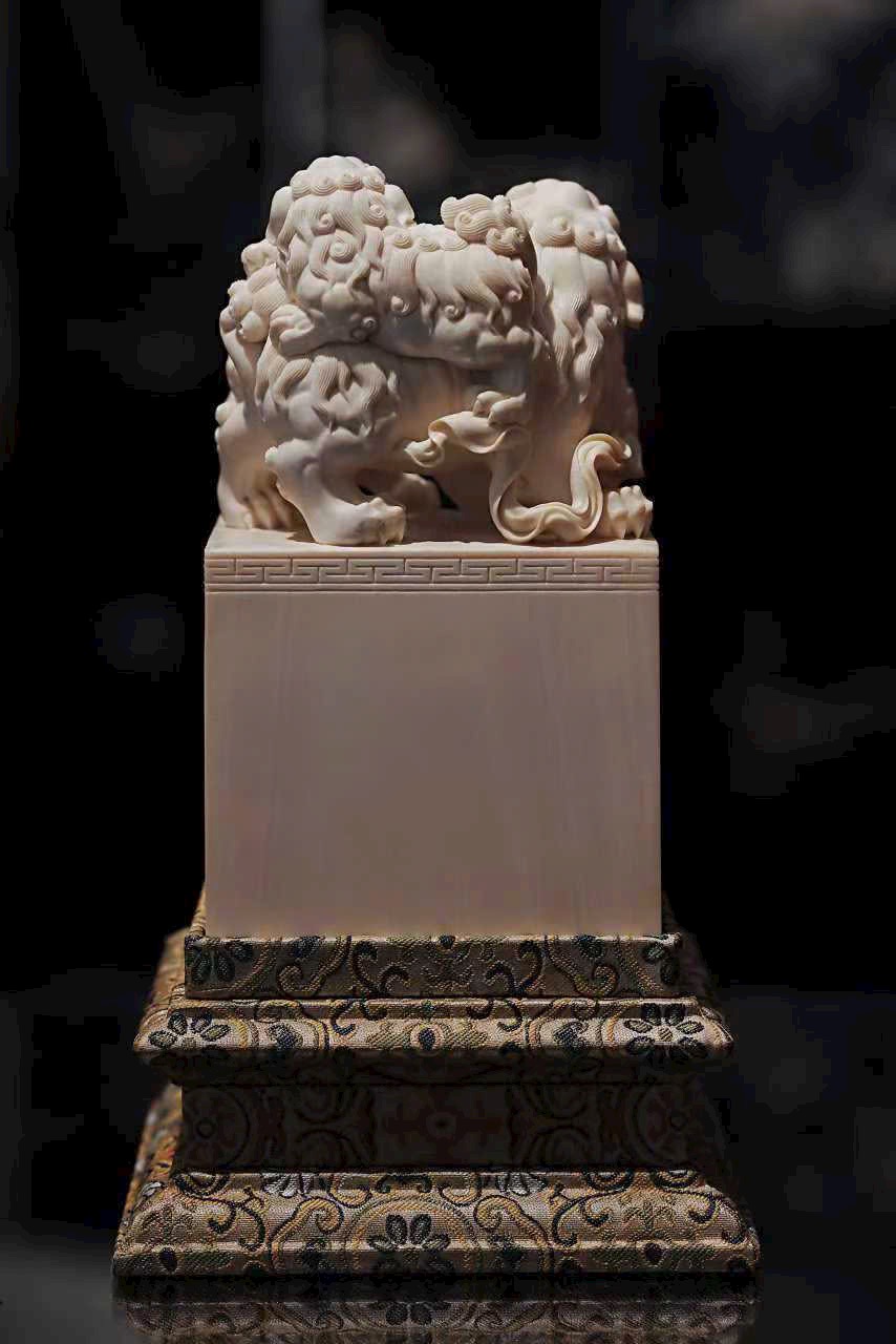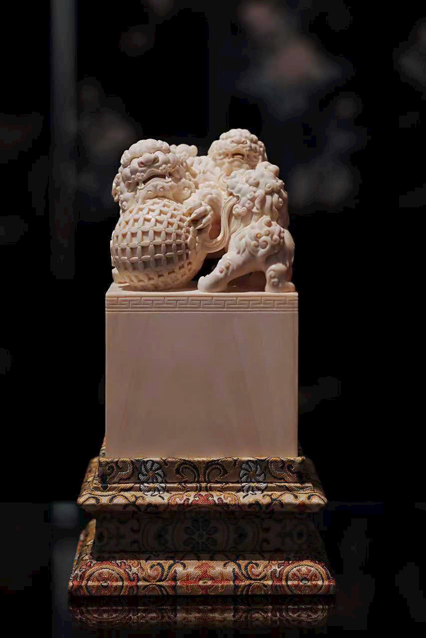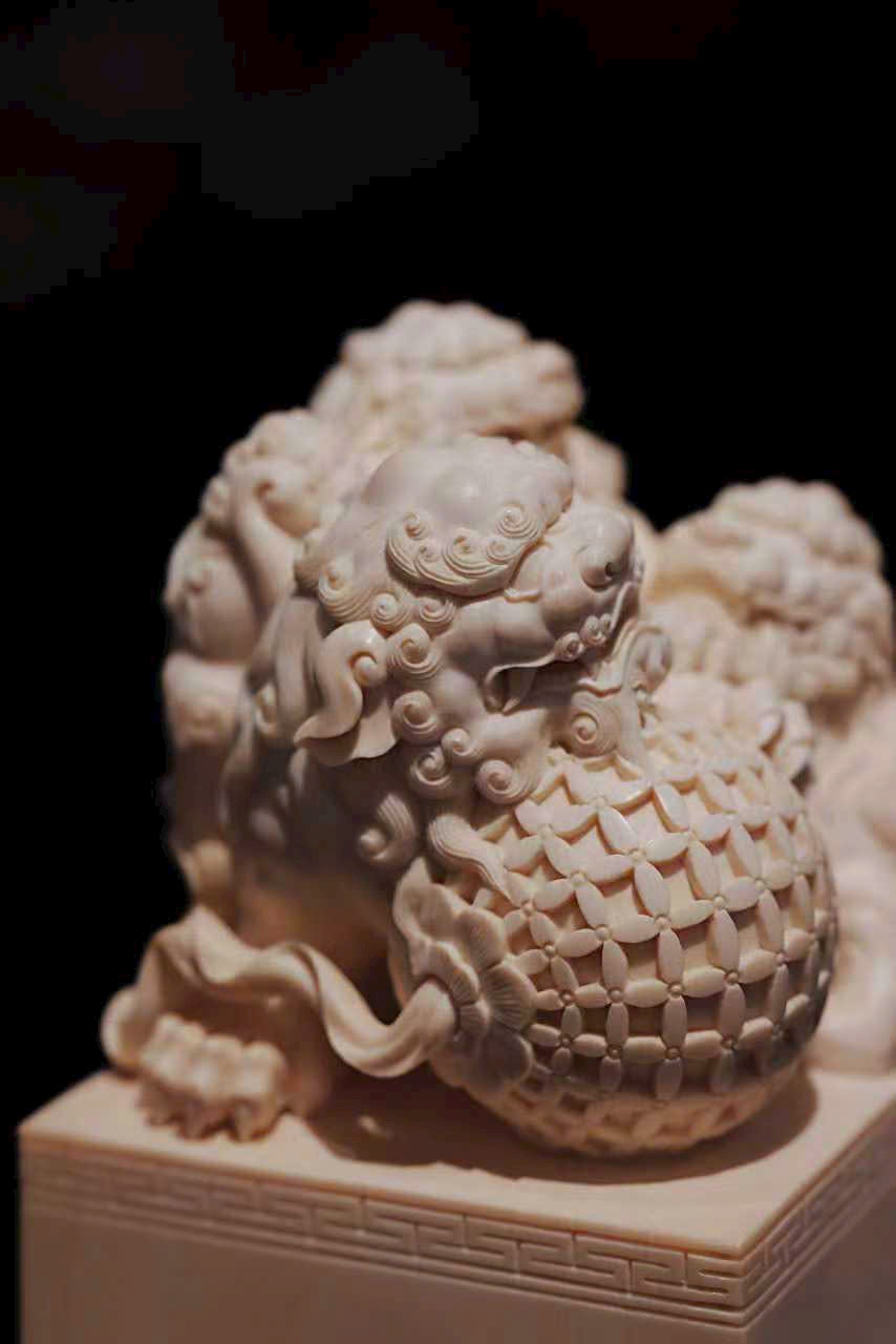 Tác phẩm được tạo hình từ một khối mamut nguyên, chạm khắc theo thế liệu, đường đao tròn trịa, chặt chẽ. Linh sư hiện ra sống động, bộ râu và lông tơ được khắc tỉ mỉ, thần thái uy mãnh mà linh hoạt, toát lên khí thế cát tường.