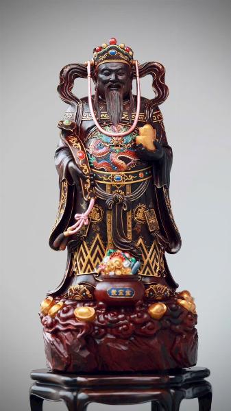“Thượng phẩm thờ phụng, cát vận thường theo.” Tác phẩm chọn gỗ tiểu diệp tử đàn rừng già Ấn Độ, do danh gia thủ công chạm khắc thanh đao toàn phẩm. Hình tượng Tài Thần Tiên Quan với quan bào mão ngọc, nguyên bảo như ý, khắc chạm tinh vi đến từng chi tiết. Khuôn diện hiền hòa hoan hỉ, tượng trưng phúc trạch viên mãn. Ý nghĩa chiêu tài tiến bảo, hộ trì bình an, thích hợp trưng thờ hay sưu tầm, là phẩm hạng thượng cát để truyền thừa.
