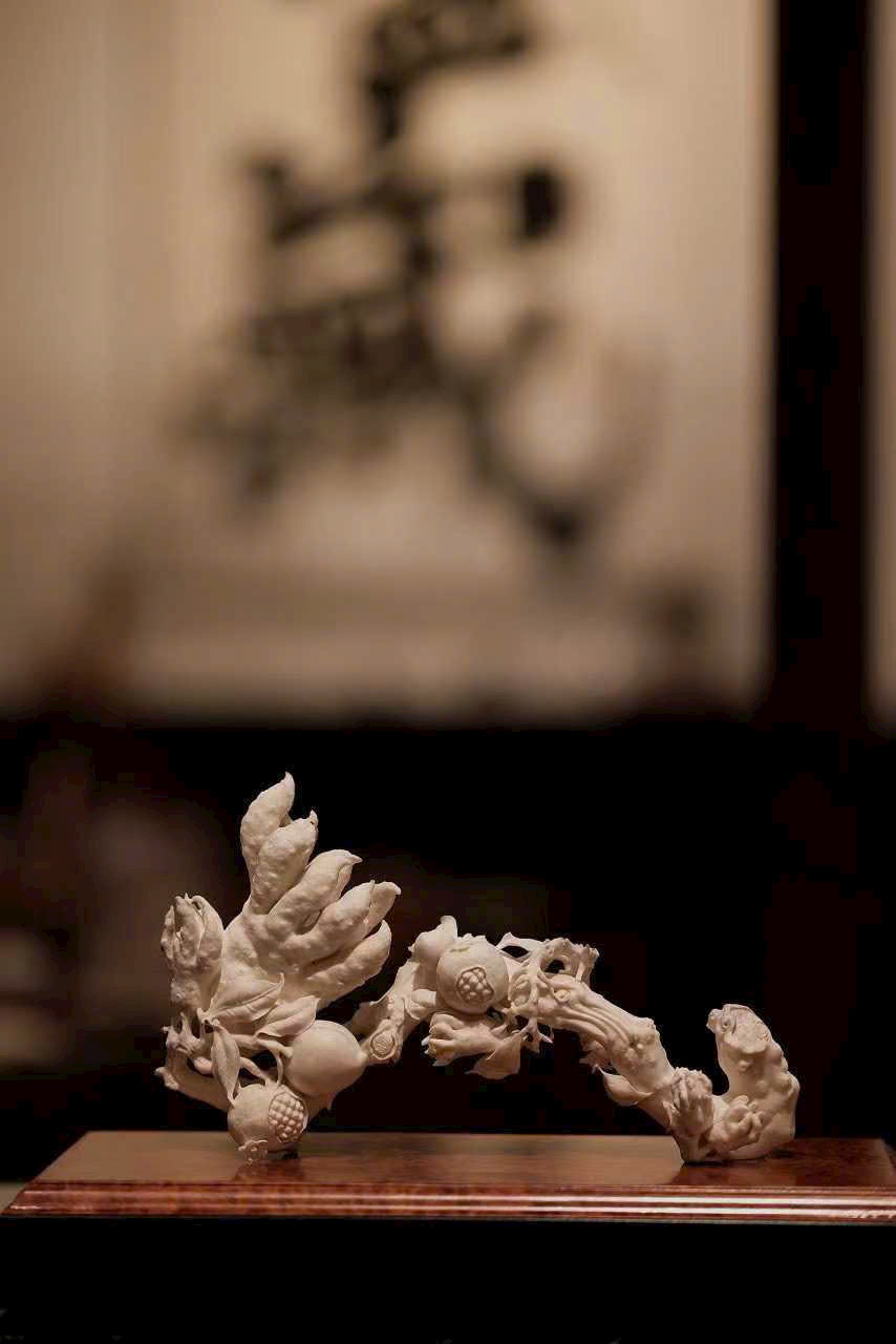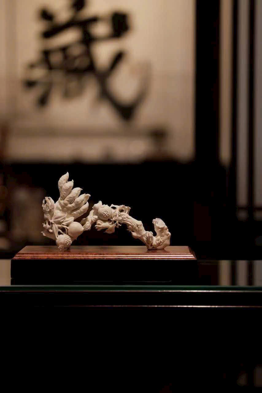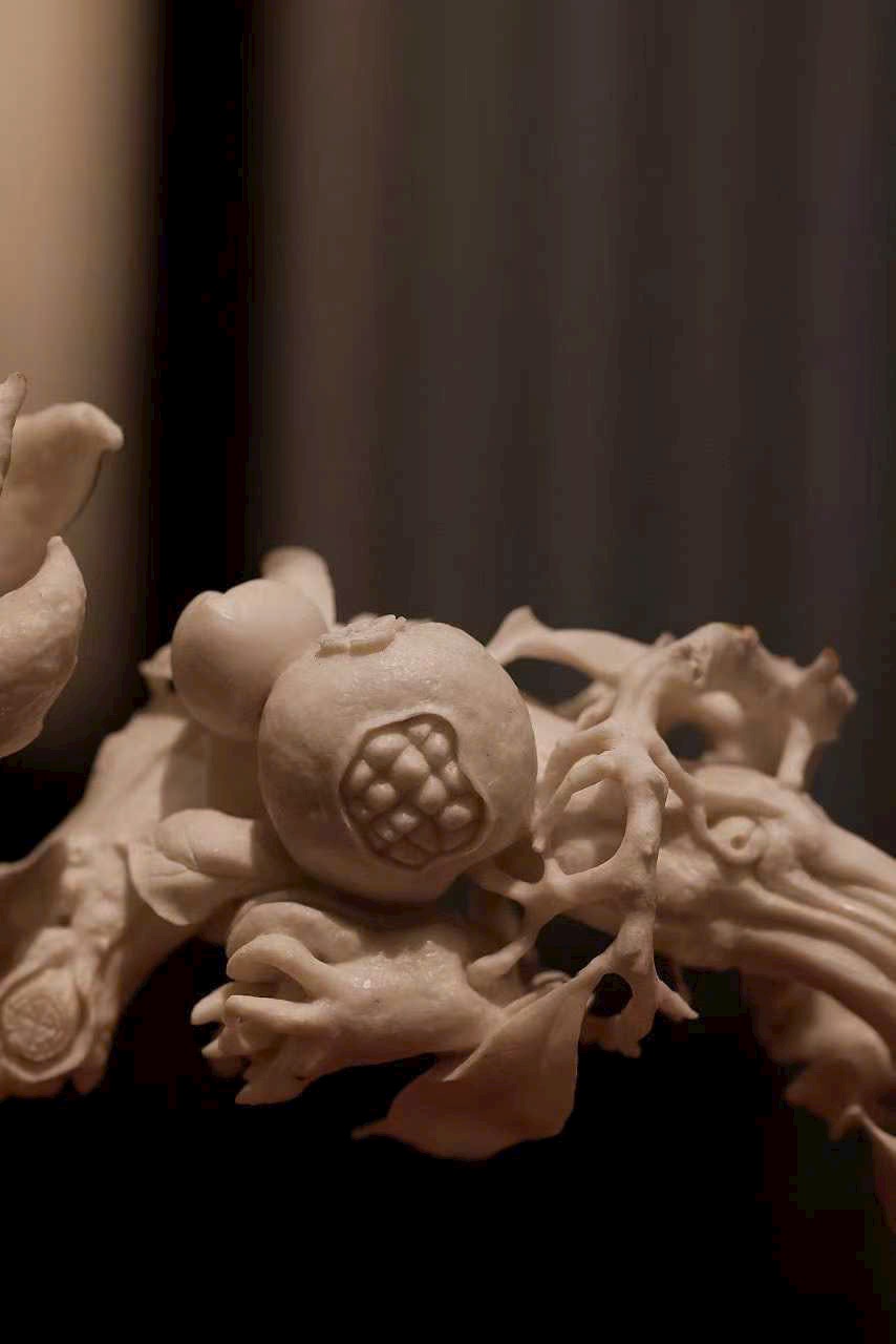 Hoa văn chạm khắc linh hoạt, có thần, cát ý thấm vào từng thớ chất liệu.