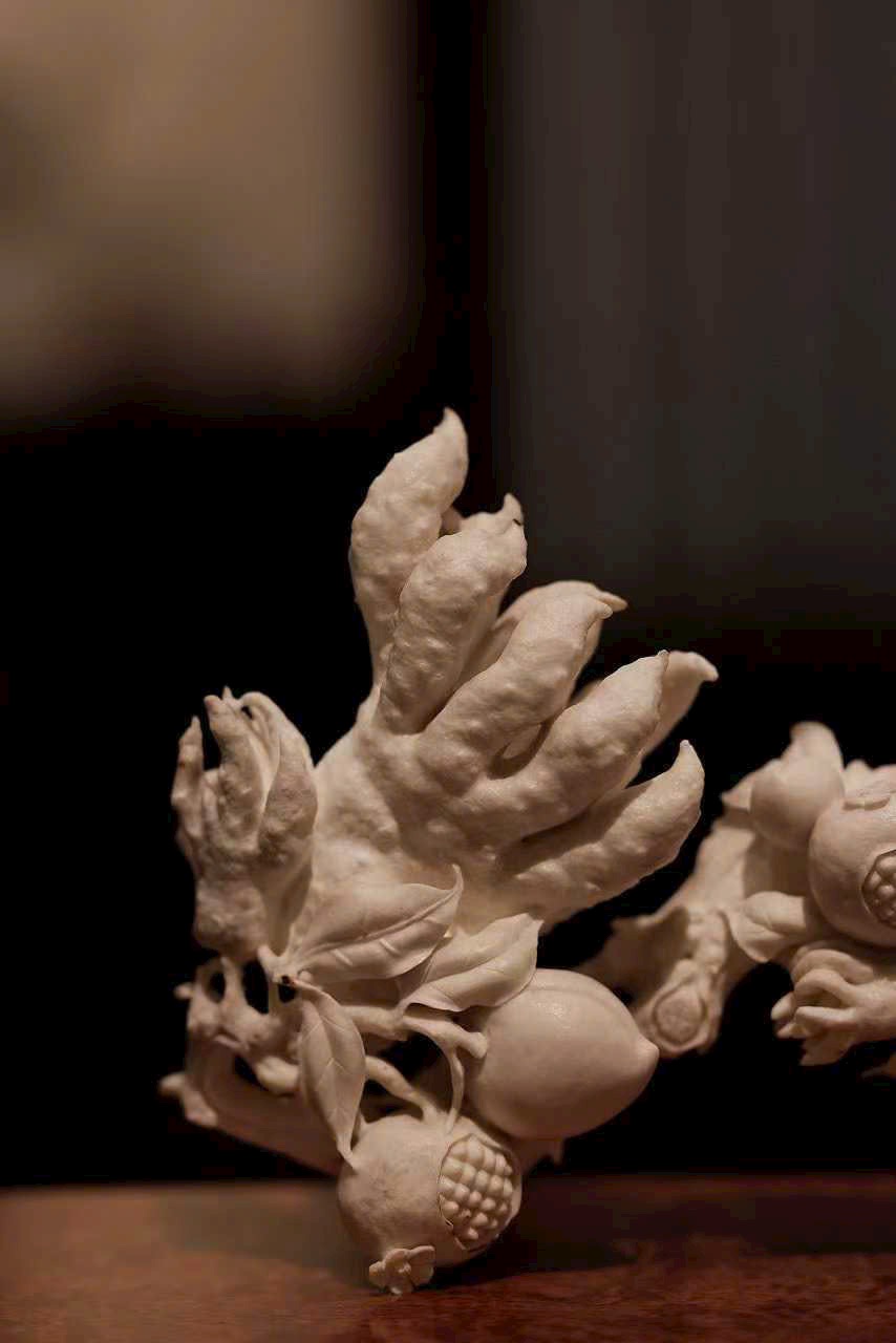 Phật thủ tụ phúc, đào thọ nạp thọ, lựu hàm ý đa tử.