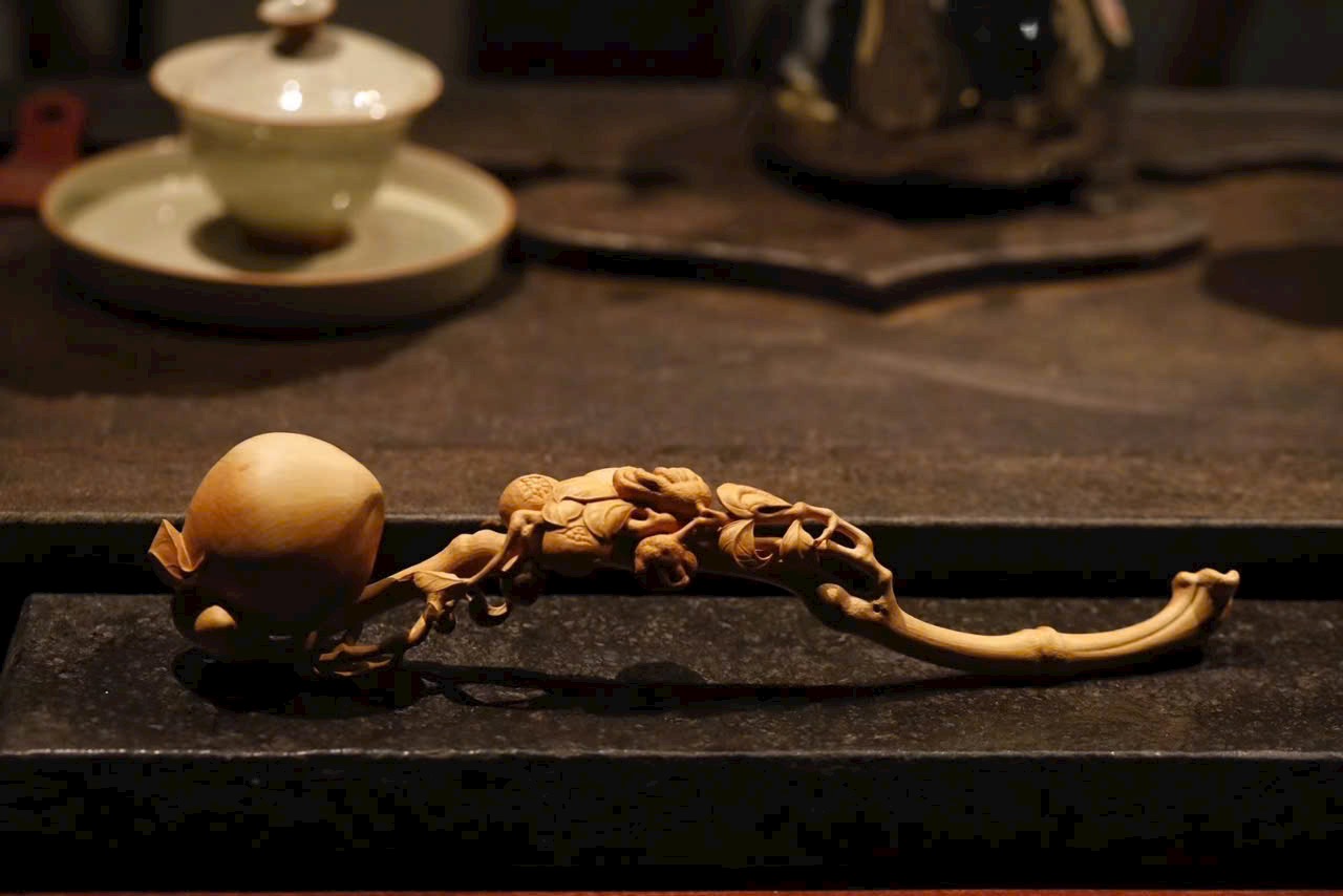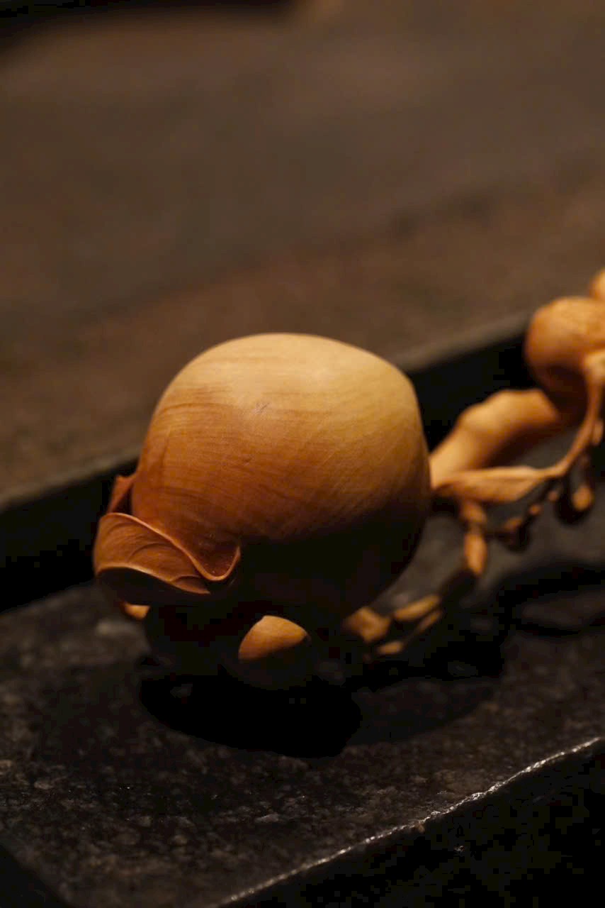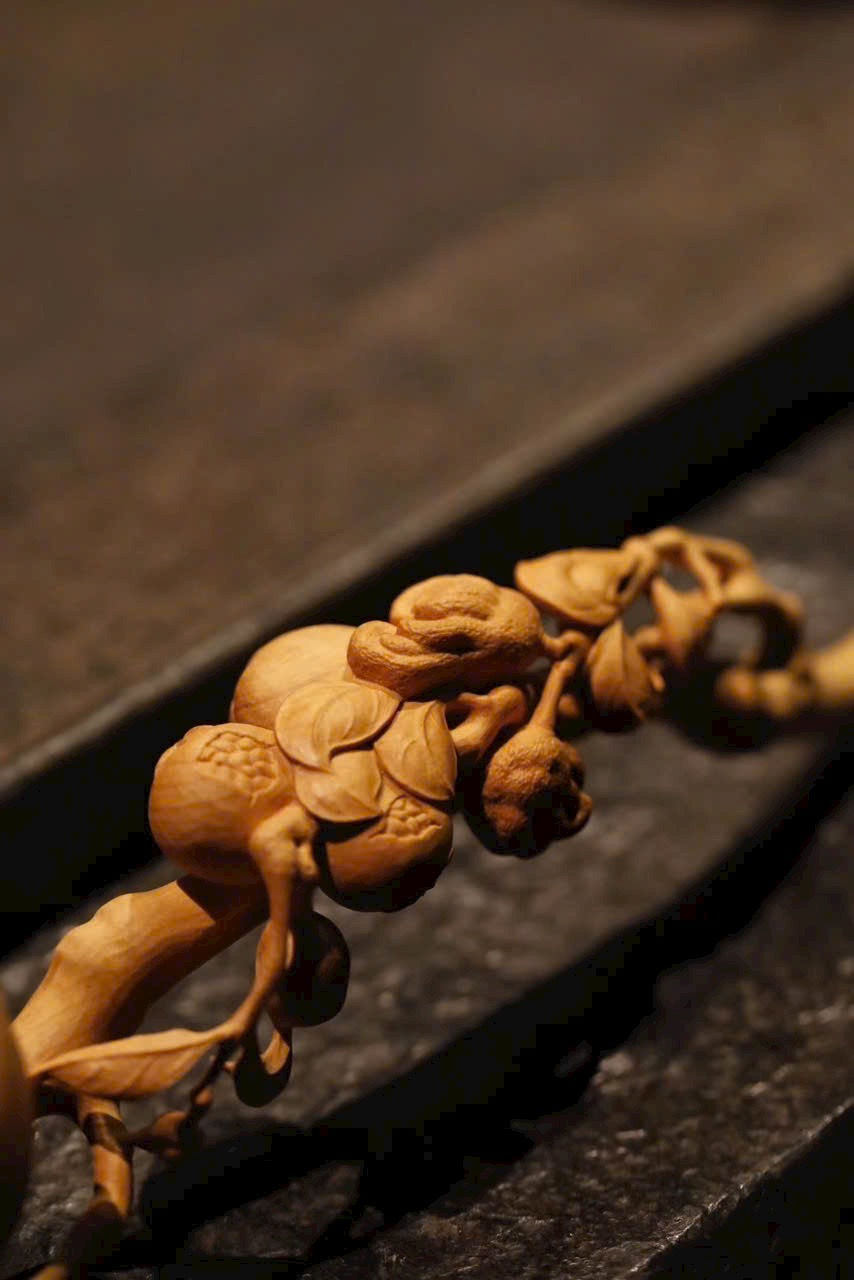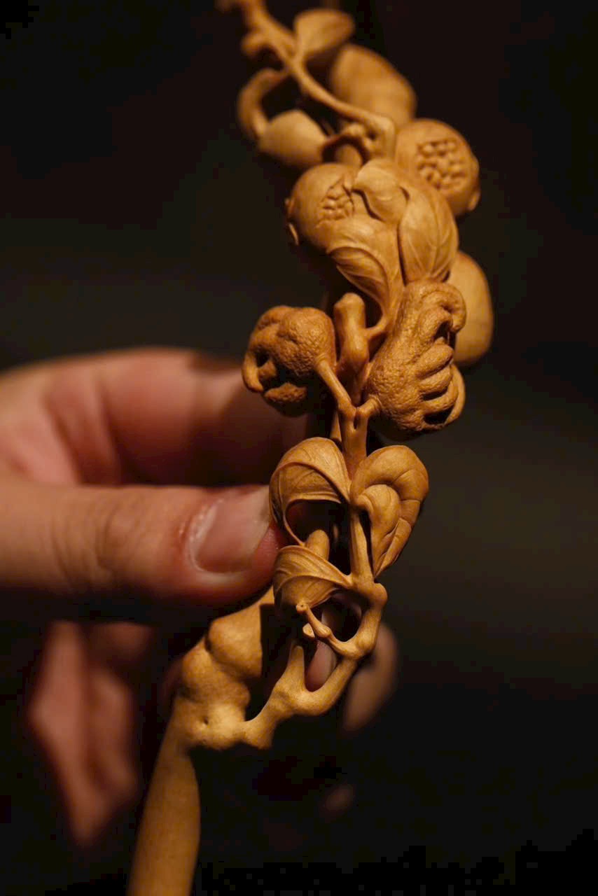 Tác phẩm điêu khắc từ chất liệu sạch mịn, tạo hình chi tiết theo thế cành: phật thủ tượng trưng cho phúc, đào tiên biểu trưng trường thọ, và lựu mang ý nghĩa con cháu đông đúc. Ba biểu tượng kết hợp thành “Phúc Thọ Tam Đa”, mang đậm khí chất thanh nhã và cát tường.