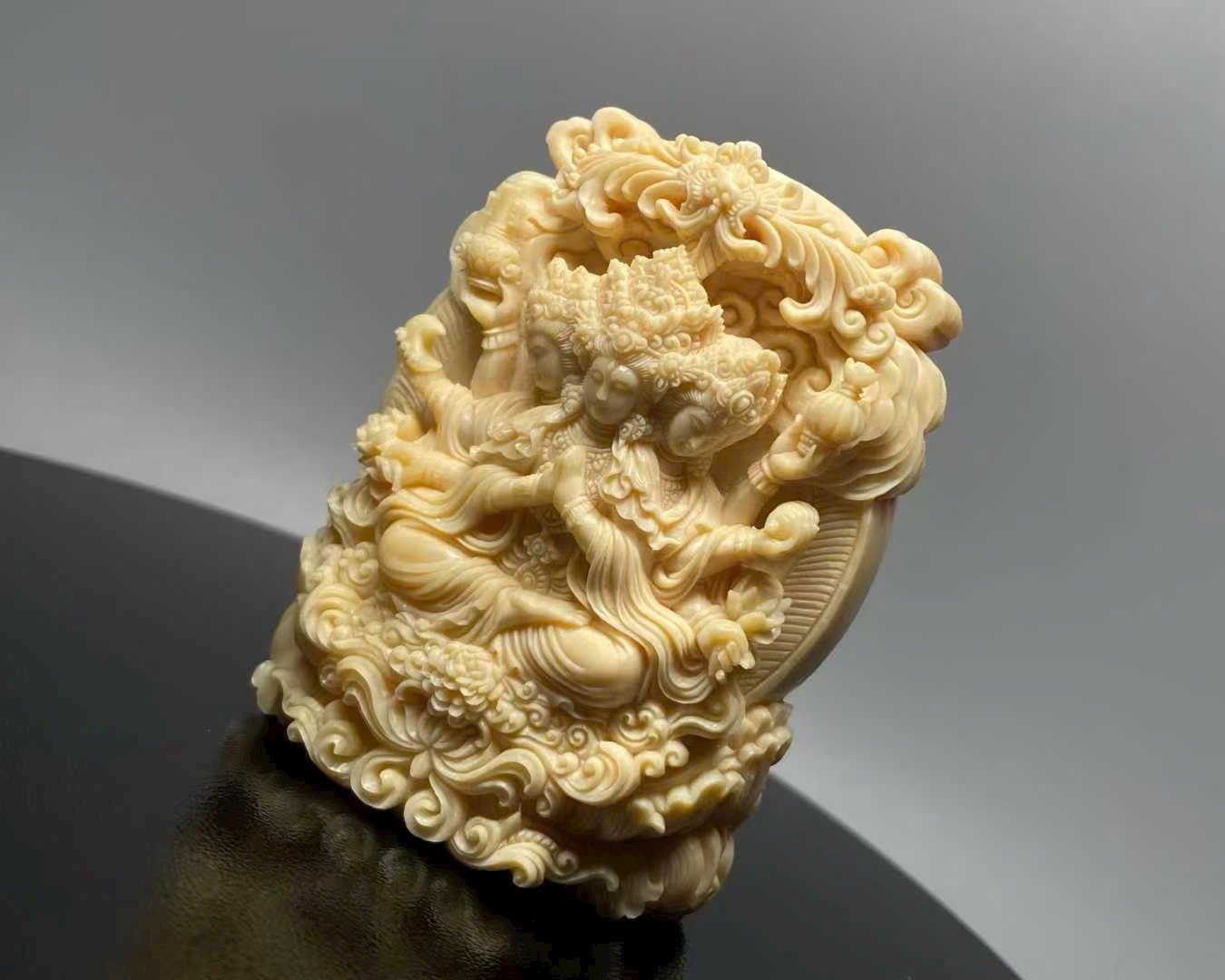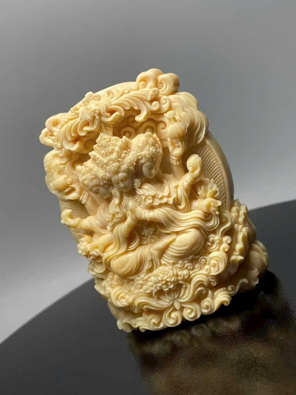 Ba diện của Quan Âm Bồ Tát tượng trưng cho sự viên mãn trong tu hành, trí huệ Phật sâu rộng vô biên, dẫn dắt muôn loài hữu tình đoạn trừ trần tục, thoát khỏi luân hồi, bước vào cảnh giới chư Phật.