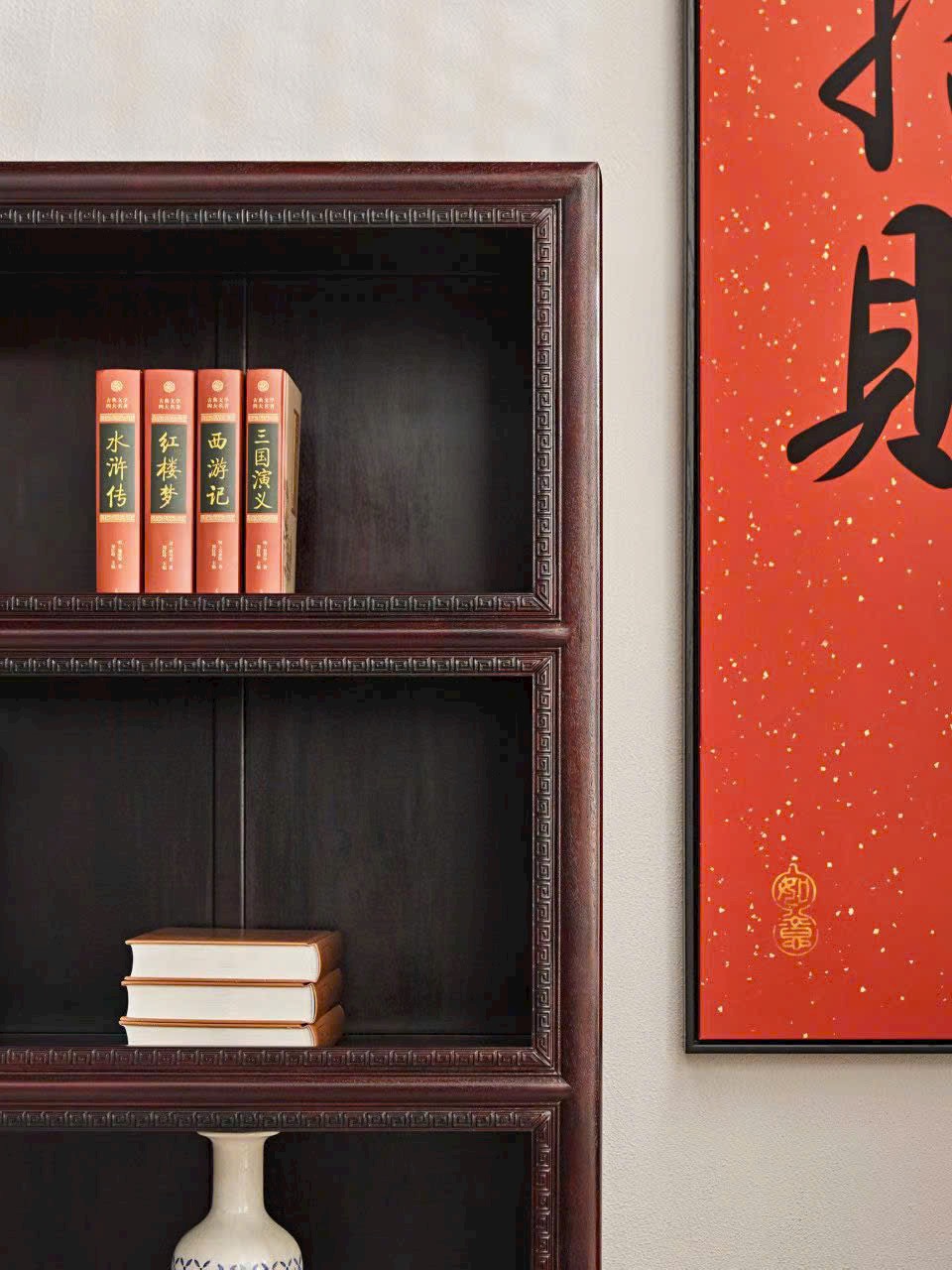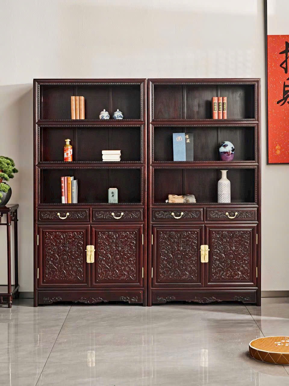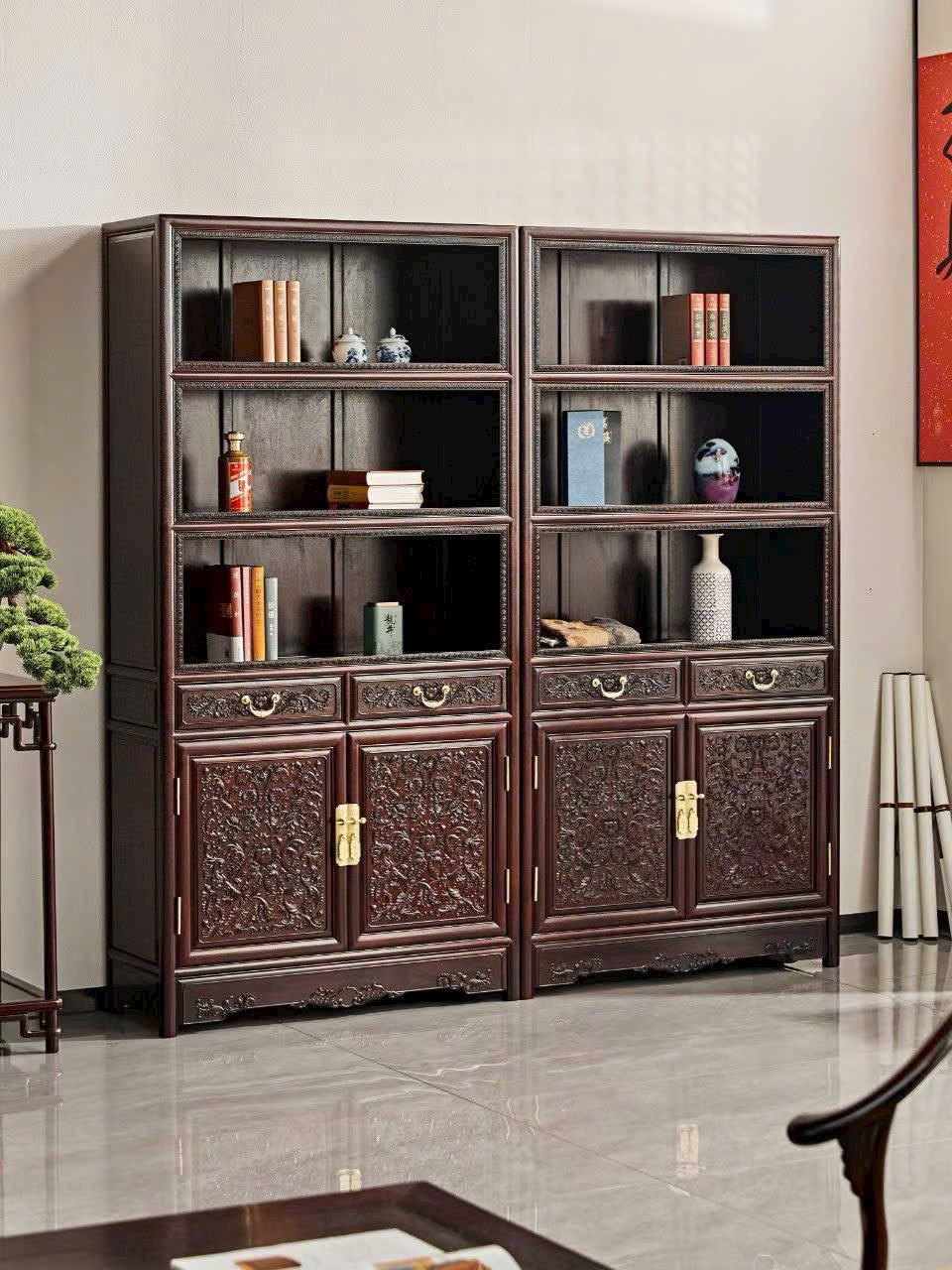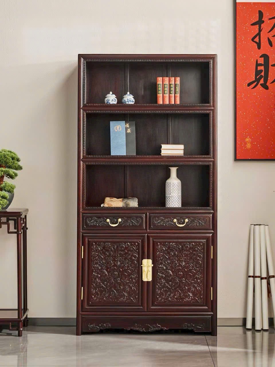 Tổng thể thanh nhã mà sang trọng, phù hợp phòng sách, phòng làm việc hoặc không gian trưng bày phong cách Á Đông cổ điển.