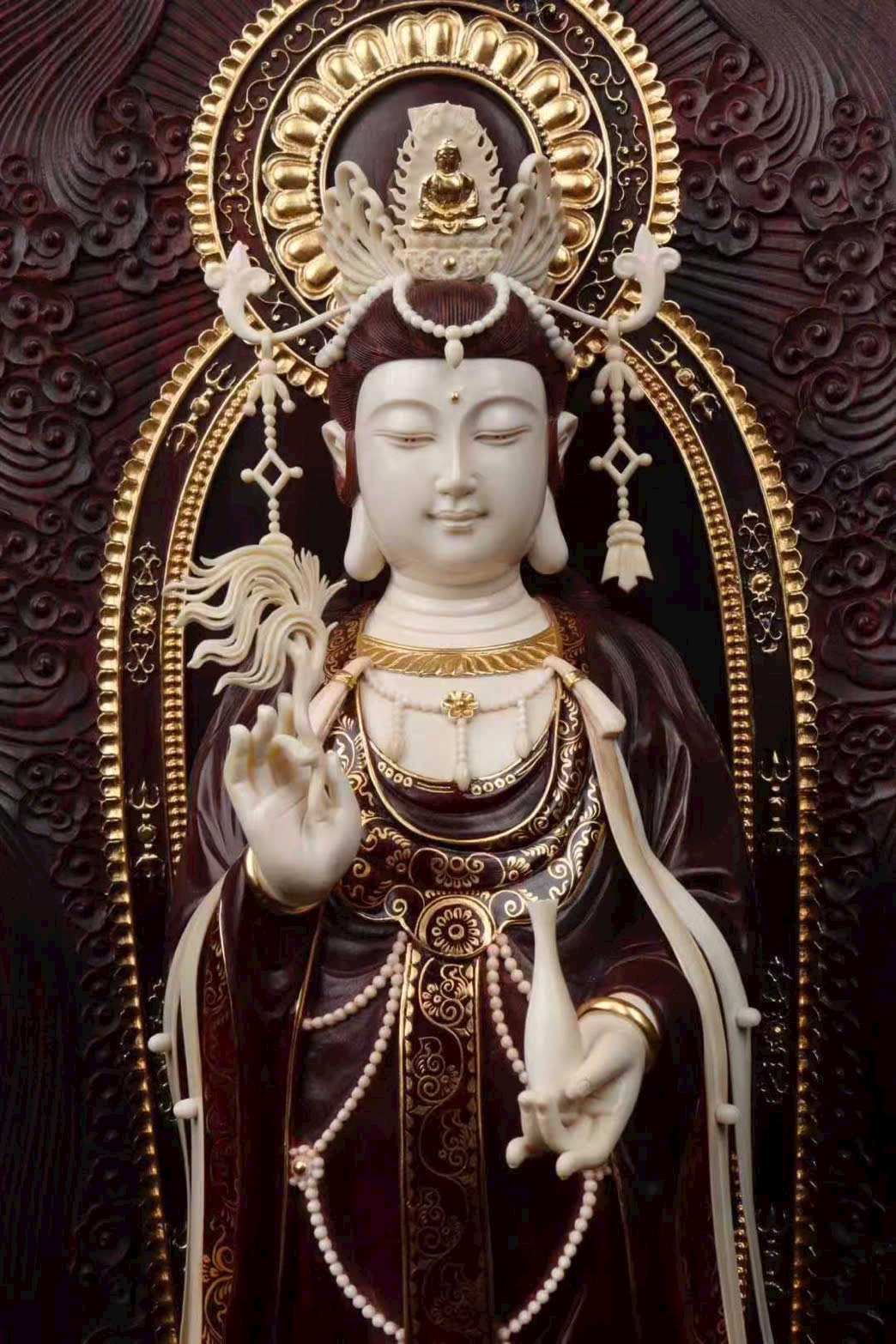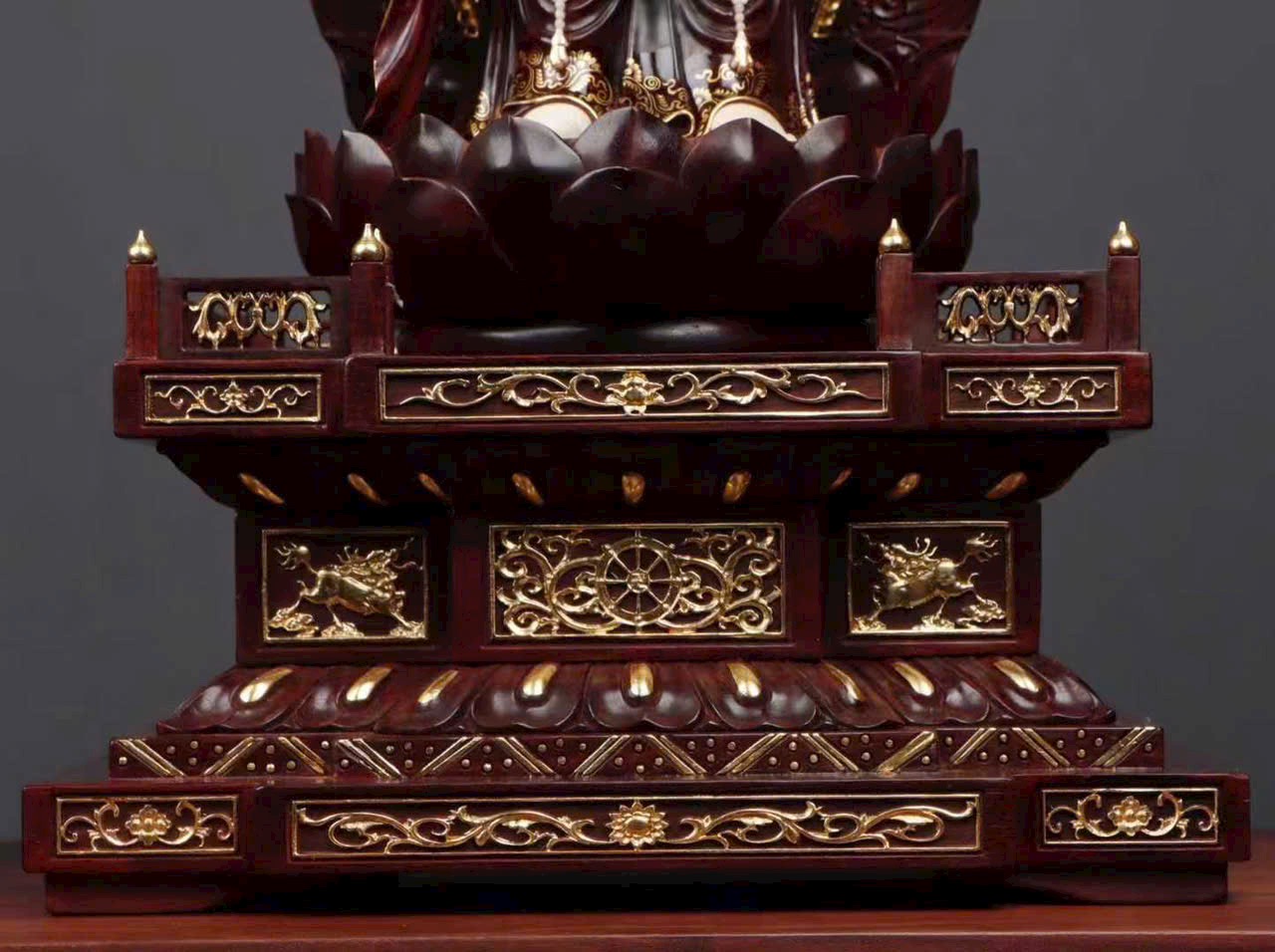 Quan Âm Bồ Tát: cao 73cm, đế 26cm, thân chính cao 41cm