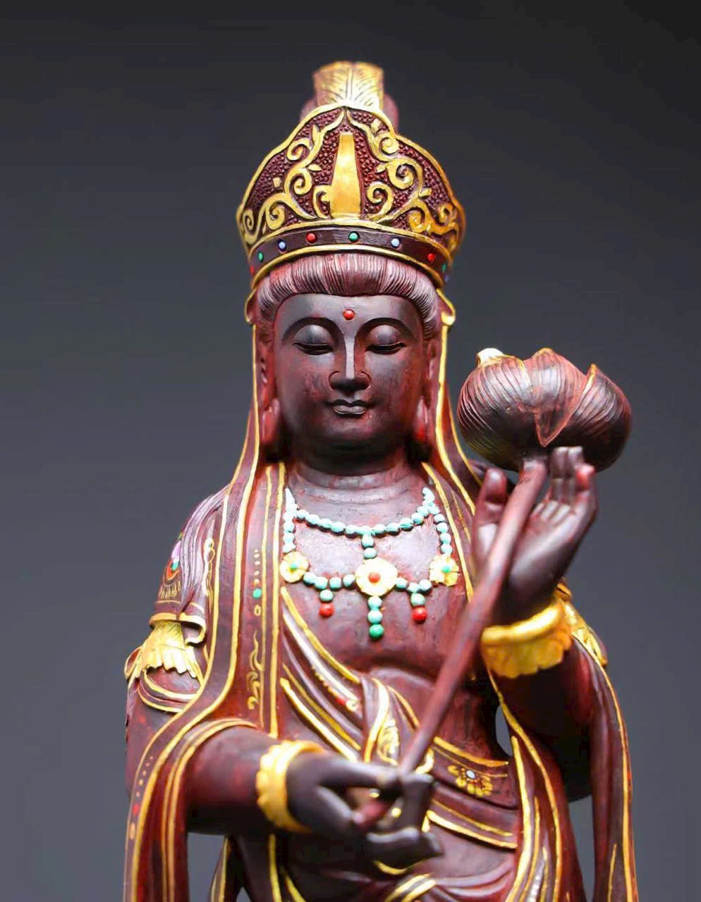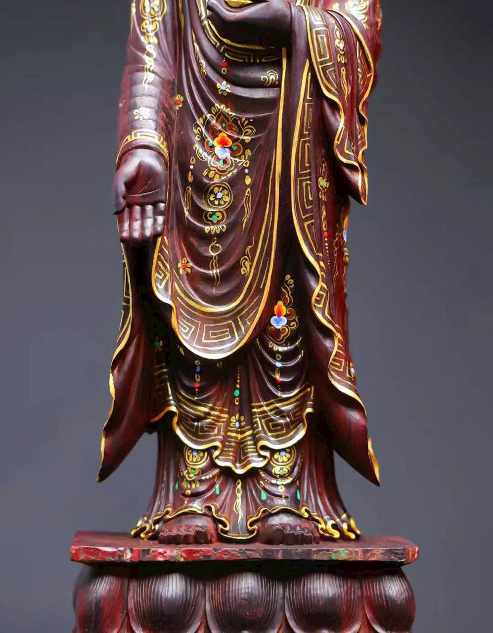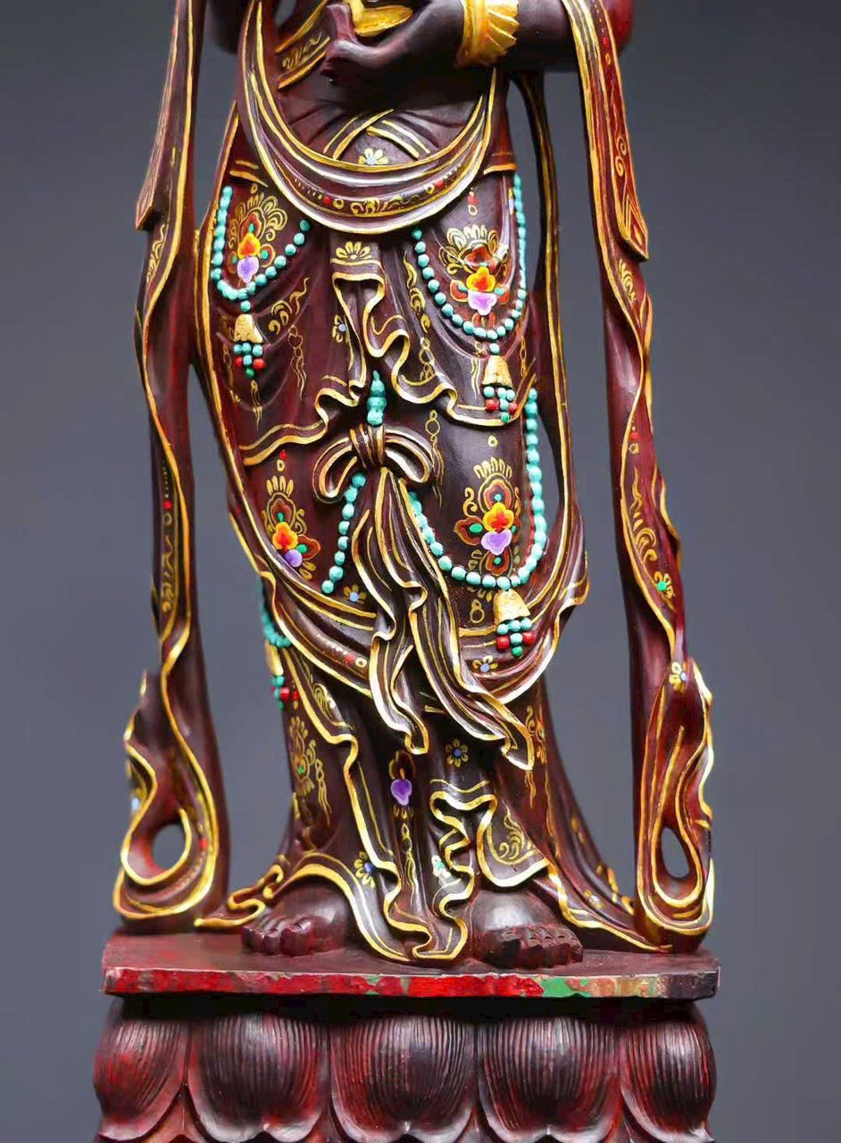 Chất liệu: Tử đàn Ấn Độ lá nhỏ, vẽ màu và thếp vàng thủ công.