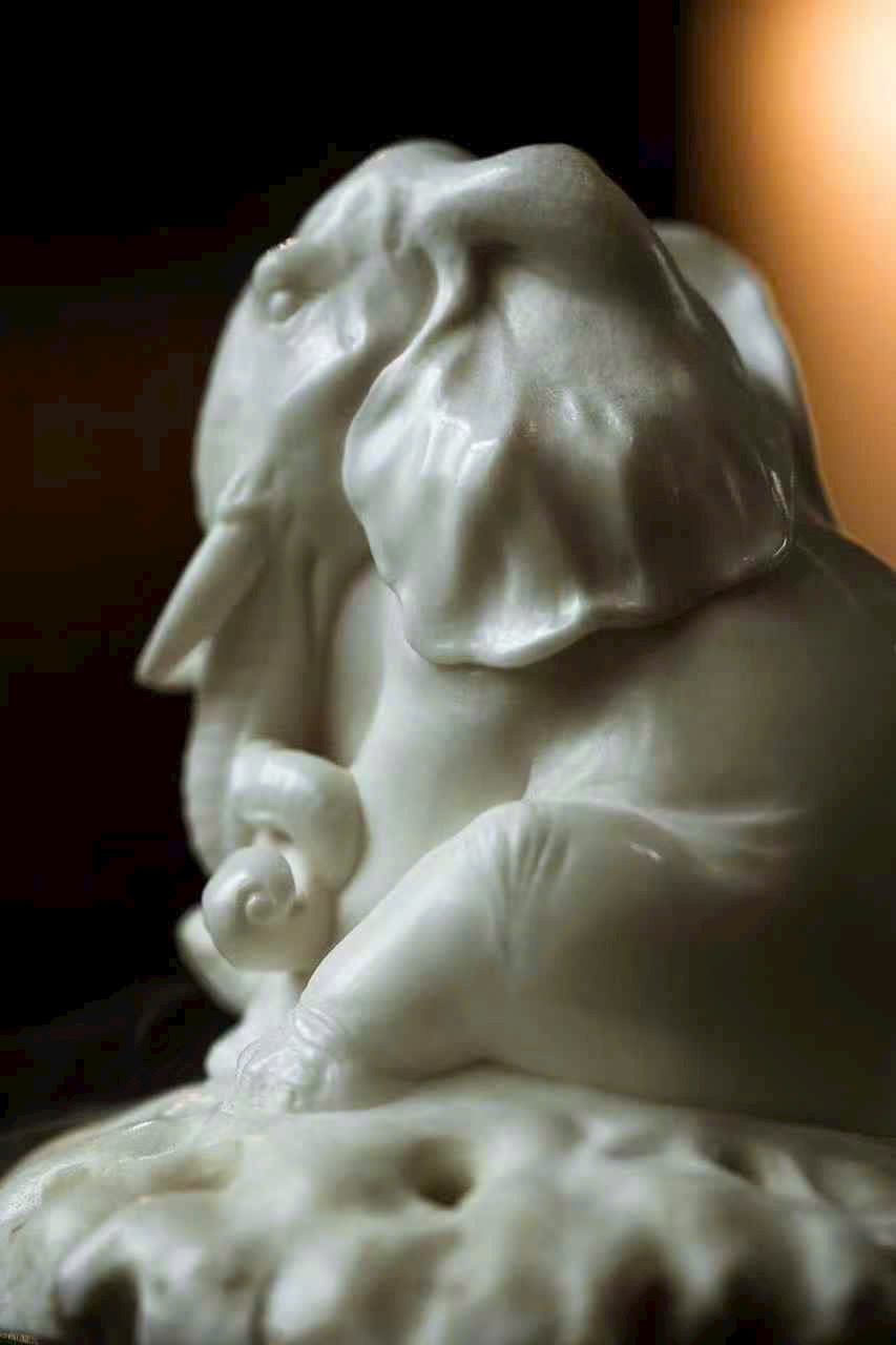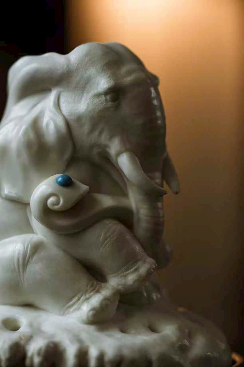 Hình tượng voi mang ý nghĩa trí tuệ, chiêu tài, trừ chướng ngại. Chạm khắc chân thực, voi ngẩng vòi lên trời, dáng hiền hòa, thân vững chắc. Tượng thần thái đầy đủ, chế tác tinh xảo. Khi hương khói lan tỏa, phẩm vật trở nên đầy thi vị.