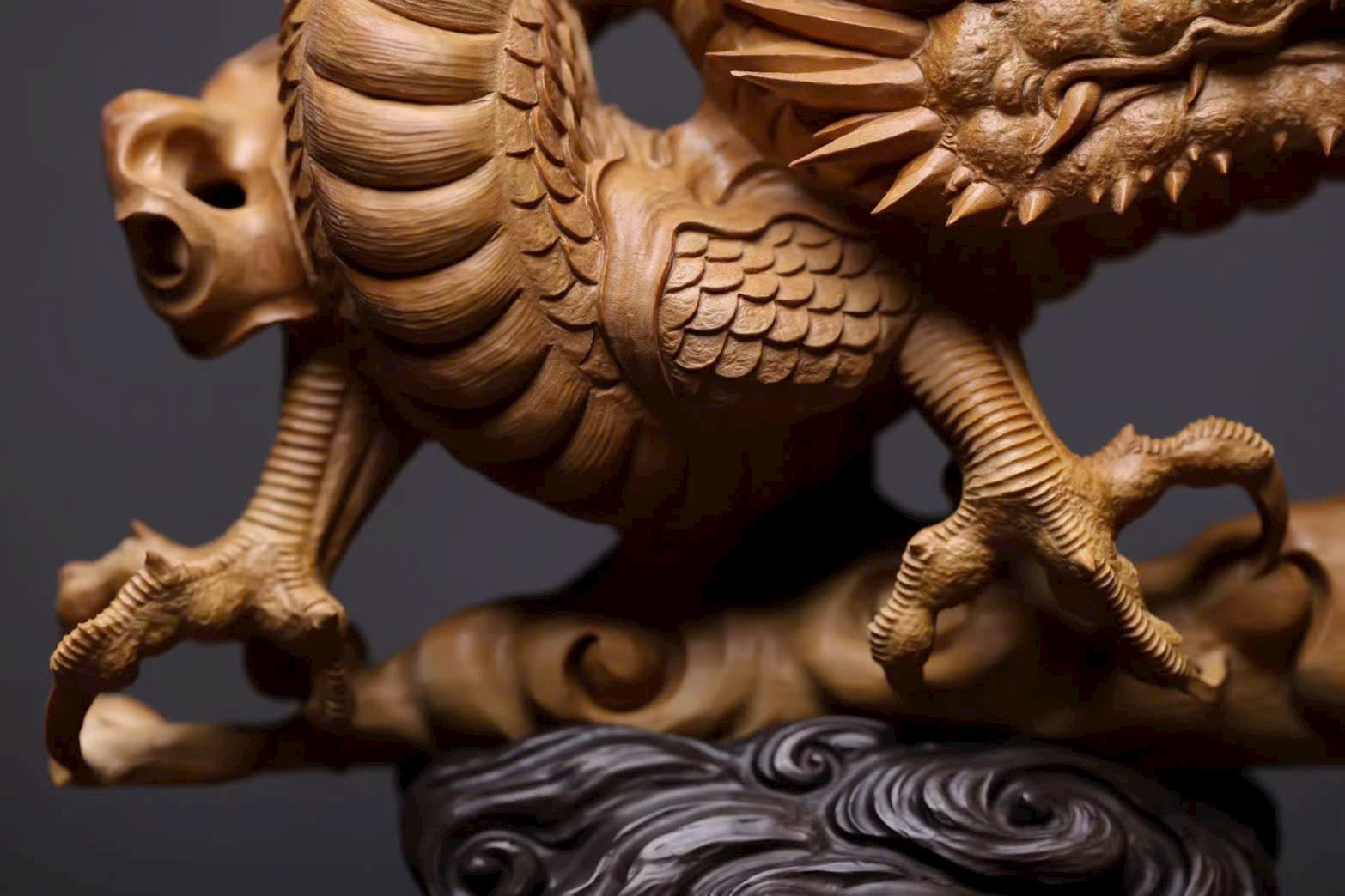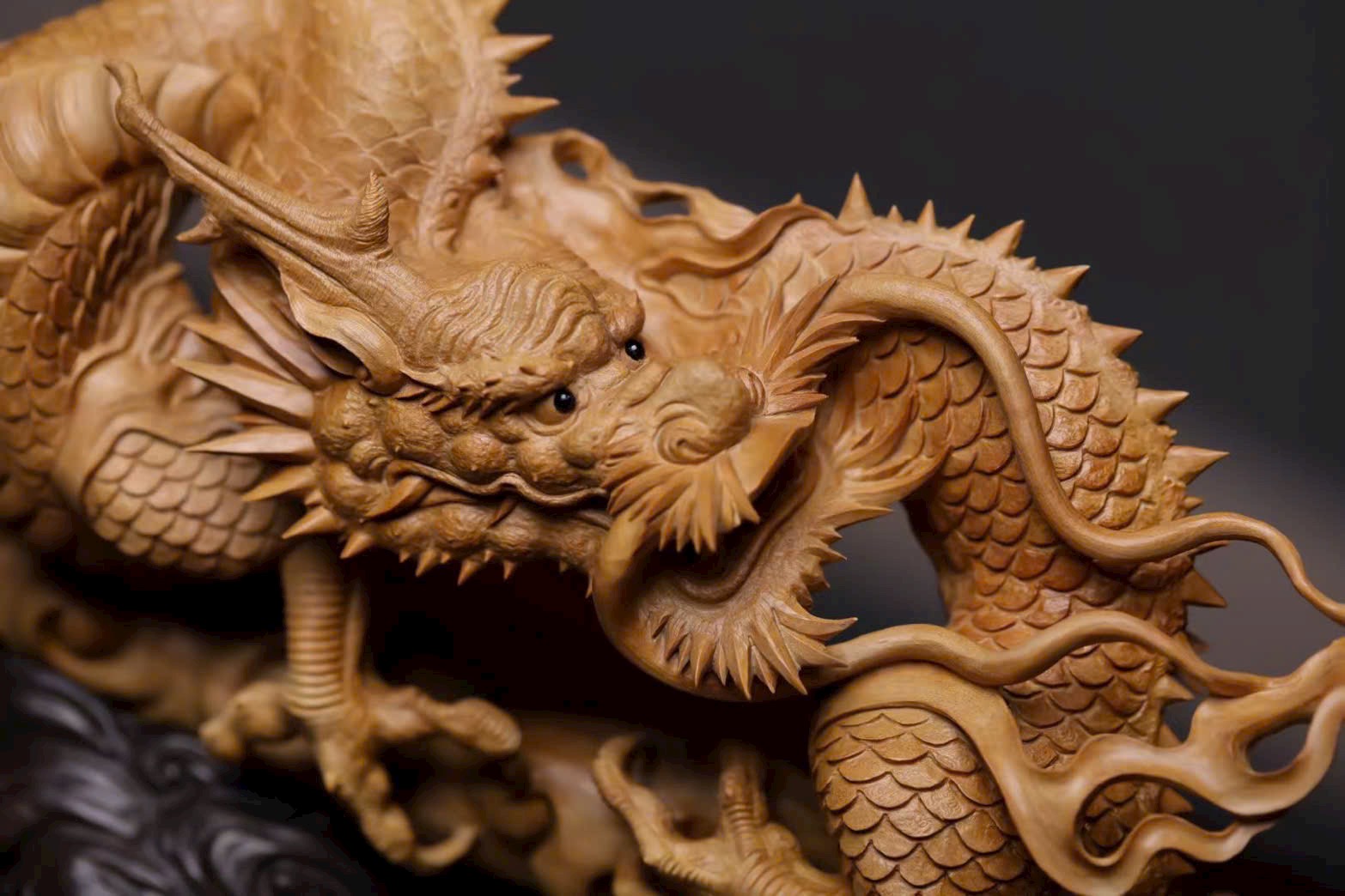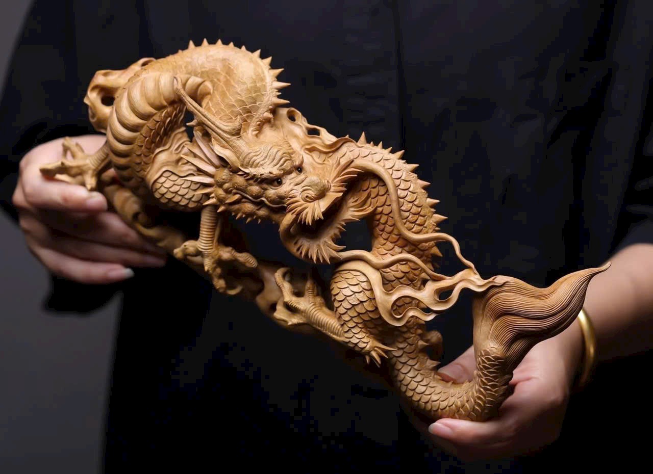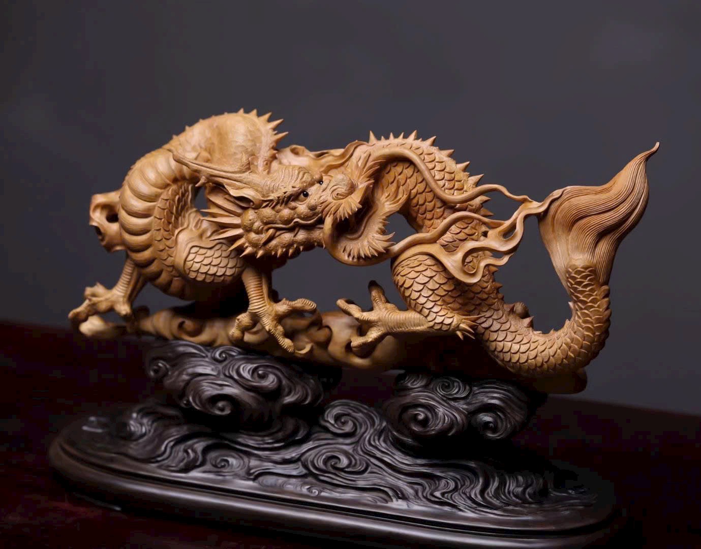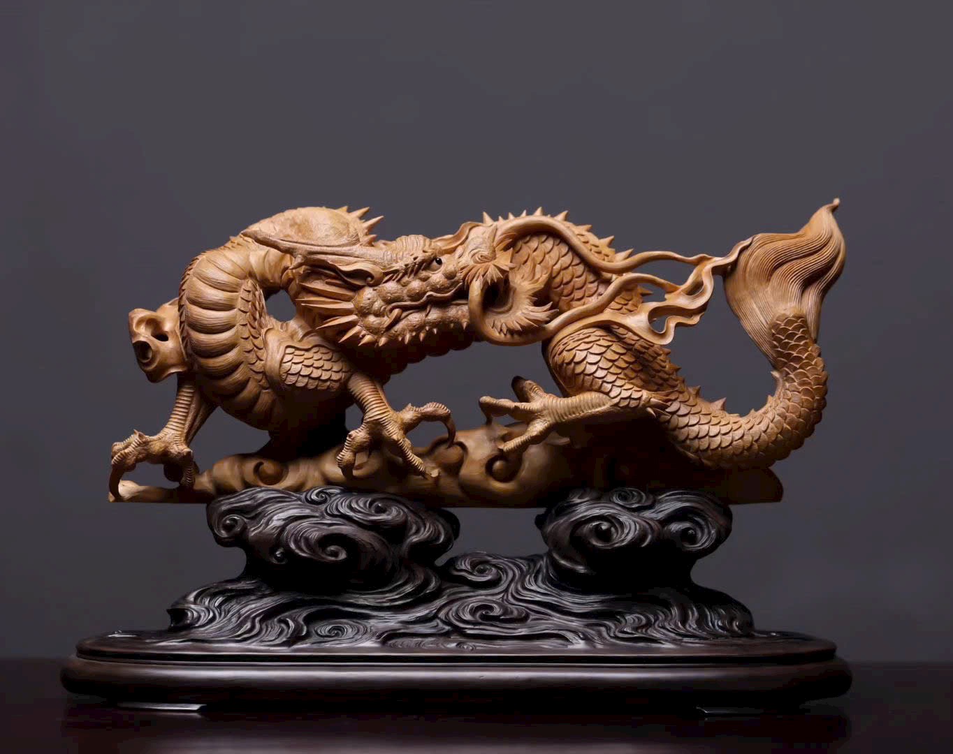 Trong văn hóa truyền thống, rồng là biểu tượng của cát tường, quyền uy và tôn quý. Thân rồng uốn lượn khỏe khoắn, vảy khảm dày đặc, râu rồng linh động, bay lượn giữa mây sóng trên đế, toát lên khí thế uy nghiêm của Thần Long Hoa Hạ, là sự hòa quyện tinh tế giữa nghệ thuật thủ công truyền thống và văn hóa cát tường.