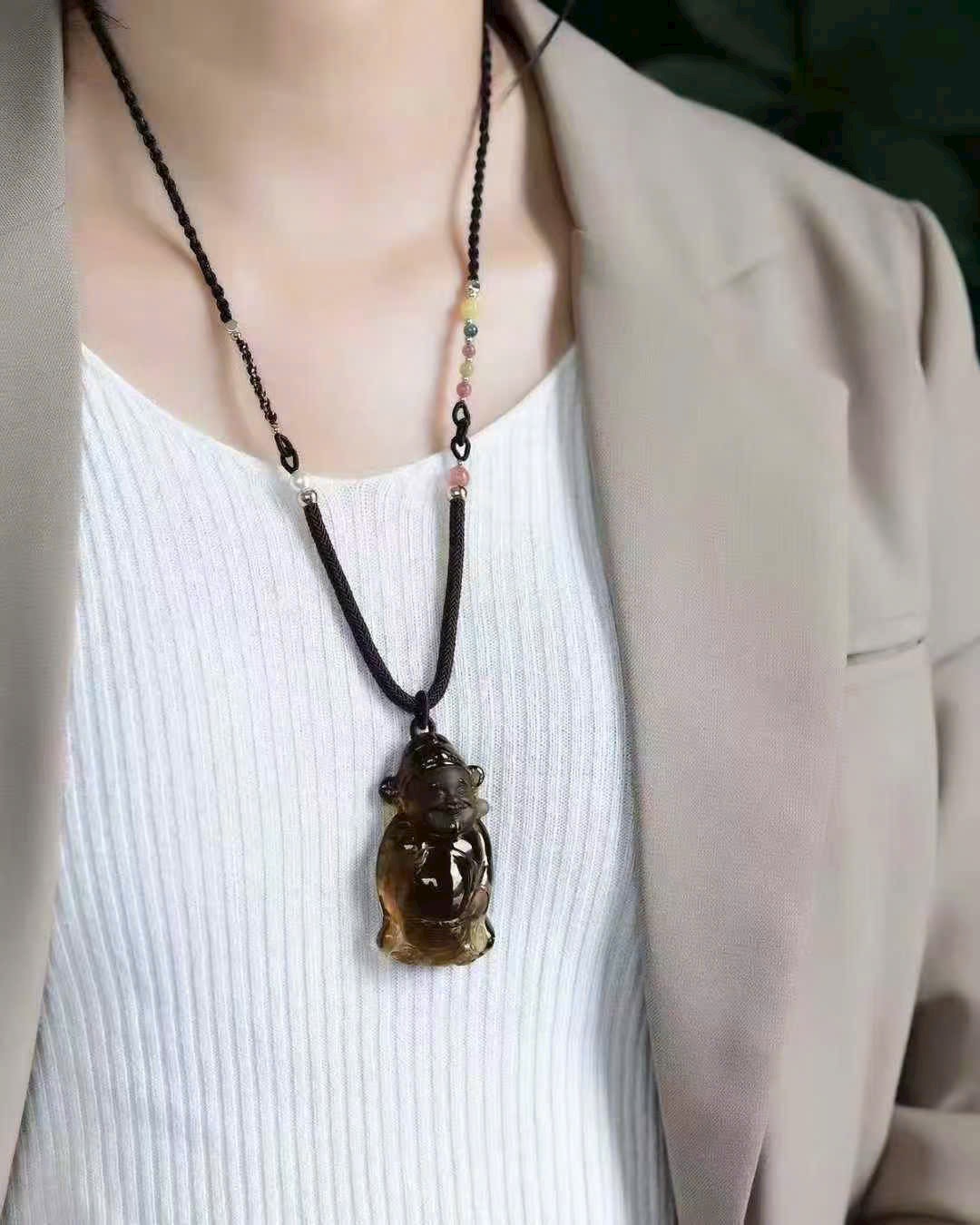 Mặt dây chuyền – Thạch anh trà vàng Brazil “Thần Tài”