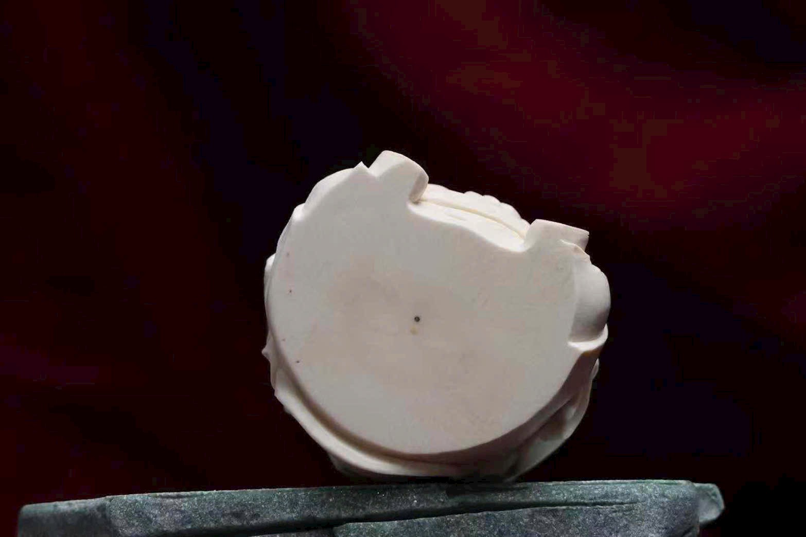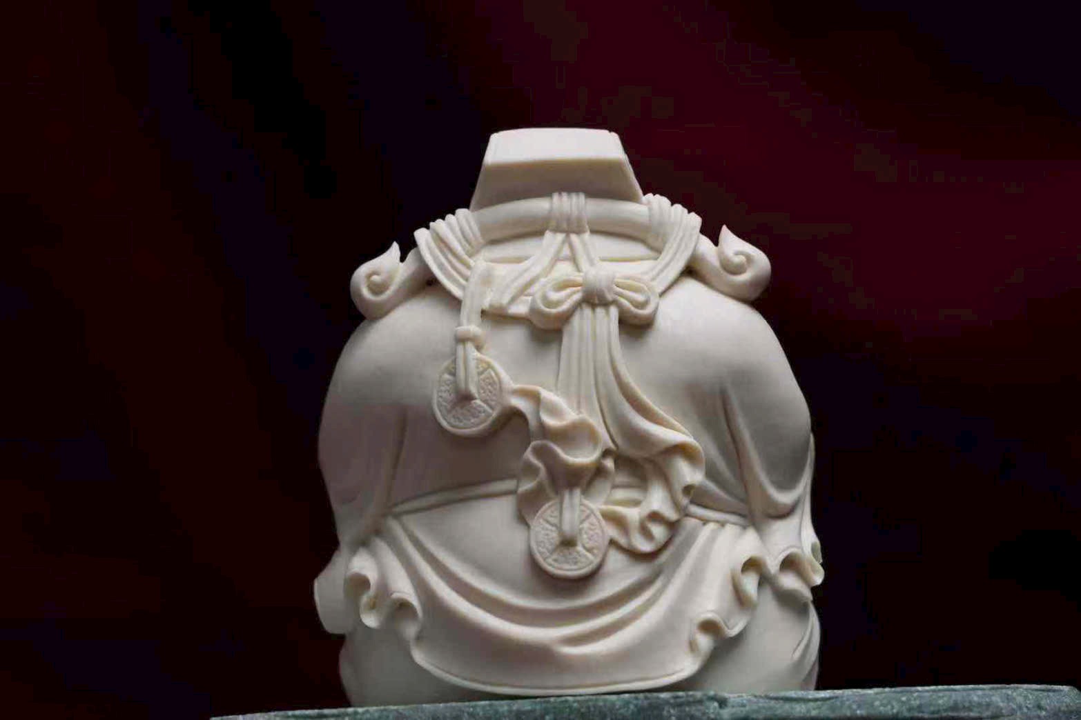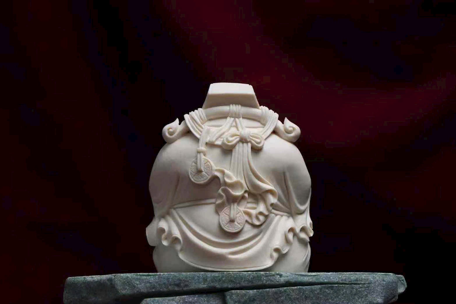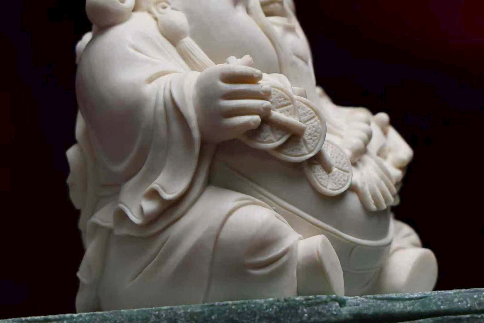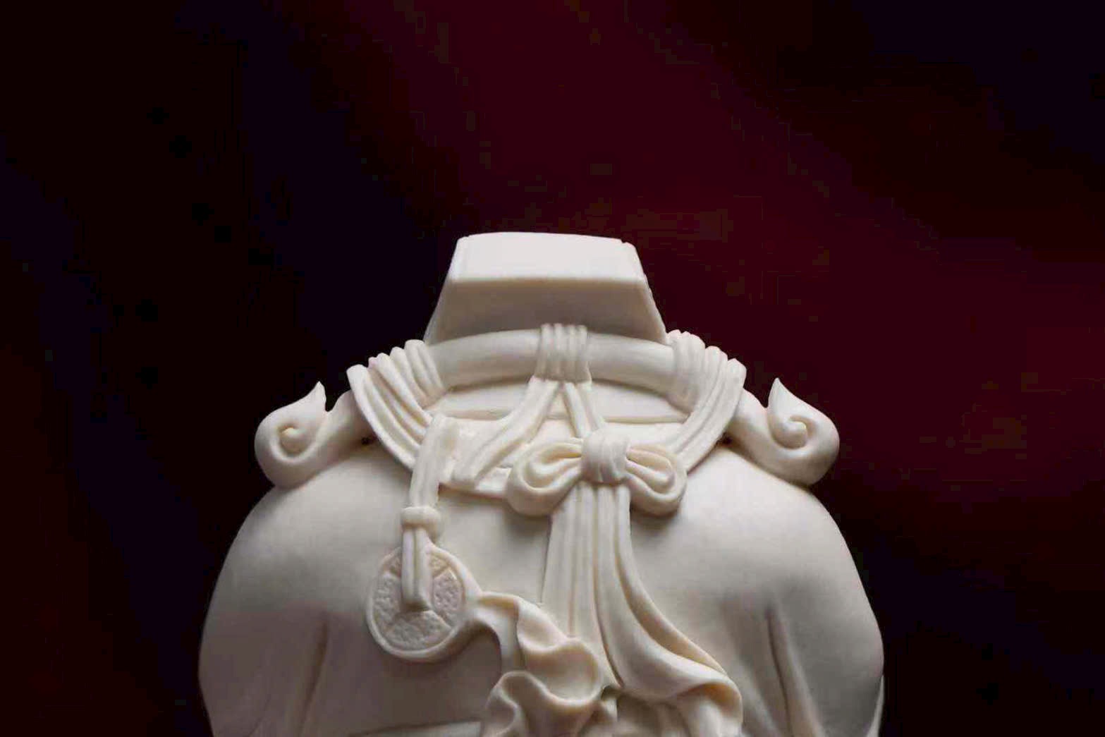 Bảo vật trong tay được chạm khắc tinh vi, lột tả khí chất phú quý.