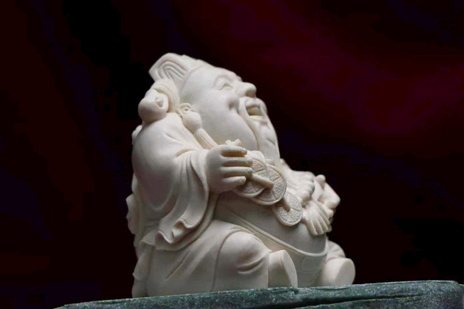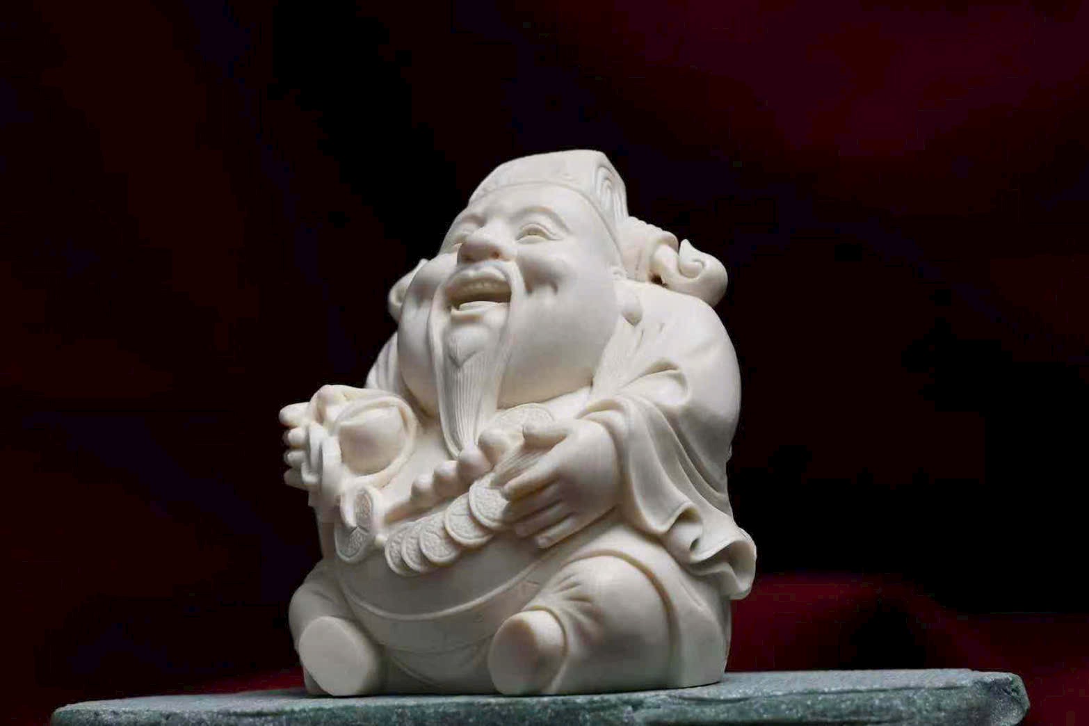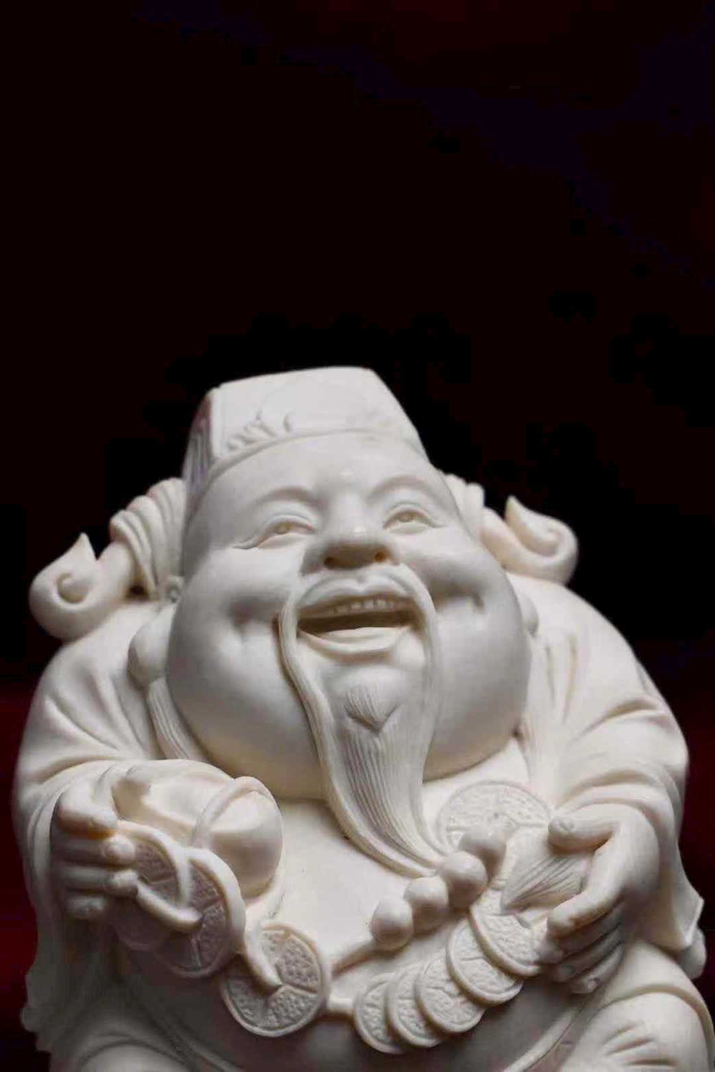 Tài Thần gương mặt rạng rỡ, mày mắt cong hiền hòa, toát lên vẻ thân thiện và hỷ lạc.