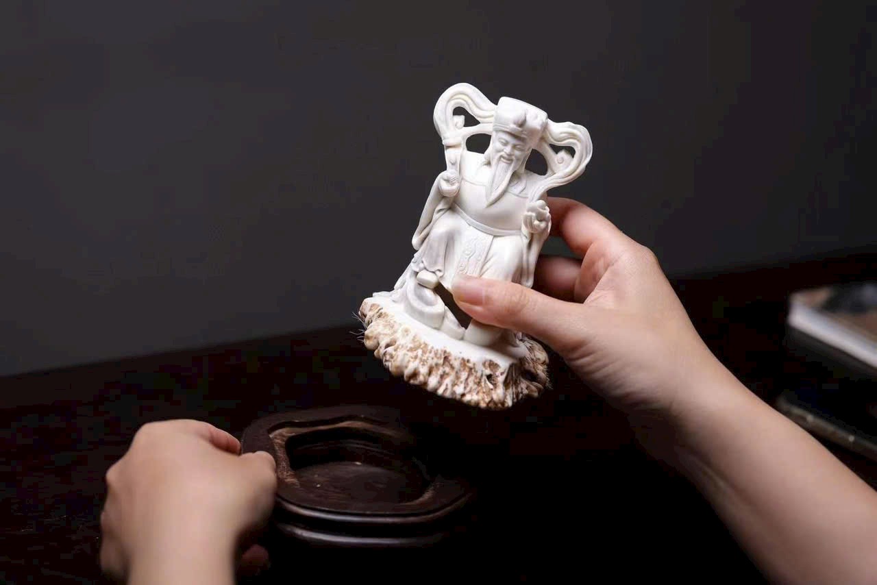 Tác phẩm được chế tác từ sừng hươu quý hiếm, chạm khắc tinh xảo, thần thái hiền hòa mà trang nghiêm, mang đến phúc khí và may mắn về tài lộc cho gia chủ.