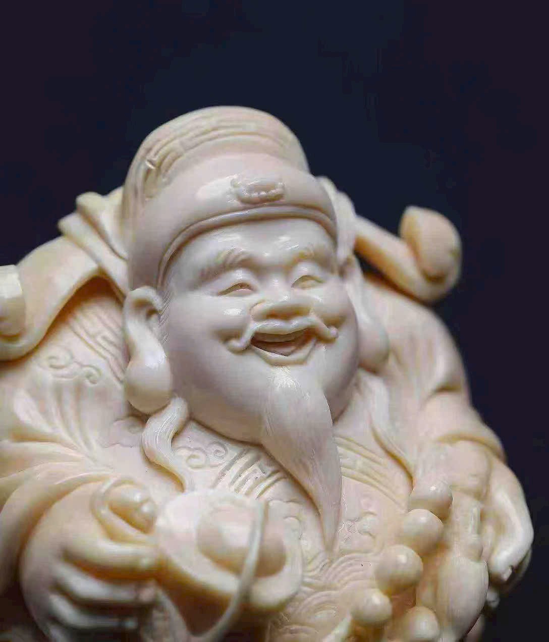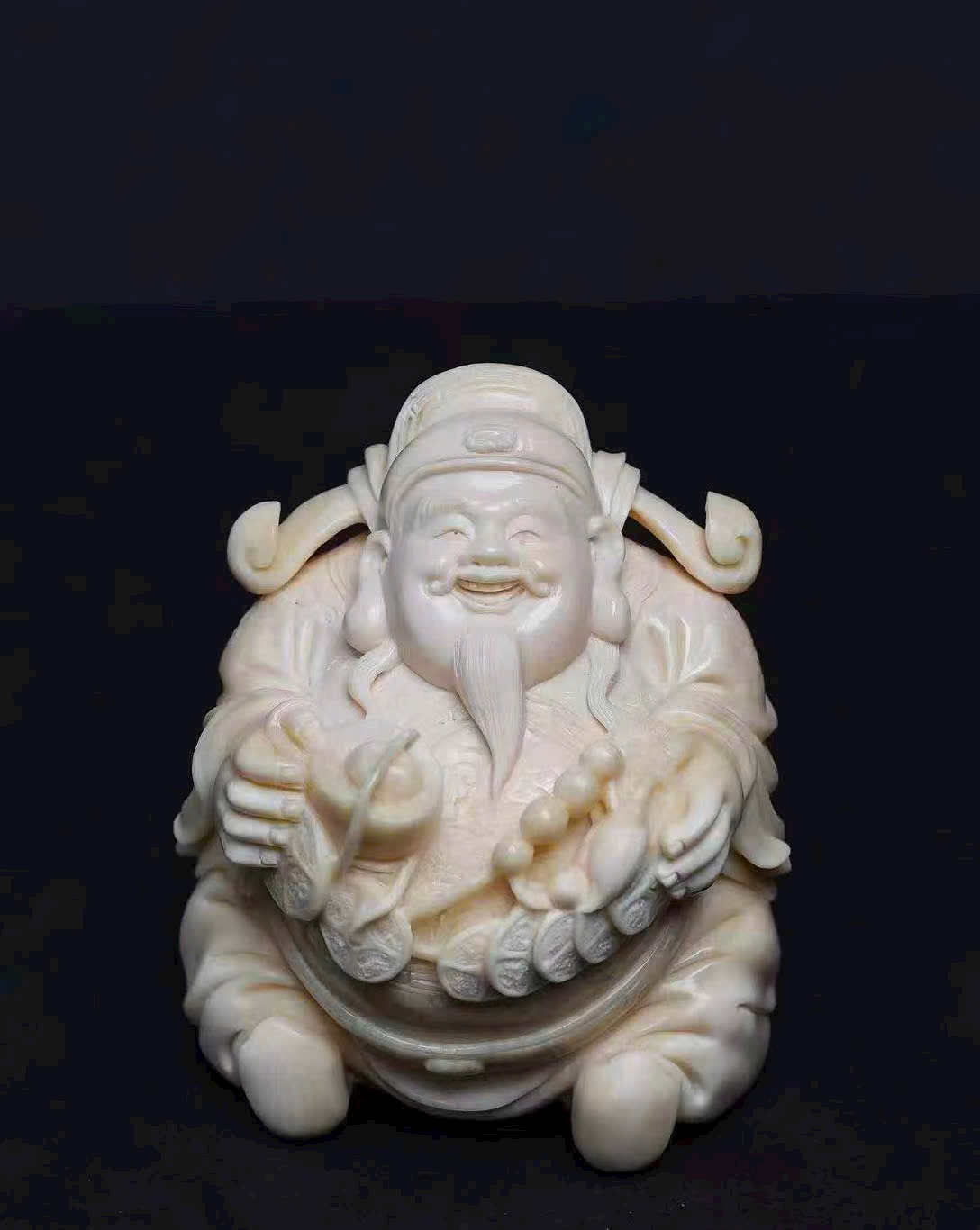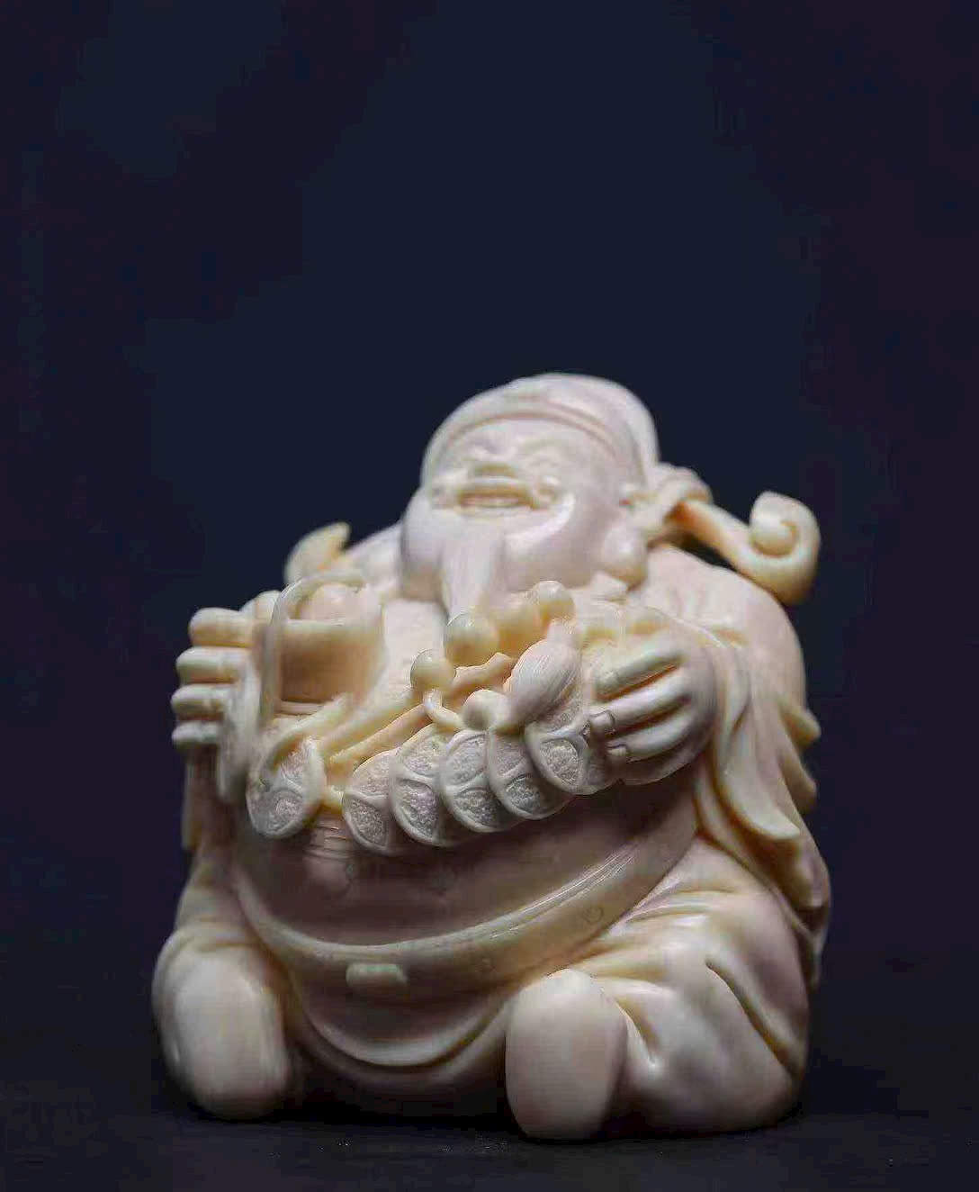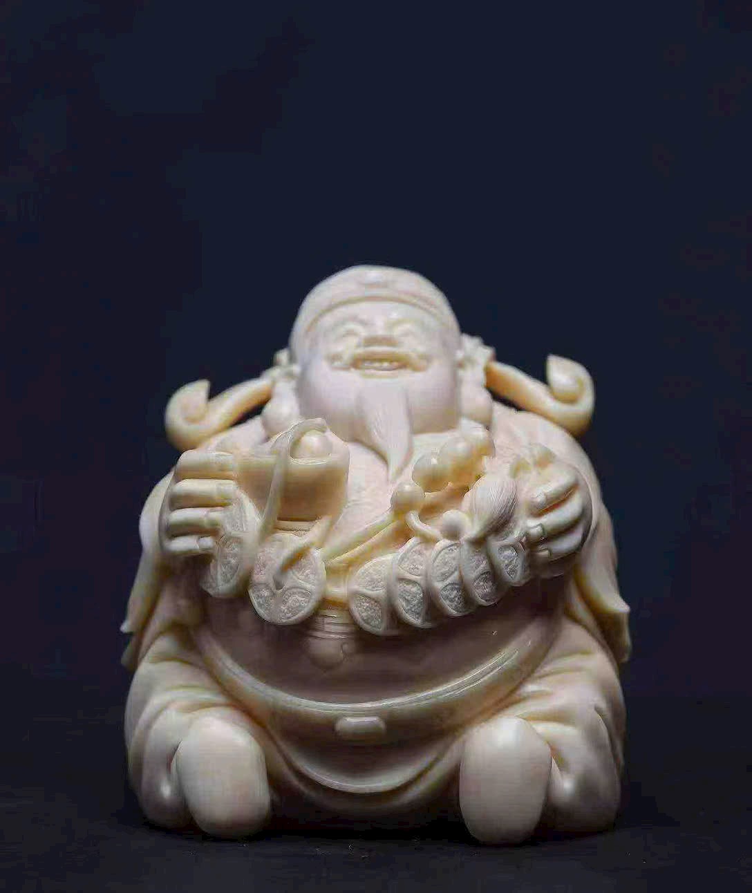 Thần Tài gương mặt tươi cười rạng rỡ, mày mắt cong cong, toát lên vẻ thân hòa và hoan hỷ.